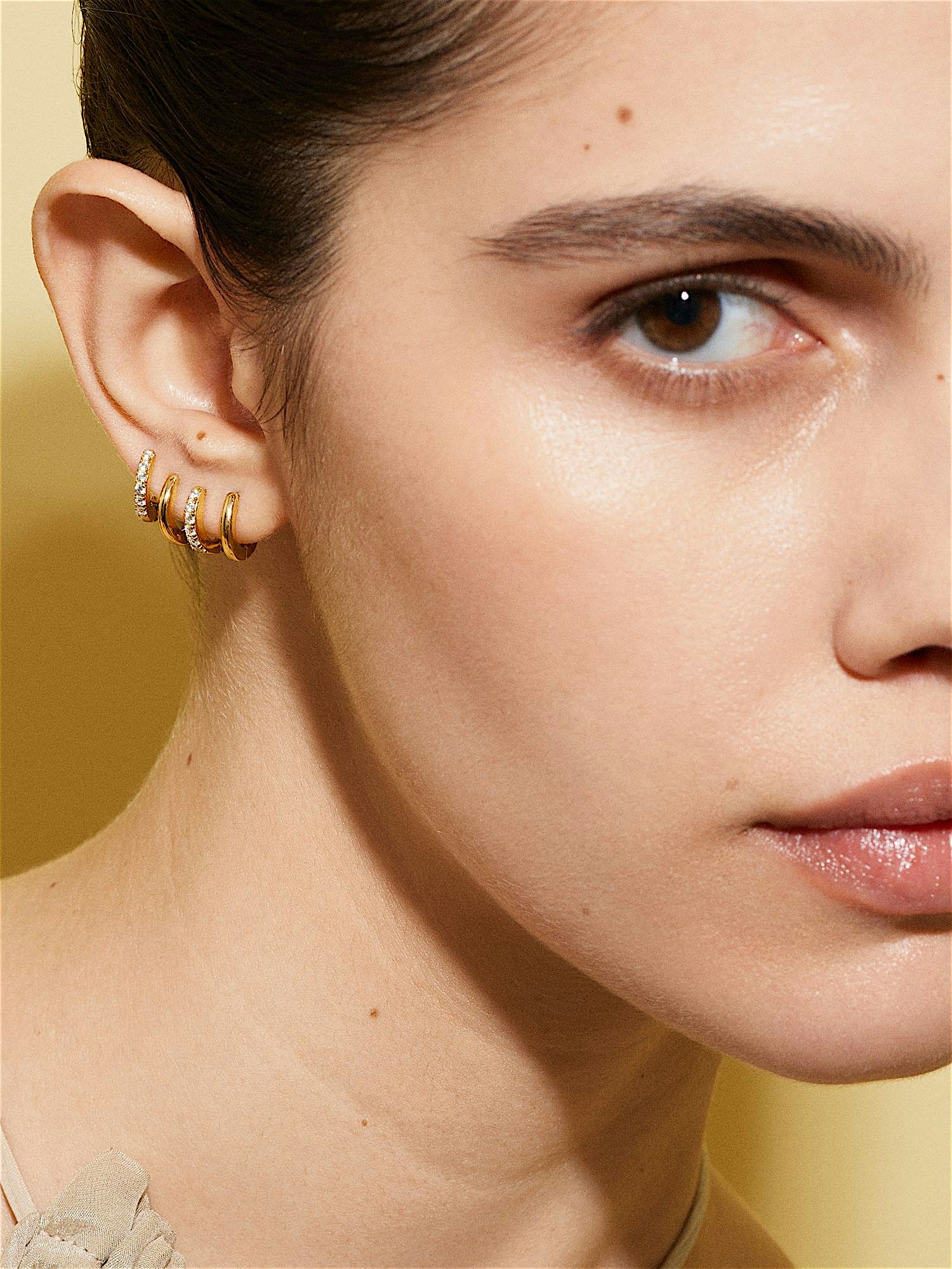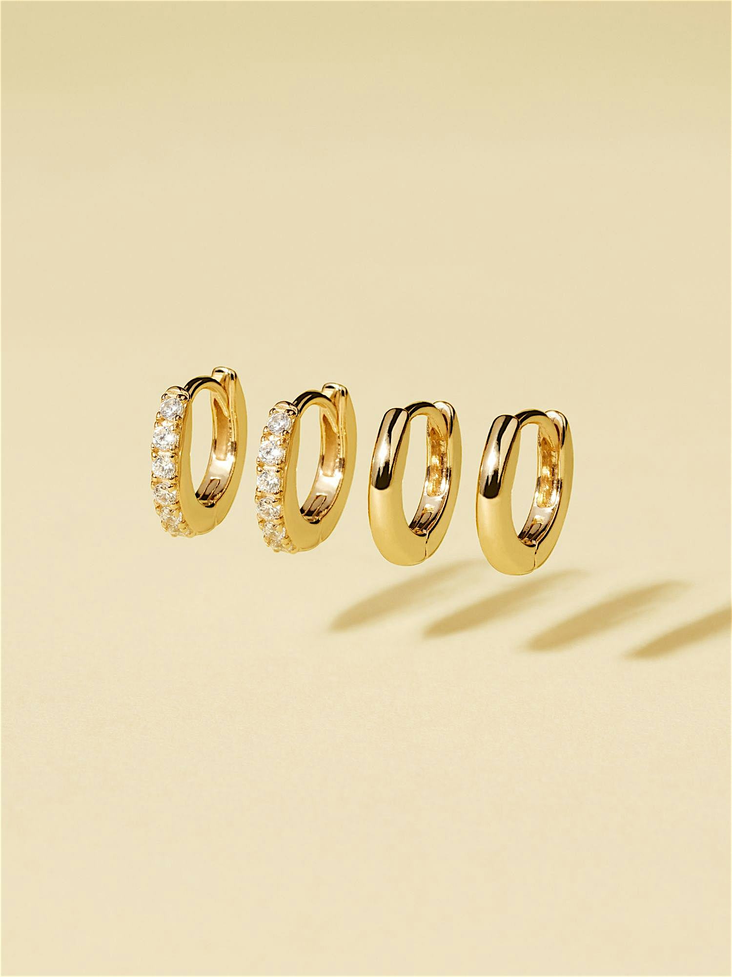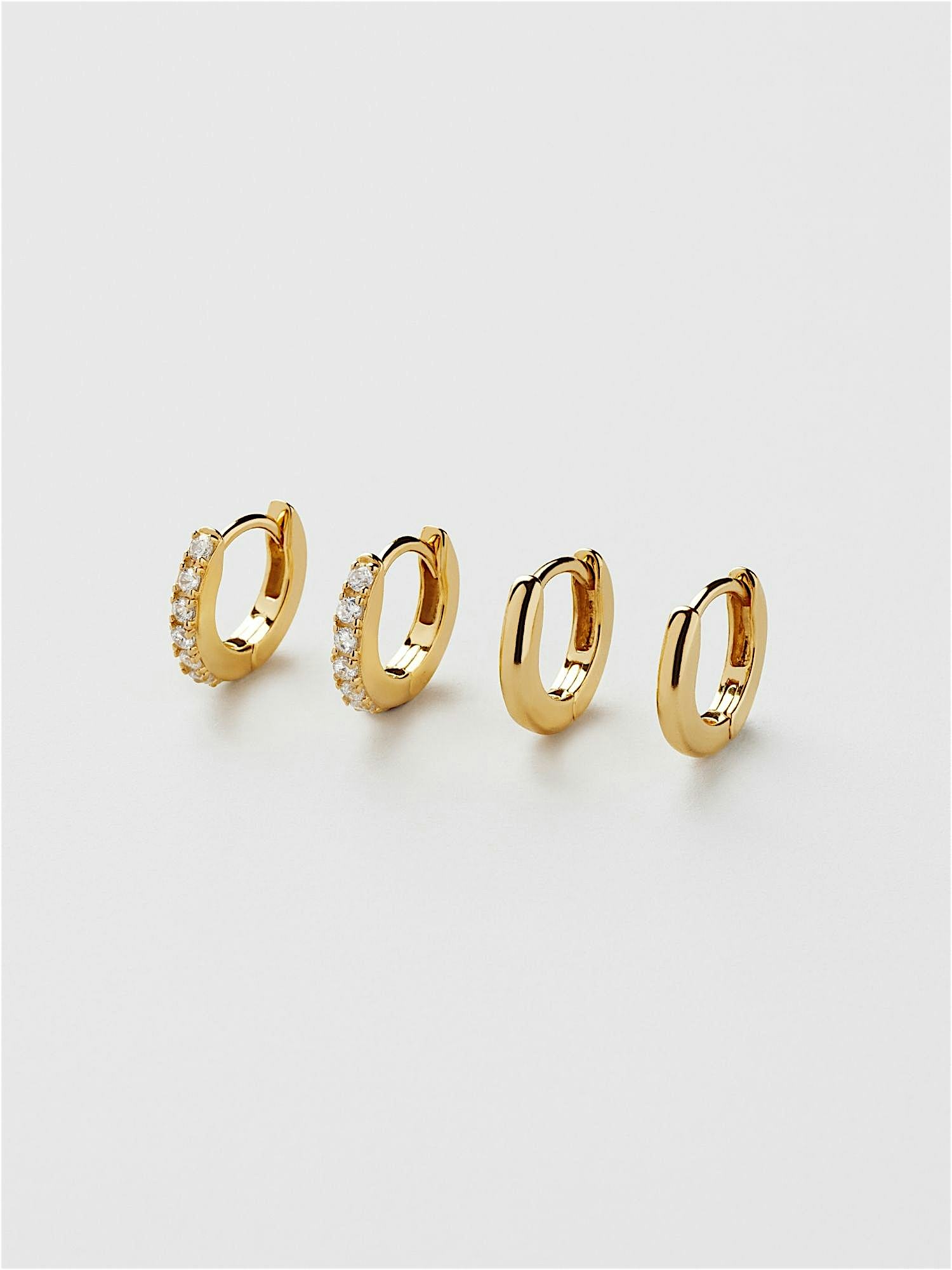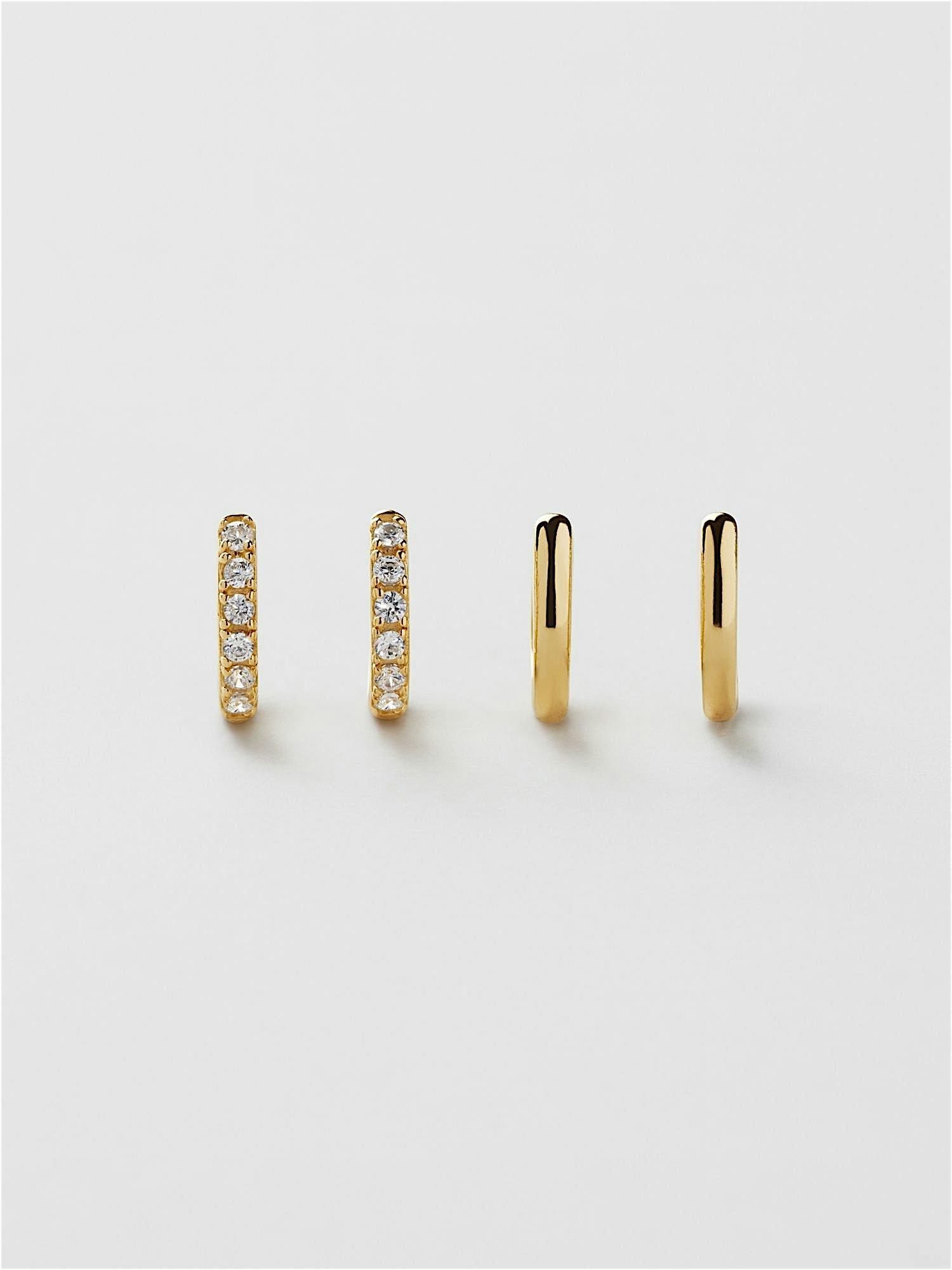 Mehrfachpack Creolen aus echtem 925er Sterlingsilber, verziert mit klaren Cubic Zirconia-Steinen. Die goldenen Ohrringe sind mit echtem 24K-Gold vergoldet und haben einen Kern aus echtem 925er Sterlingsilber. Dieses Produkt besteht zu 100 % aus recyceltem Silber.