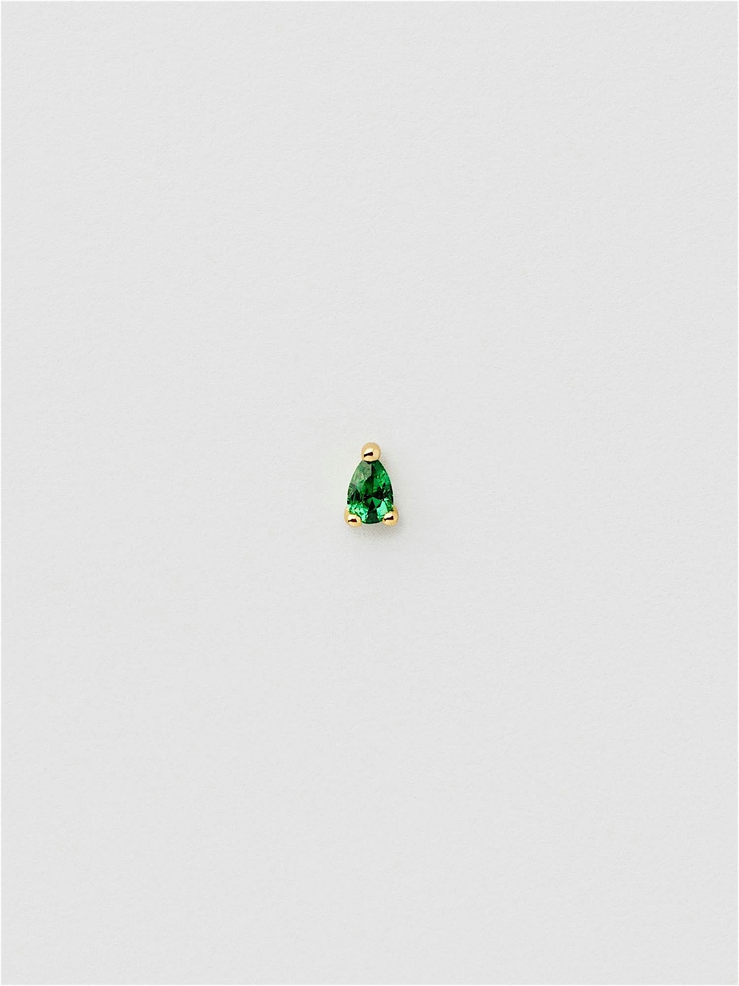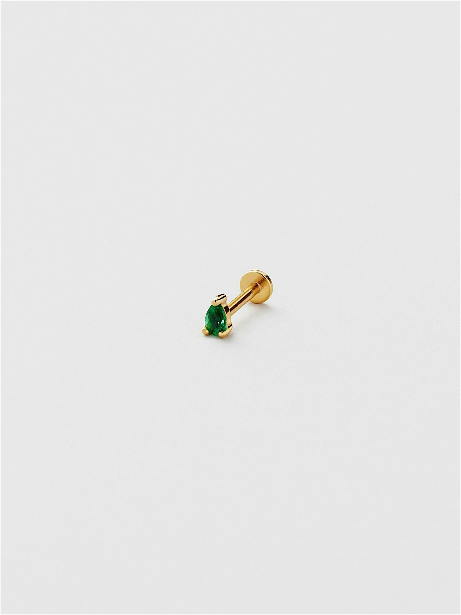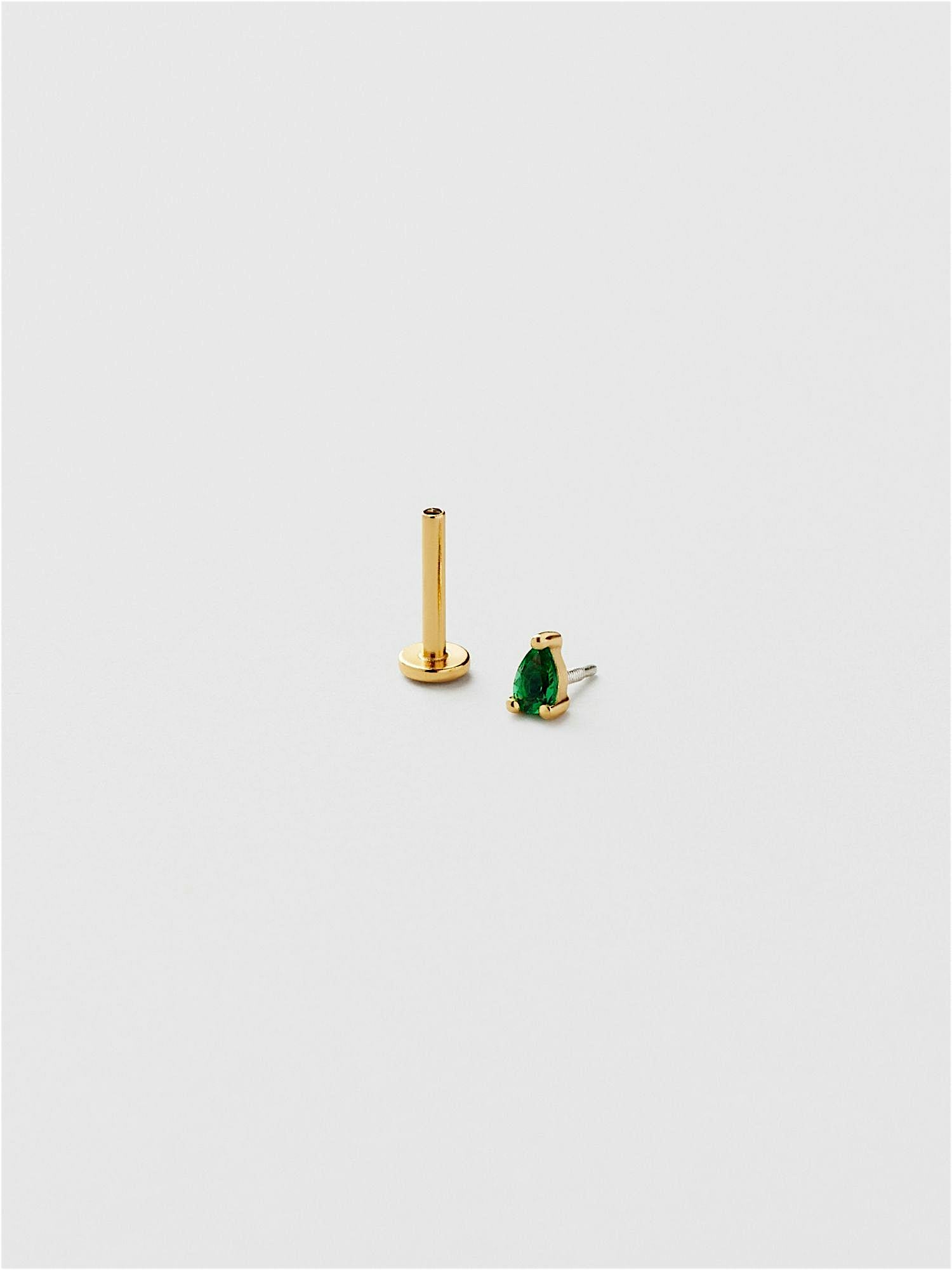 Piercing aus echtem 925er Sterlingsilber, verziert mit einem grünen tropfenförmigen Cubic Zirconia-Stein. Das Goldschmuckstück ist mit echtem 18K-Gold vergoldet und hat einen Kern aus echtem 925er Sterlingsilber. Dieses Produkt besteht zu 100 % aus recyceltem Silber. Der Stab ist aus echtem 925er Sterlingsilber gefertigt. Führen Sie den hinteren Teil des Piercings von hinten durch das Ohr und schrauben Sie ihn mit dem vorderen Teil des Piercings fest.