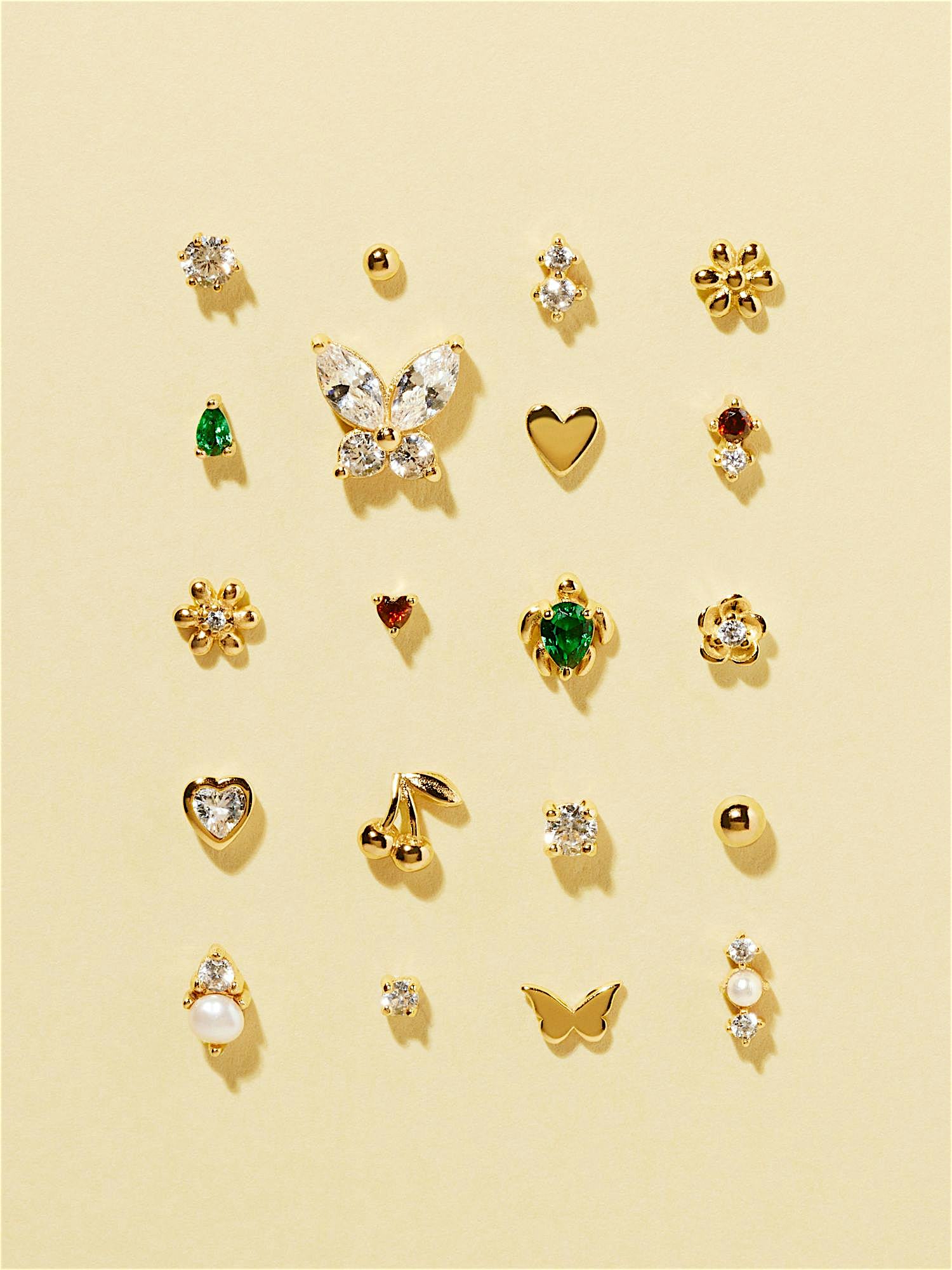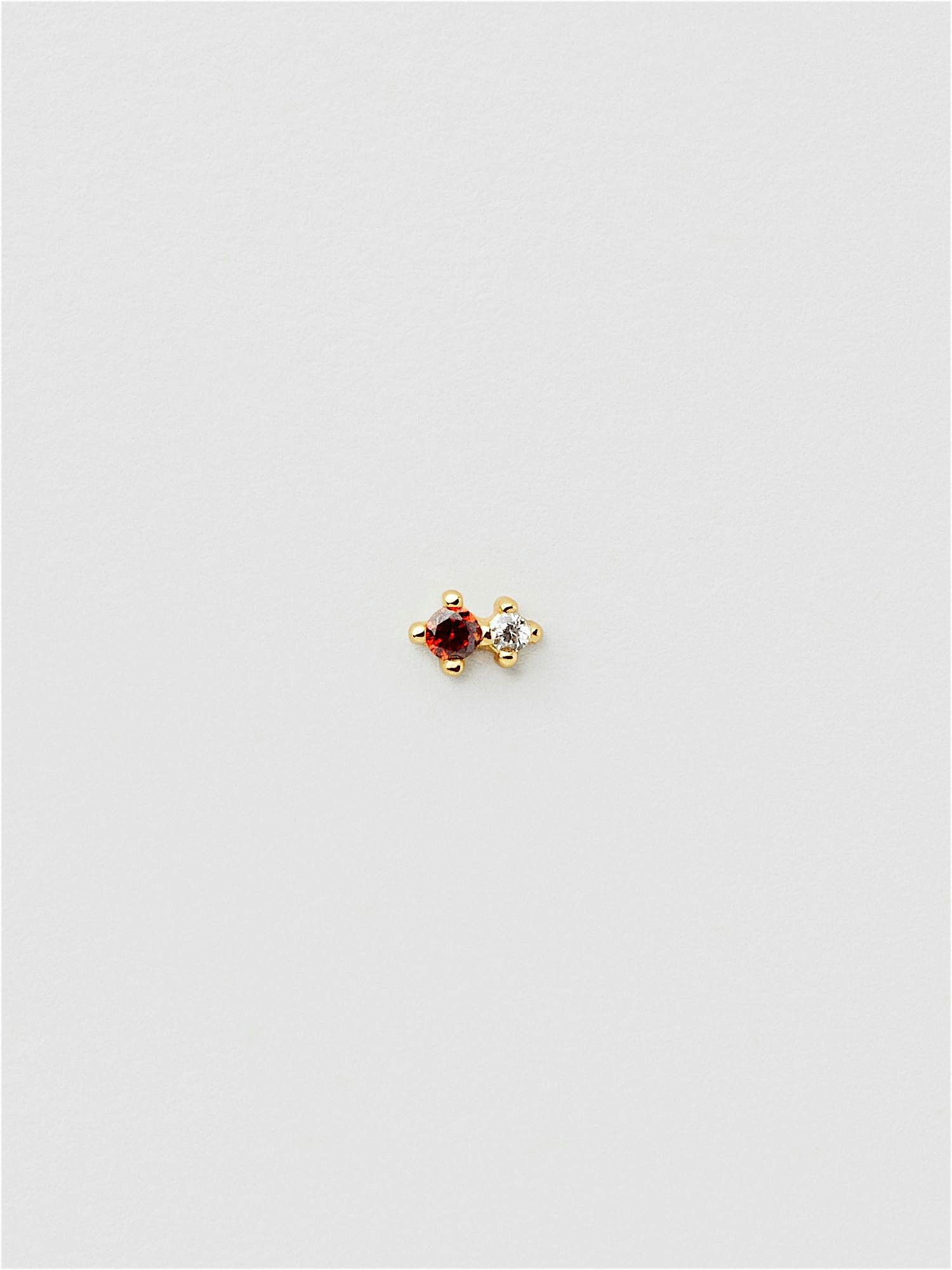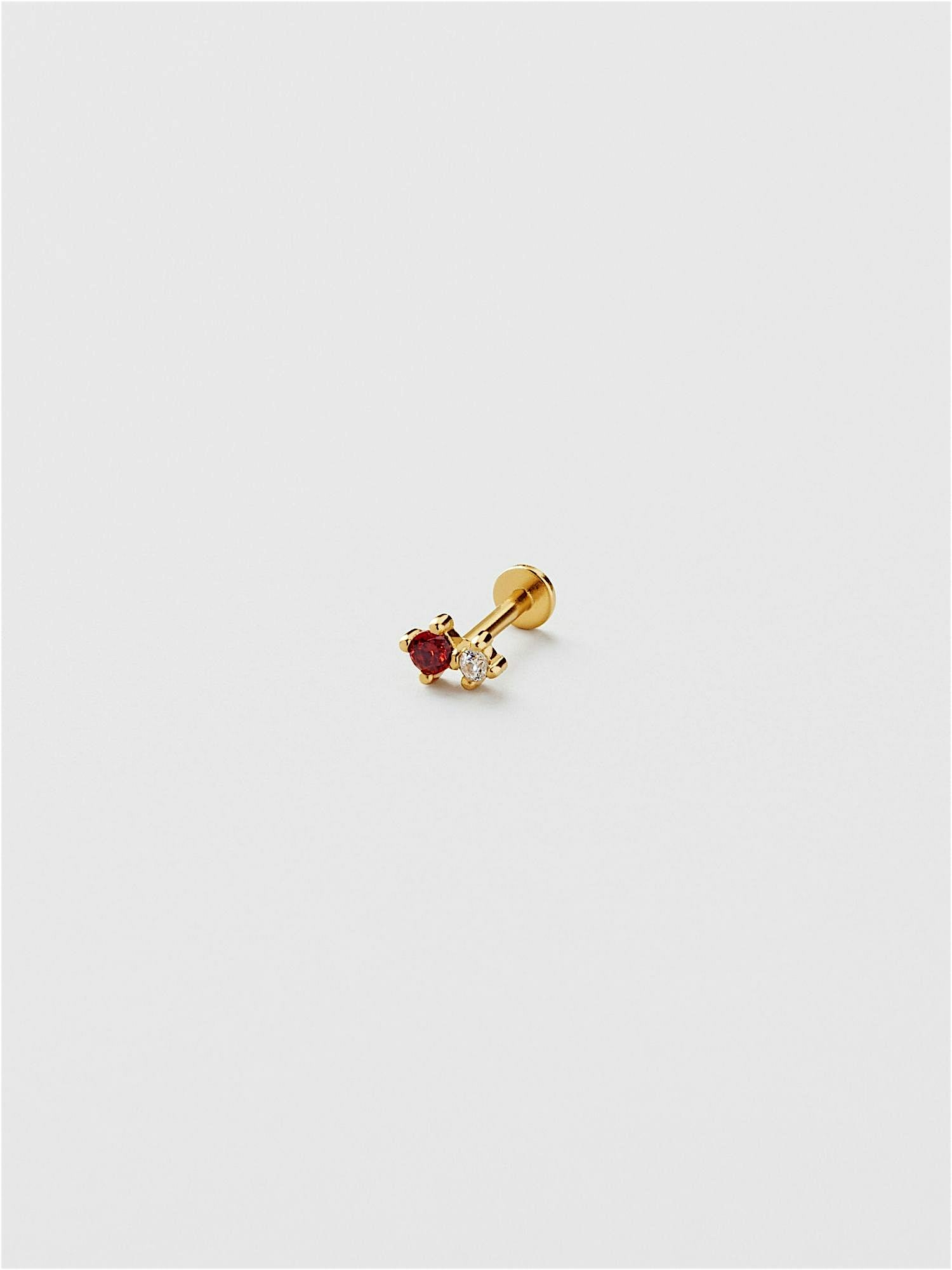 Piercing aus echtem 925 Sterlingsilber, dekoriert mit einem roten und einem klaren Cubic Zirconia Stein. Das Goldschmuckstück ist mit echtem 18K-Gold vergoldet und hat einen Kern aus echtem 925 Sterlingsilber. Die Stange ist aus echtem 925 Sterlingsilber gefertigt. Dieses Produkt wird aus 100 % recyceltem Silber hergestellt. Setzen Sie den hinteren Teil des Piercings durch das Ohr von hinten und schrauben Sie mit dem vorderen Teil des Piercings fest.