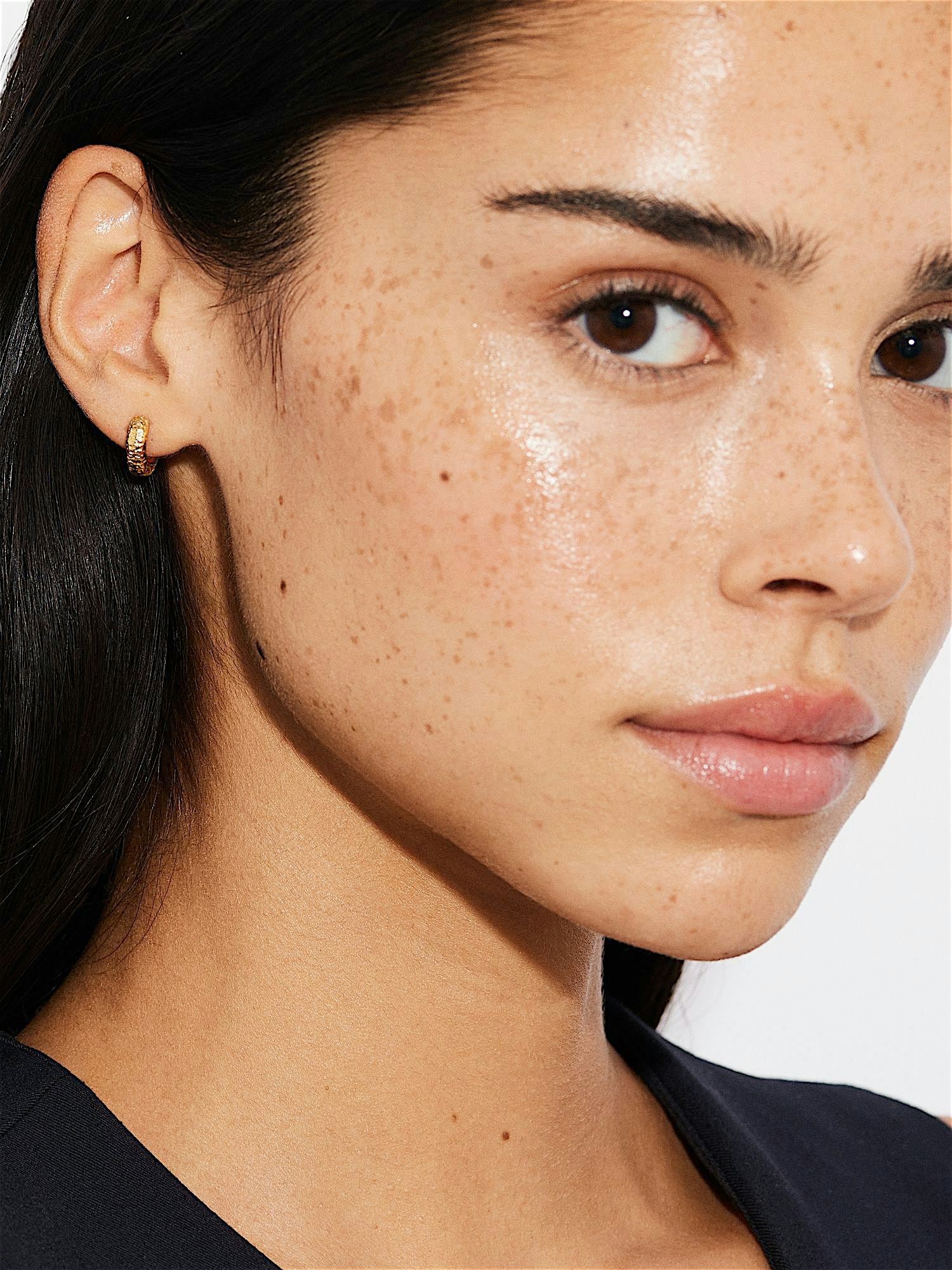 Strukturierte Huggie-Creolen aus echtem 925er Sterlingsilber. Die Goldohrringe sind vergoldet mit echtem 18K Gold und haben einen Kern aus echtem 925er Sterlingsilber. Heute werden mehr als 85% unserer Schmuckstücke aus recyceltem Silber hergestellt.