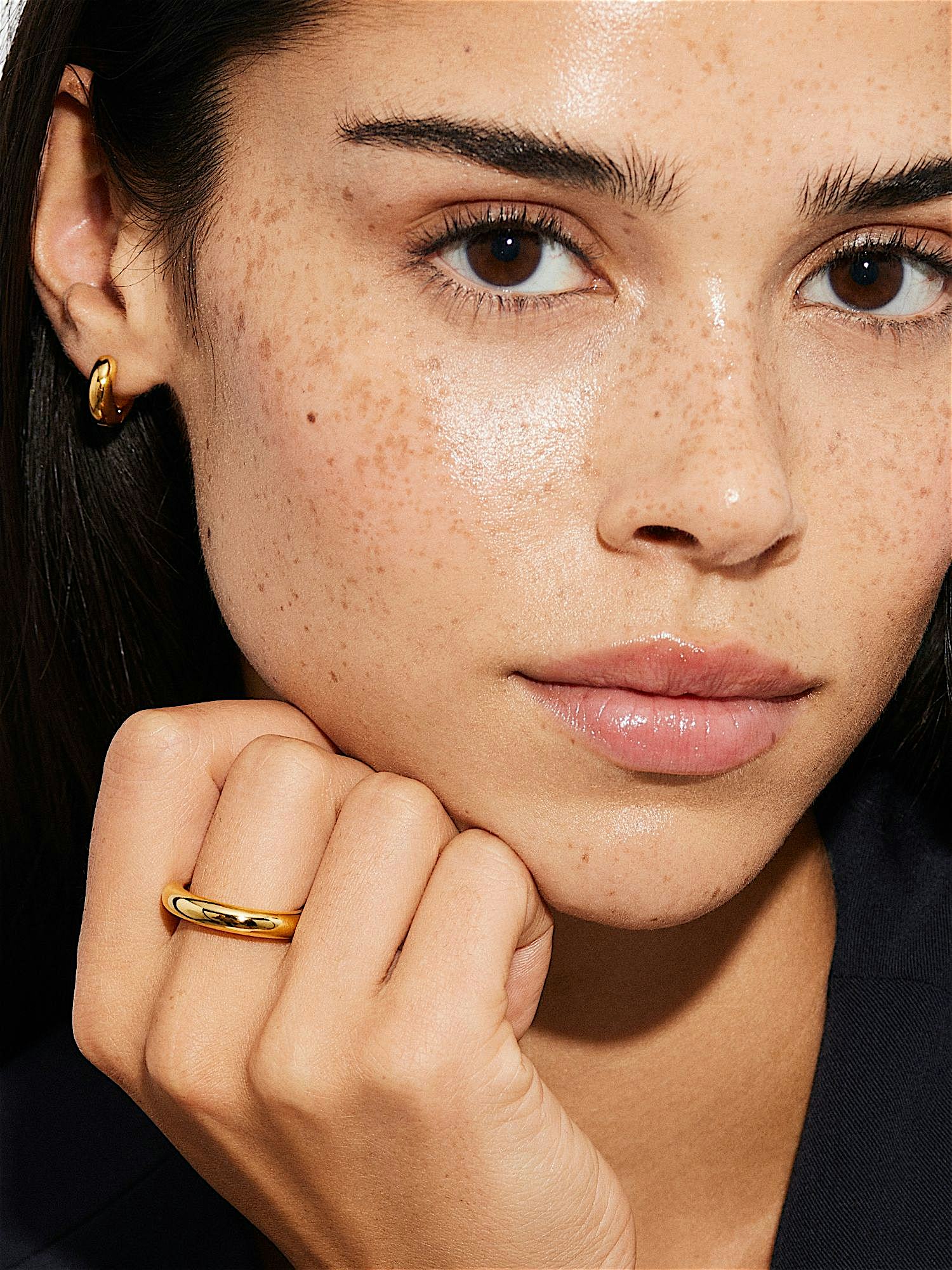 Ring aus echtem 925 Sterlingsilber. Der Goldring ist mit echtem 24K Gold vergoldet und hat einen Kern aus echtem 925 Sterlingsilber. Dieses Produkt besteht zu 100 % aus recyceltem Silber.