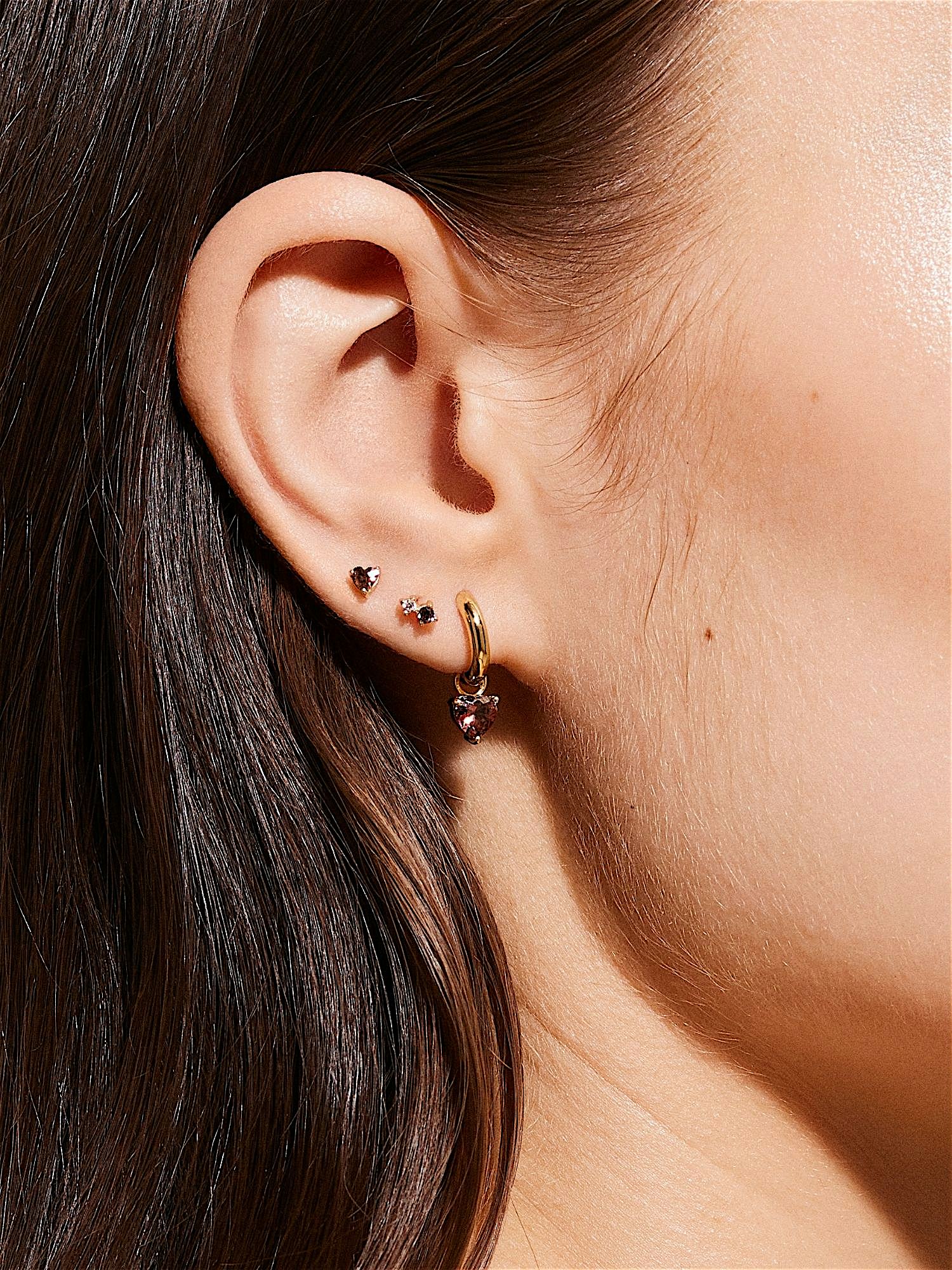 Piercing aus echtem 925 Sterlingsilber, verziert mit einem espressobraunen und einem klaren Cubic-Zirkonia-Stein. Das Goldschmuckstück ist mit echtem 18K Gold vergoldet und hat einen Kern aus echtem 925 Sterlingsilber. Der Stab ist aus echtem 925er Sterlingsilber gefertigt. Dieses Produkt ist aus 100 % recyceltem Silber hergestellt. Führen Sie den hinteren Teil des Piercings von hinten durch das Ohr und schrauben Sie ihn mit dem vorderen Teil des Piercings fest.