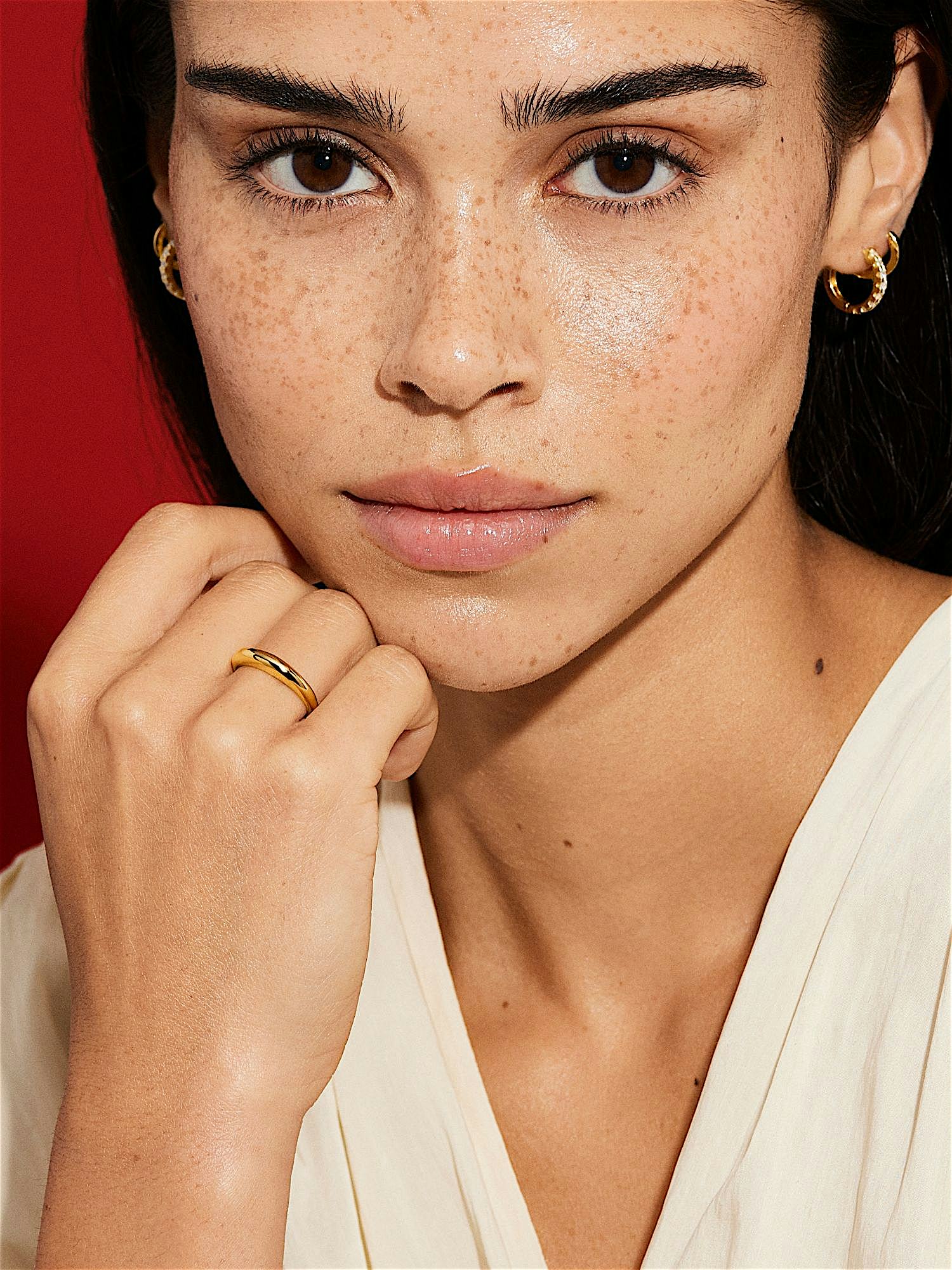 Ring aus echtem 925 Sterlingsilber. Der Goldring ist vergoldet mit echtem 24-karätigem Gold und hat einen Kern aus echtem 925 Sterlingsilber. Dieses Produkt besteht zu 100% aus recyceltem Silber.