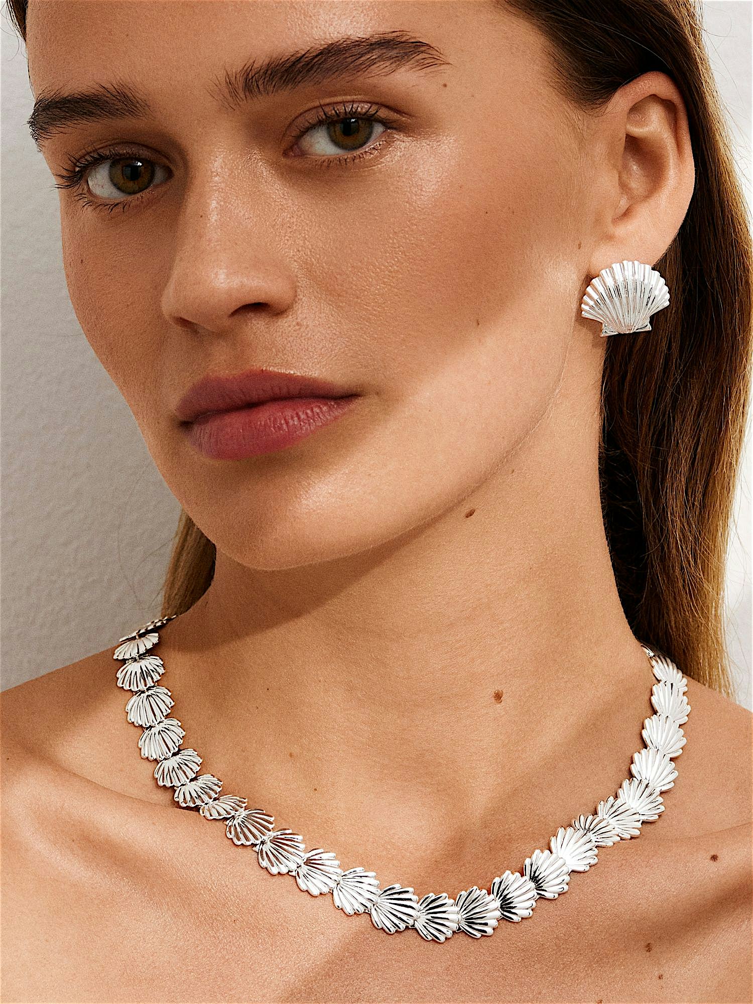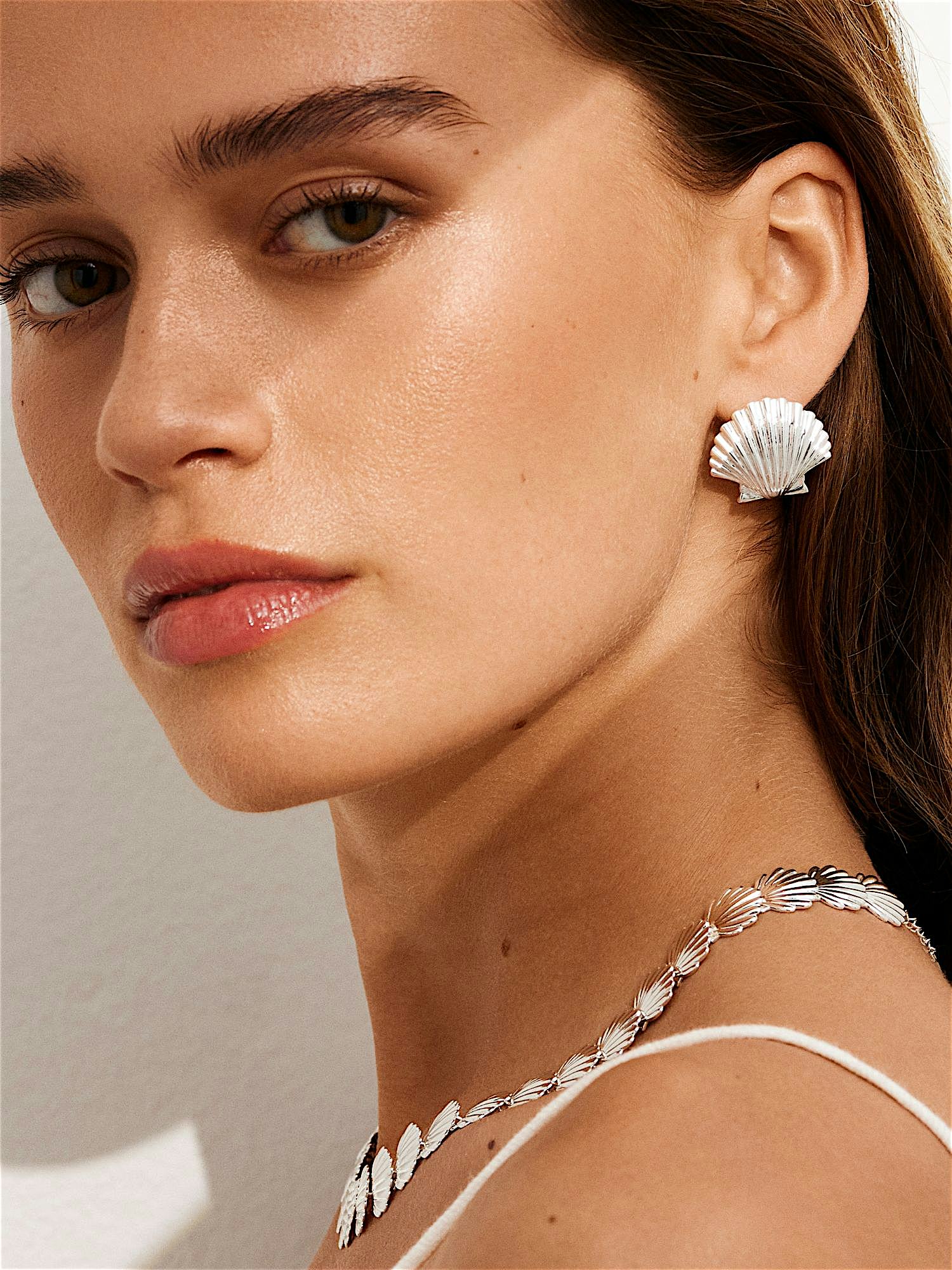 Muschelförmige Stecker, vergoldet mit echtem 925er Sterlingsilber oder mit echtem 18K Gold. Der Kern besteht aus Messing. Dieses Schmuckstück ist zu 100% recycelt.