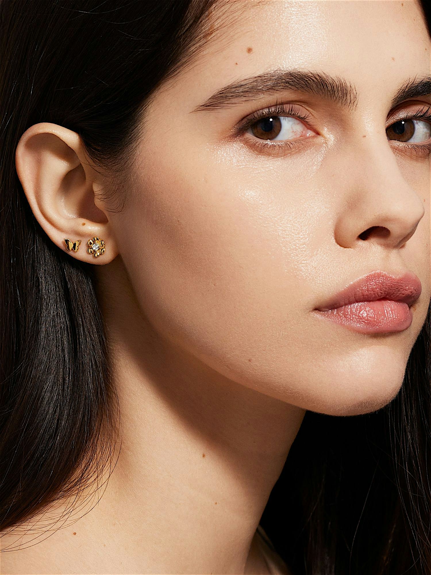 Butterfly earrings in genuine 925 sterling silver. The earrings in gold are gilded with genuine 18K gold and have a core of 925 sterling silver. This product is made of 90% recycled silver.