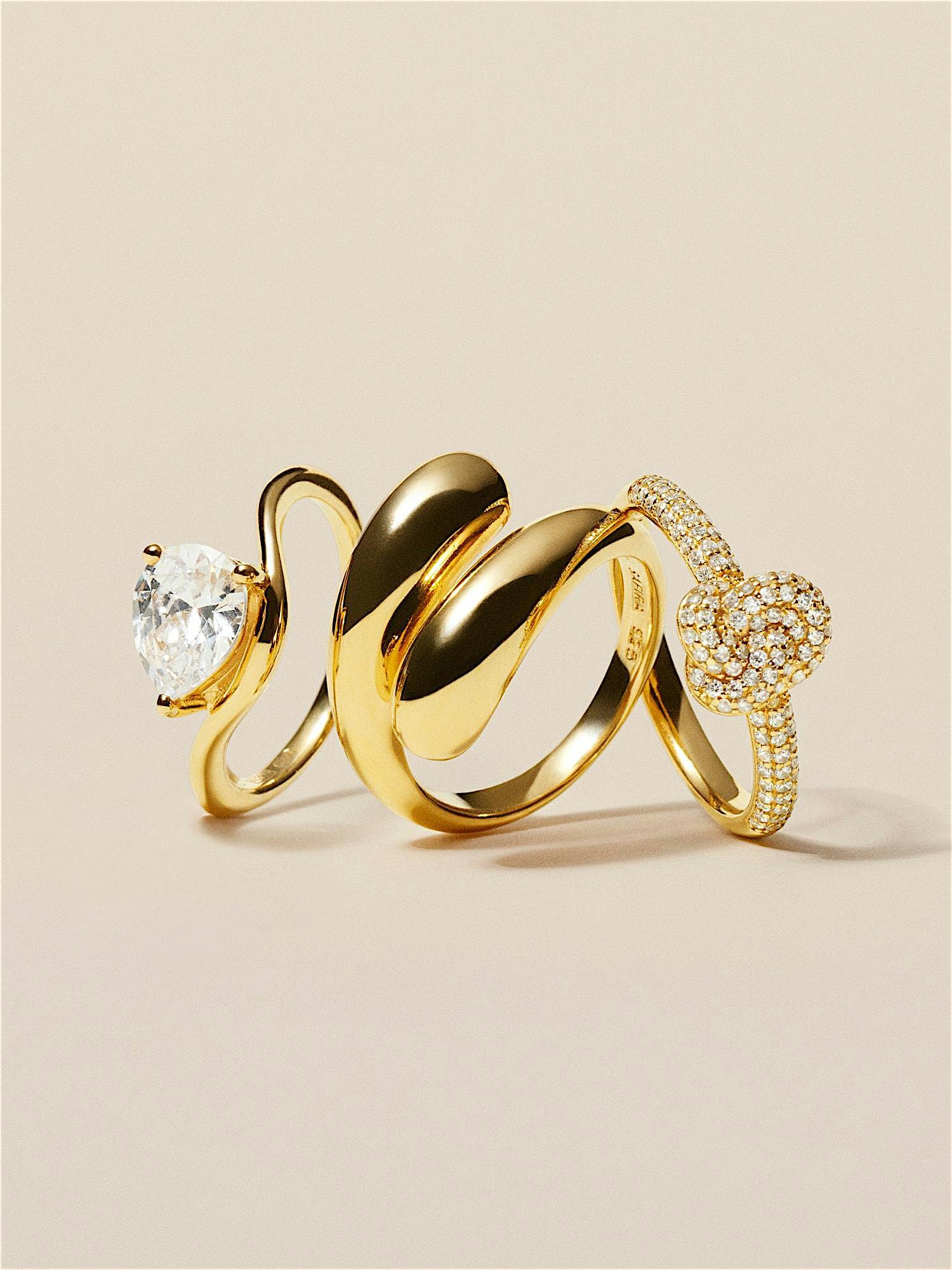 Knot ring in genuine 925 sterling silver, decorated with clear Cubic Zirconia stones. The gold ring is plated with genuine 24K gold and has a core of genuine 925 sterling silver. This product is made from 100% recycled silver.