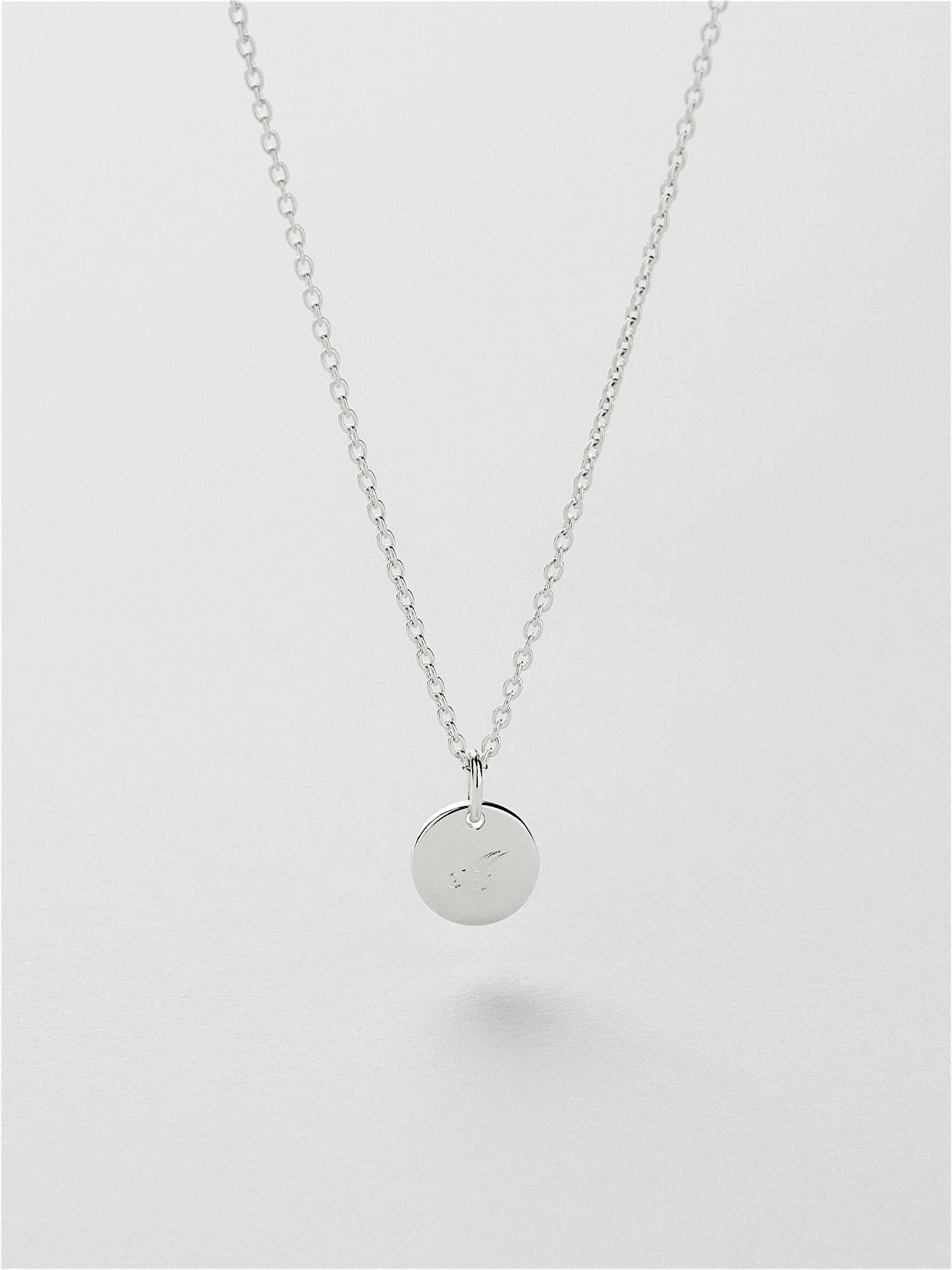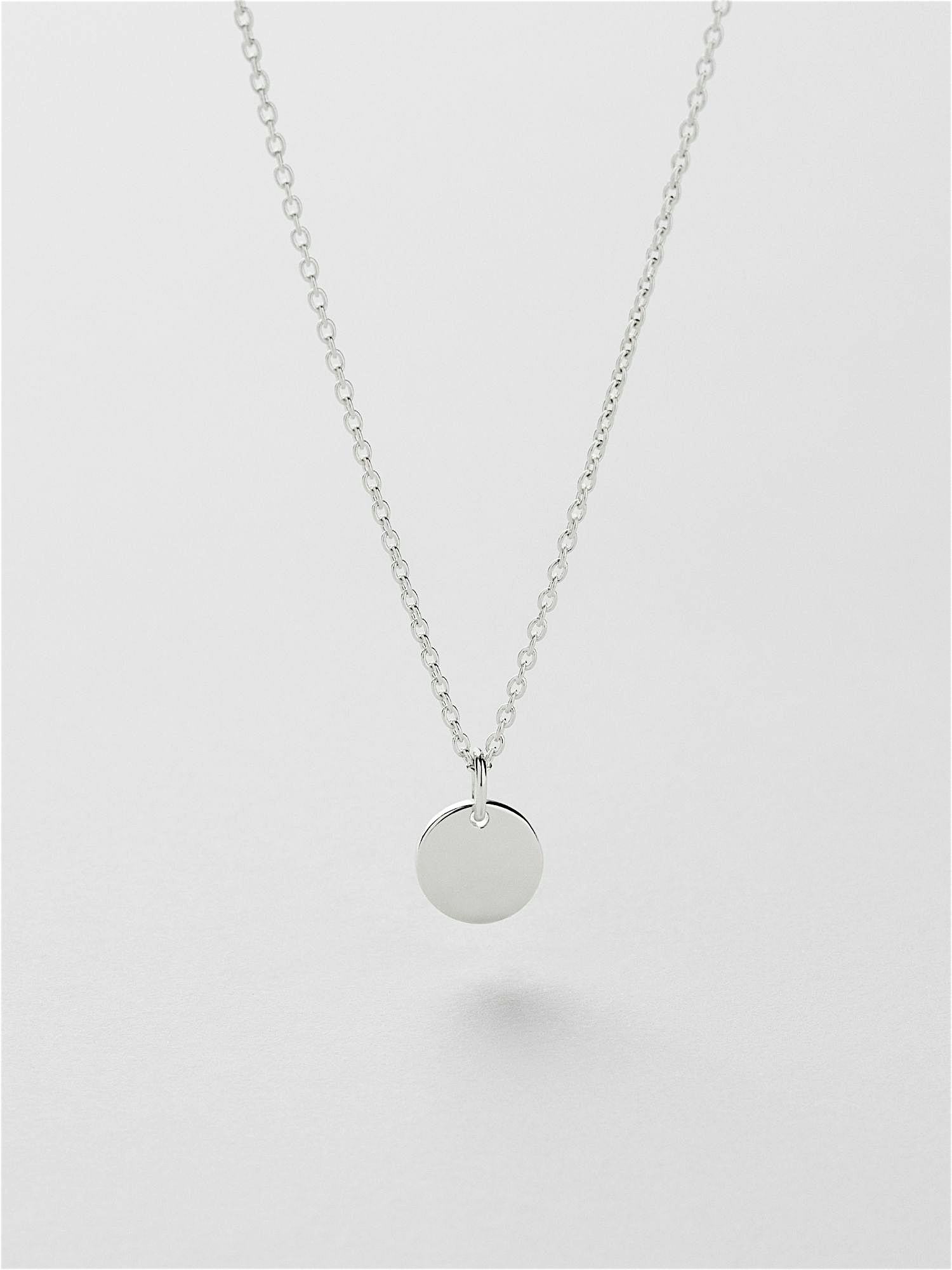 Engravable necklace with a round disc in genuine 925 sterling silver. The gold necklace is plated with 24K genuine gold and has a core of genuine 925 sterling silver. This product is made from 100% recycled silver.