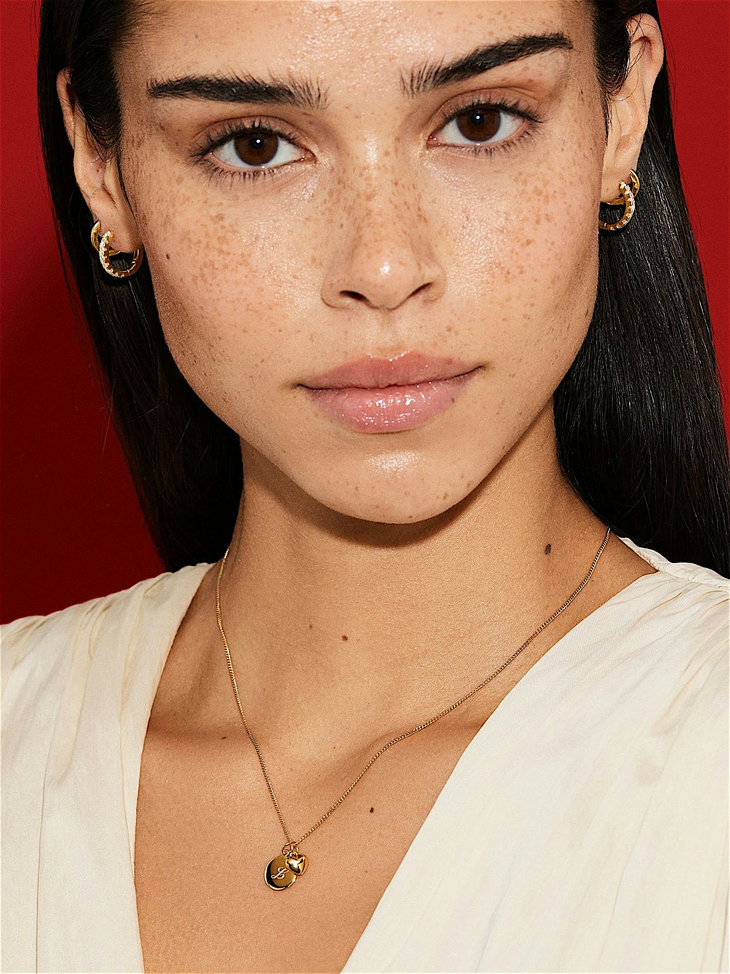 Necklace with an engravable round pendant and a puffy heart in genuine 925 sterling silver. The gold necklace is plated with genuine 18K gold and has a core of genuine 925 sterling silver. This product is made of 100% recycled silver.