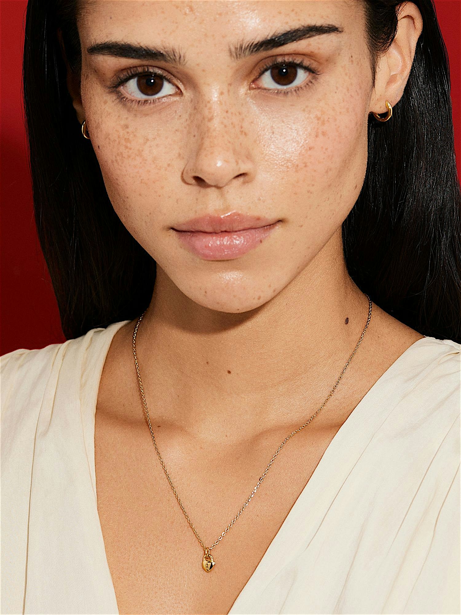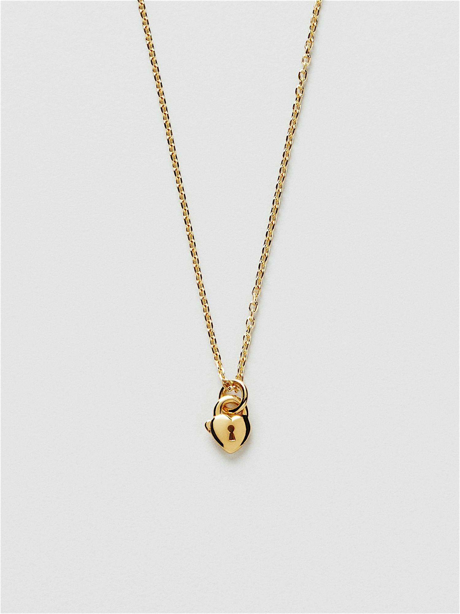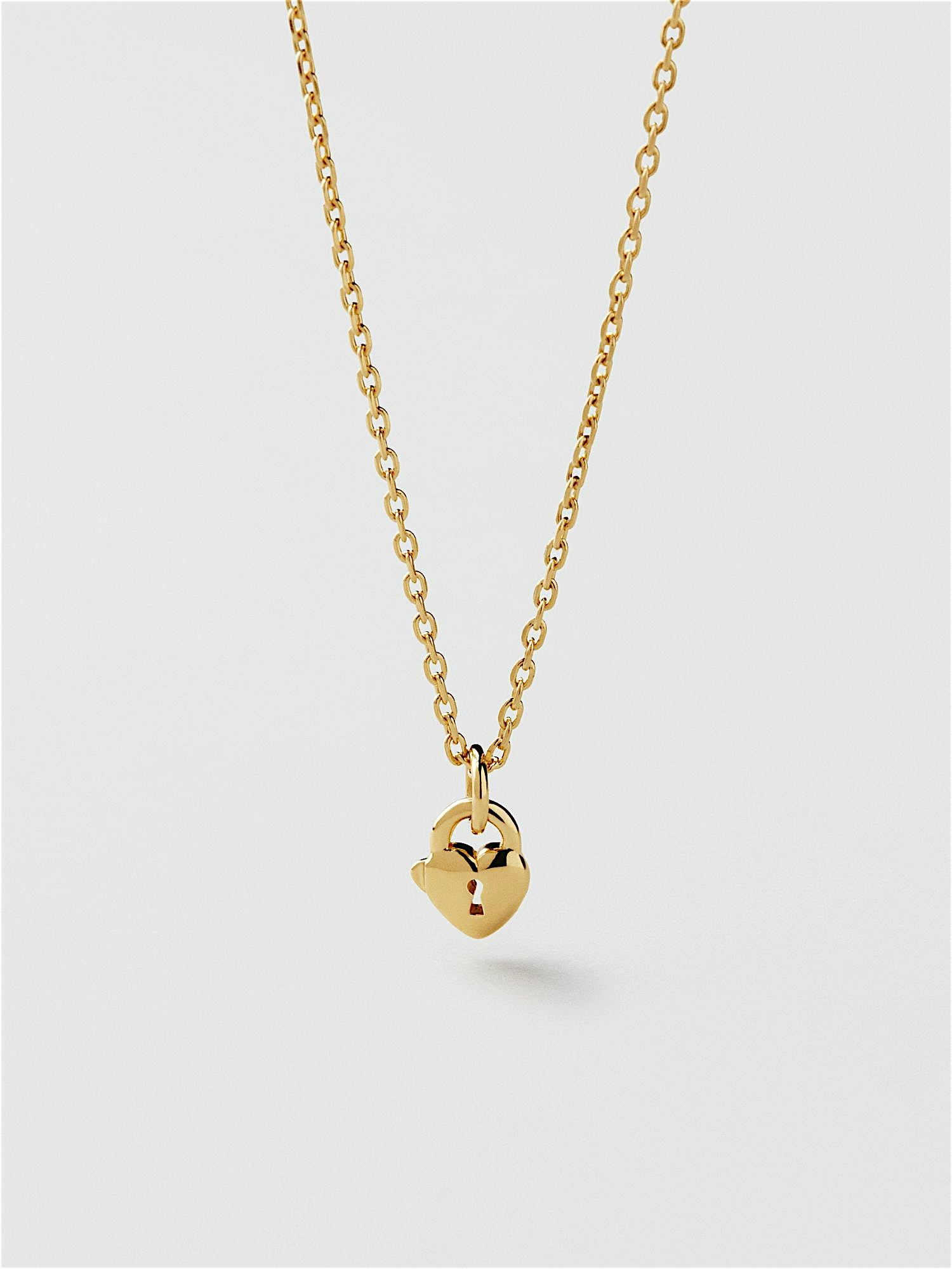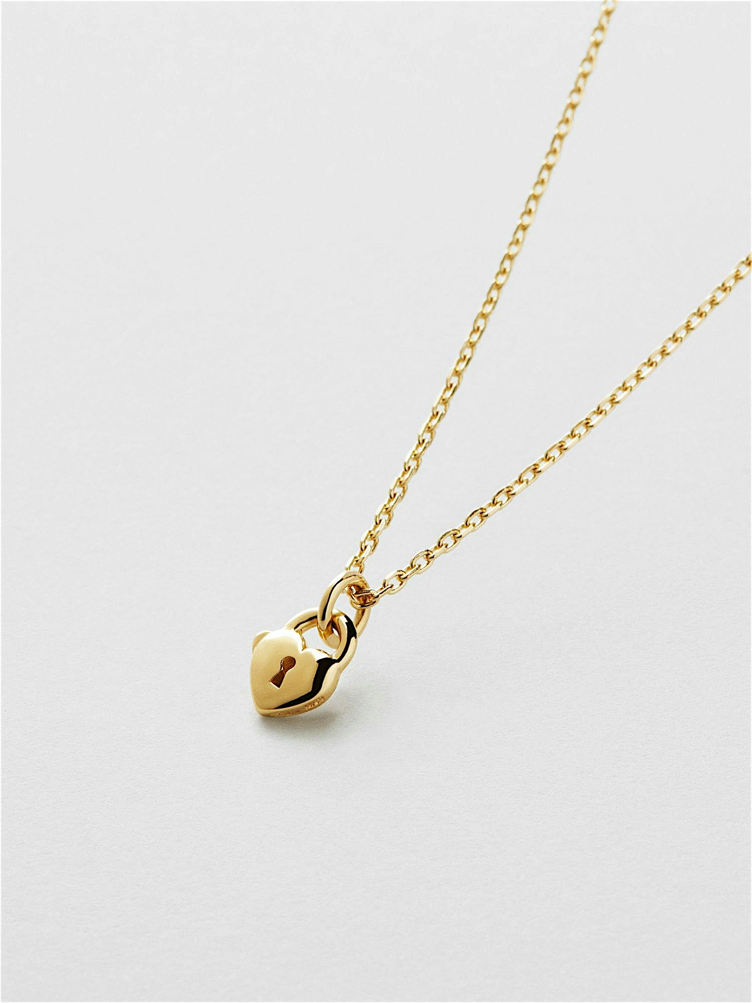 Necklace with a heart shaped padlock pendant in genuine 925 sterling silver. The gold necklace is plated with genuine 24K gold and has a core of genuine 925 sterling silver. This product is made from 100% recycled silver.