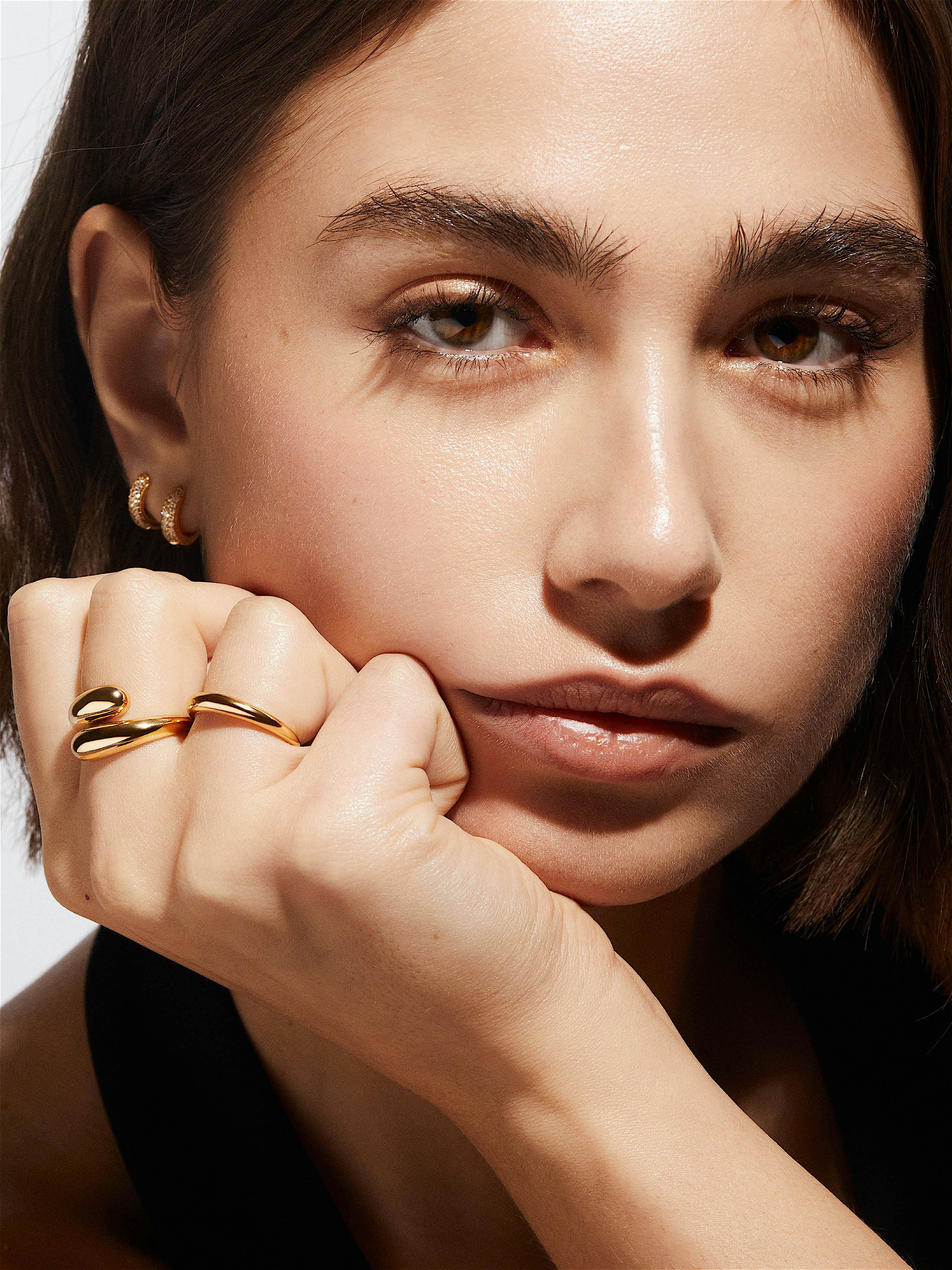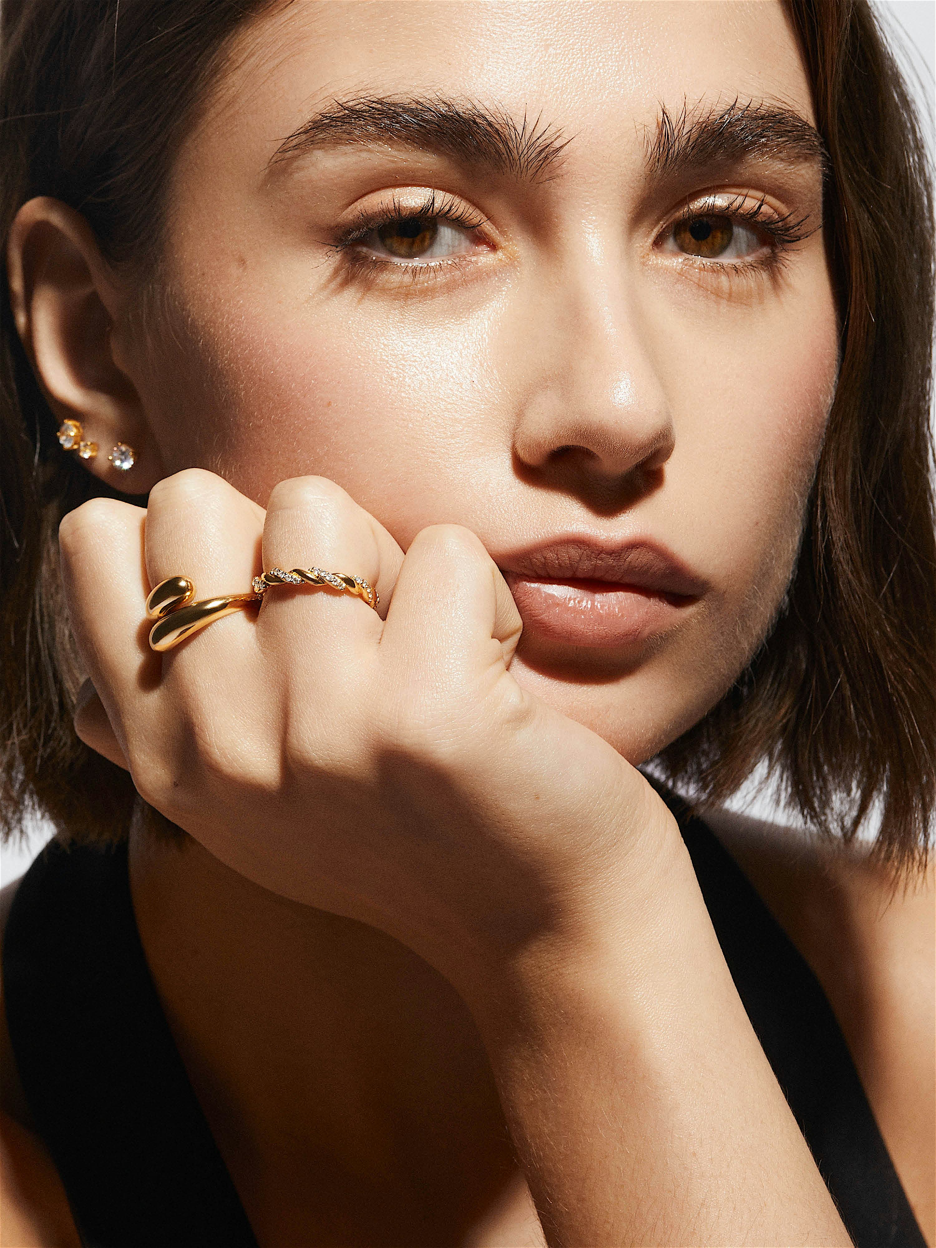 Ring in high polished genuine 925 sterling silver. The gold ring is plated with genuine 24K gold and has a core of genuine 925 sterling silver. This product is made of 100% recycled silver.
