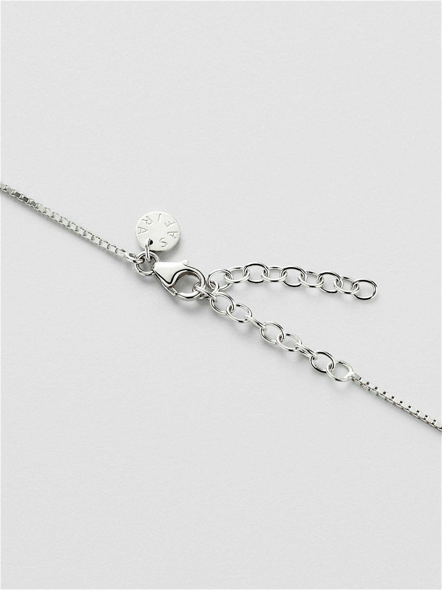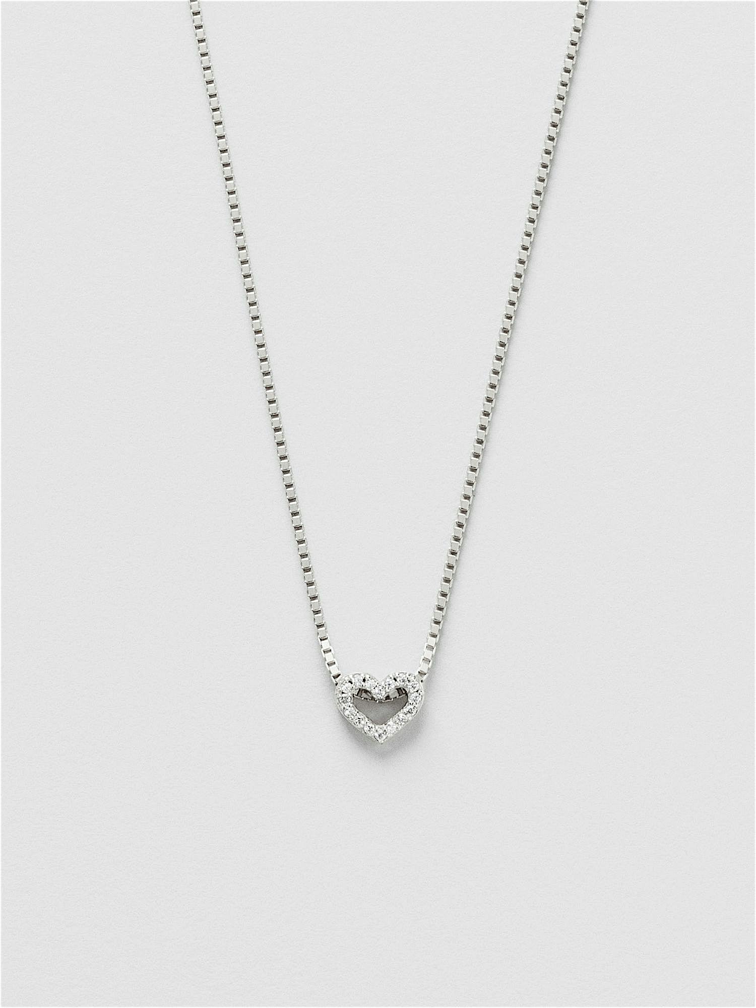 Heart necklace with a box chain in genuine 925 sterling silver, the heart is decorated with clear Cubic Zirconia stones in a pavé setting. The gold necklace is plated with genuine 24K gold and has a core of genuine 925 sterling silver. This product is made from 100% recycled silver.
