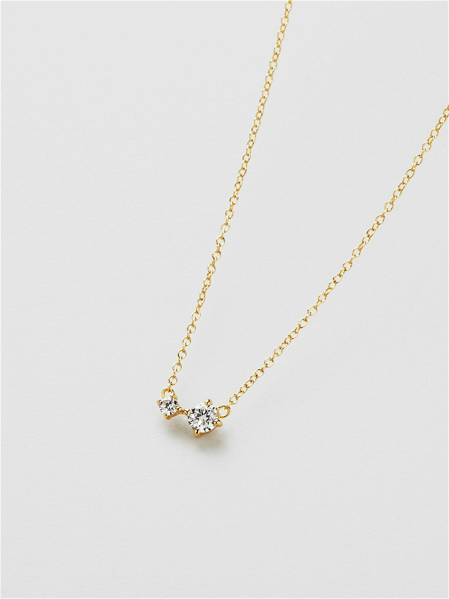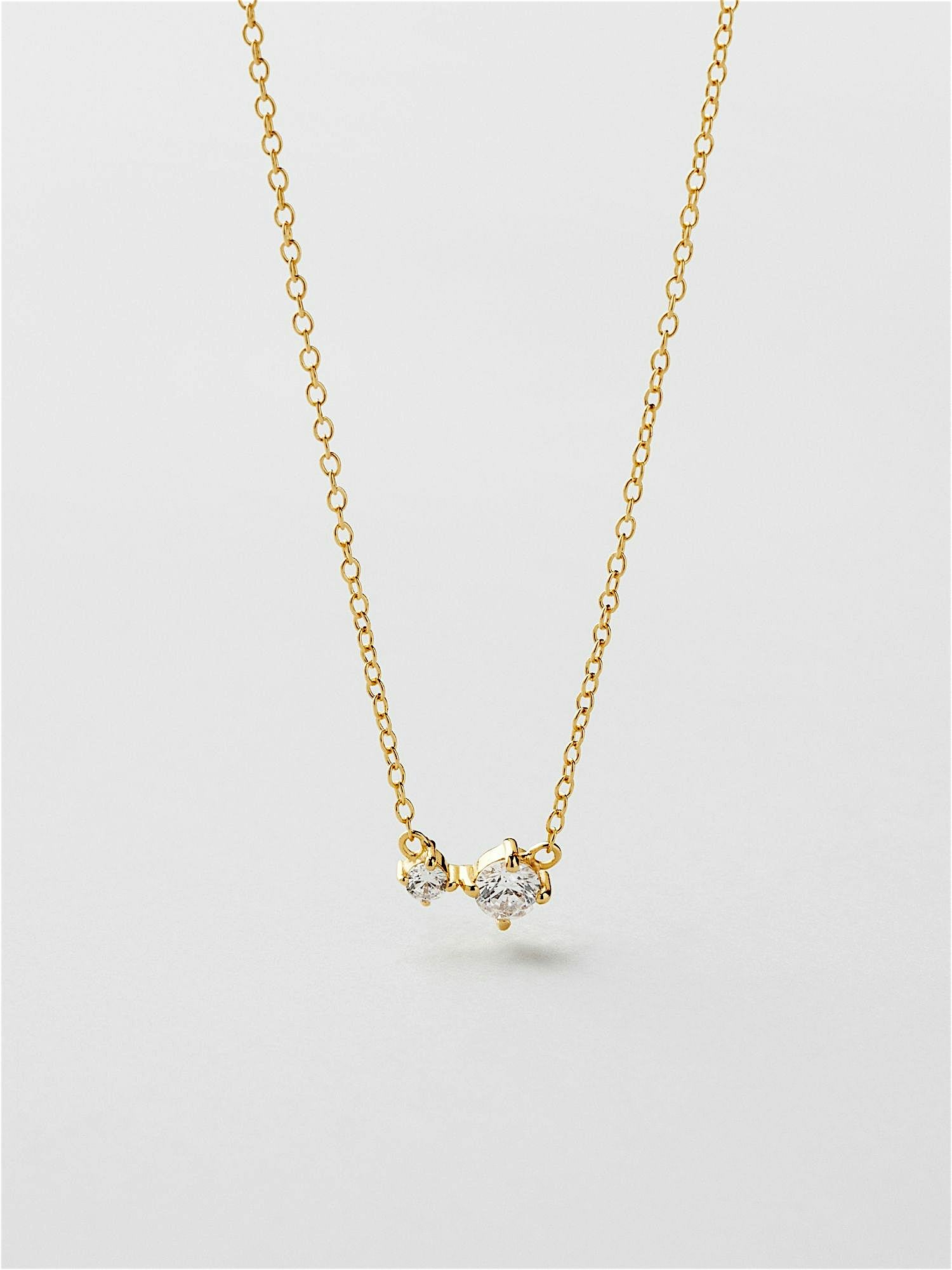 Necklace in genuine 925 sterling silver, decorated with clear Cubic Zirconia stones. The gold necklace is plated with genuine 18K gold and has a core of genuine 925 sterling silver. This product is made of 100% recycled silver.