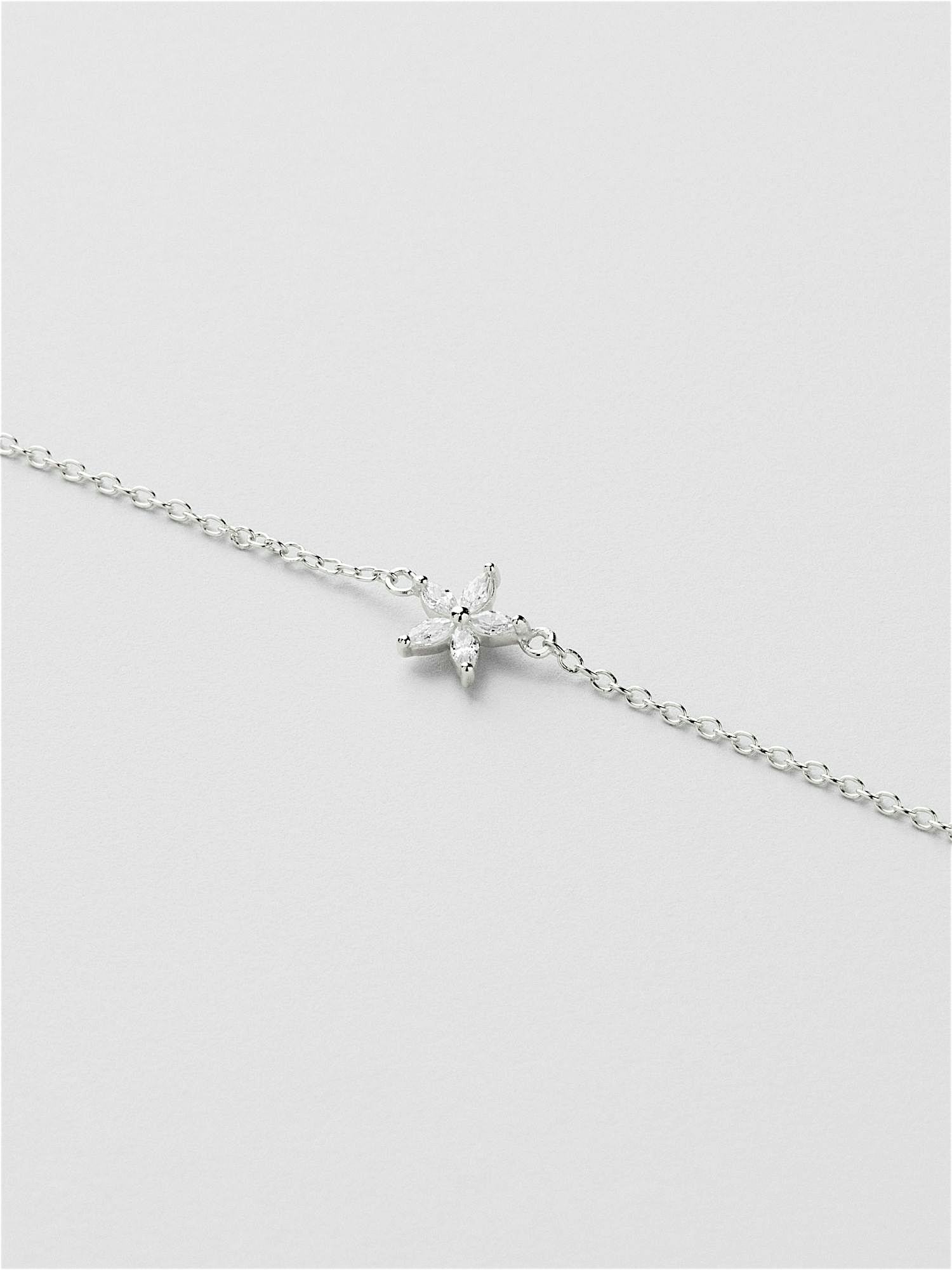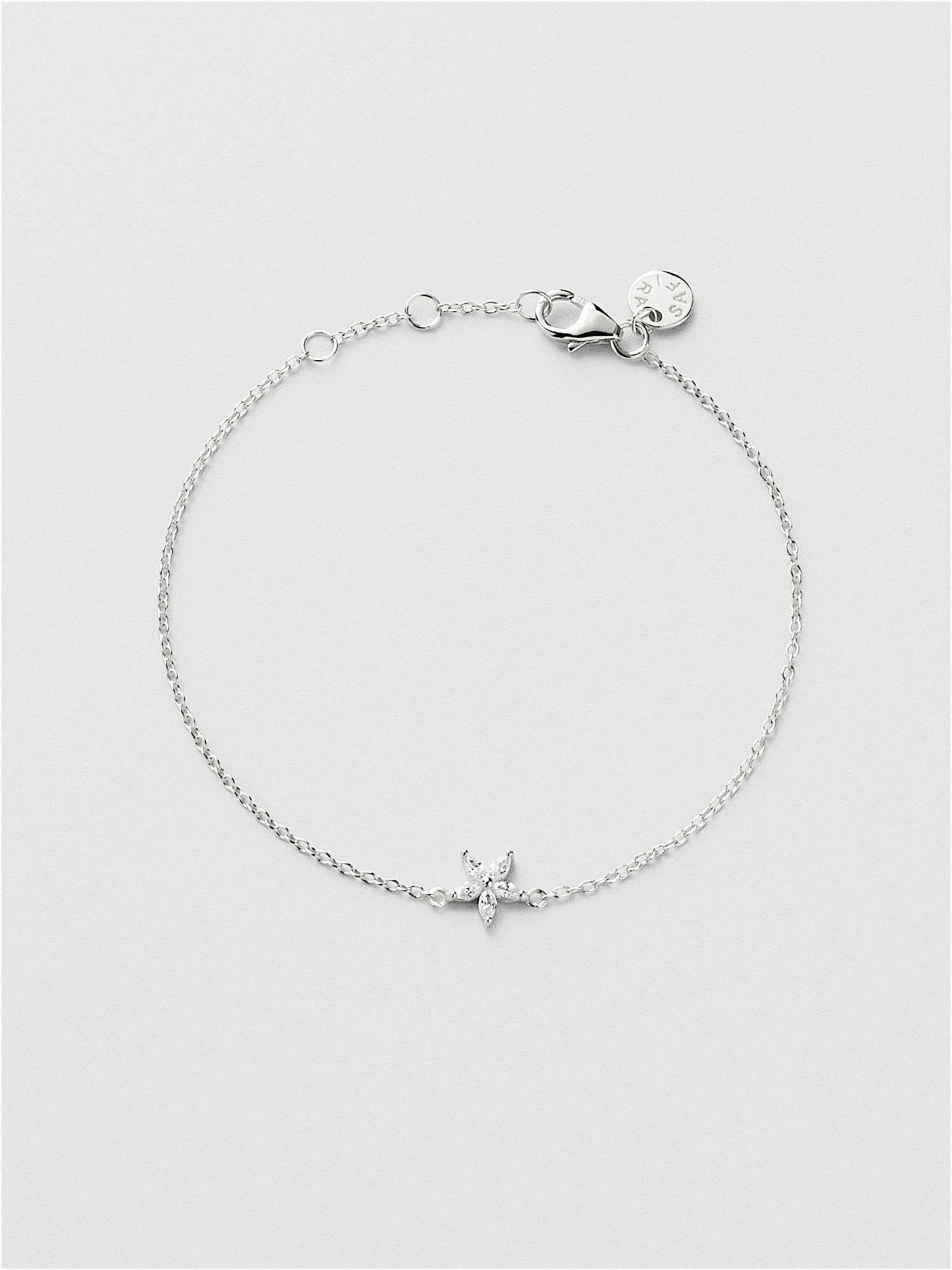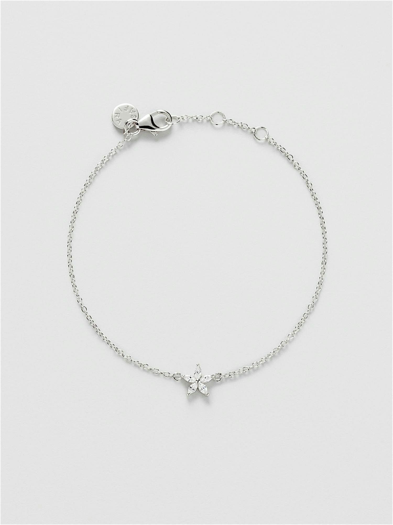 Bracelet in genuine 925 sterling silver, adorned with clear Cubic Zirconia stones shaped into a flower. The gold bracelet is plated with genuine 18K gold and has a core of genuine 925 sterling silver. This product is made from 100% recycled silver.