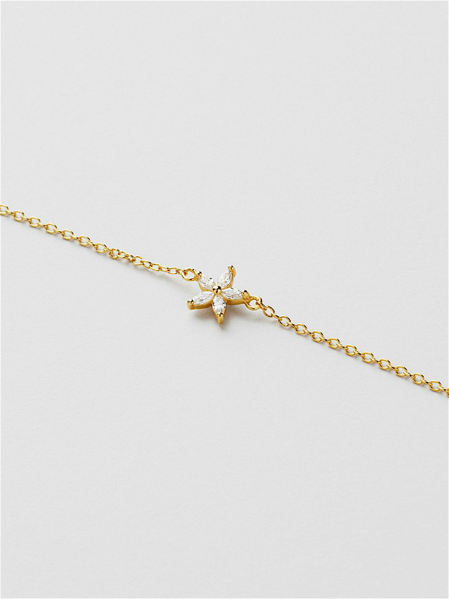 Bracelet in genuine 925 sterling silver, adorned with clear Cubic Zirconia stones shaped into a flower. The gold bracelet is plated with genuine 18K gold and has a core of genuine 925 sterling silver. This product is made from 100% recycled silver.