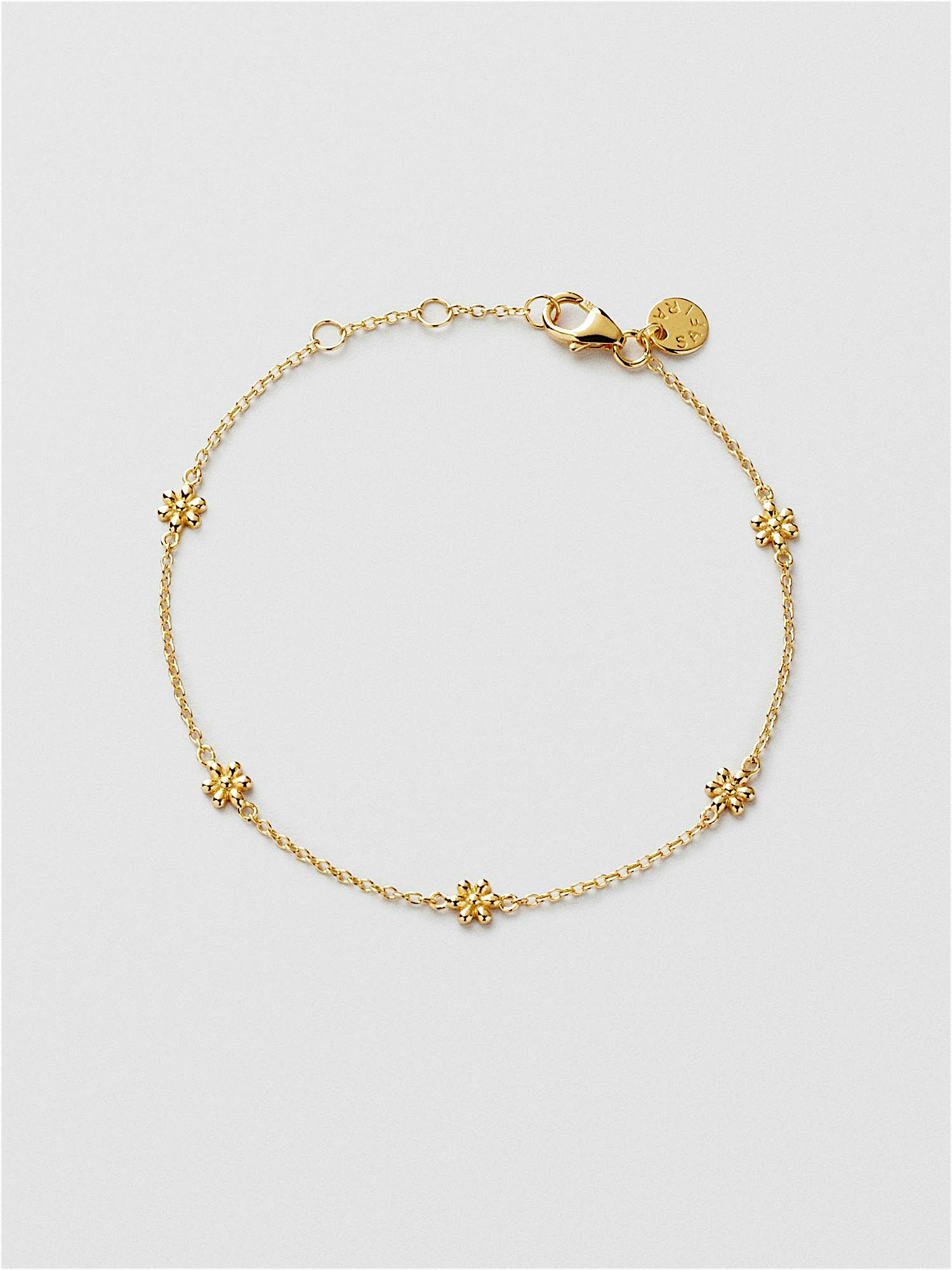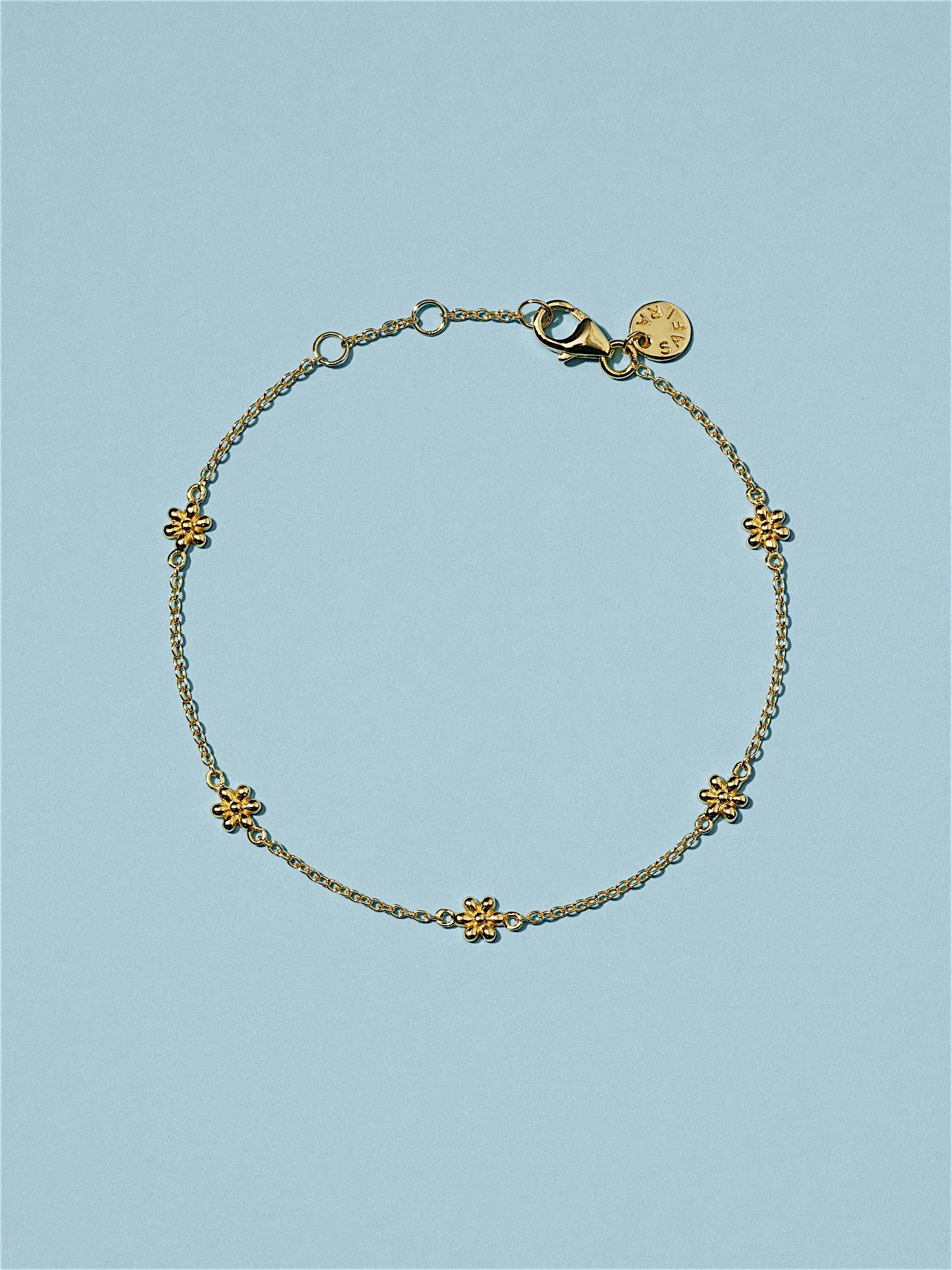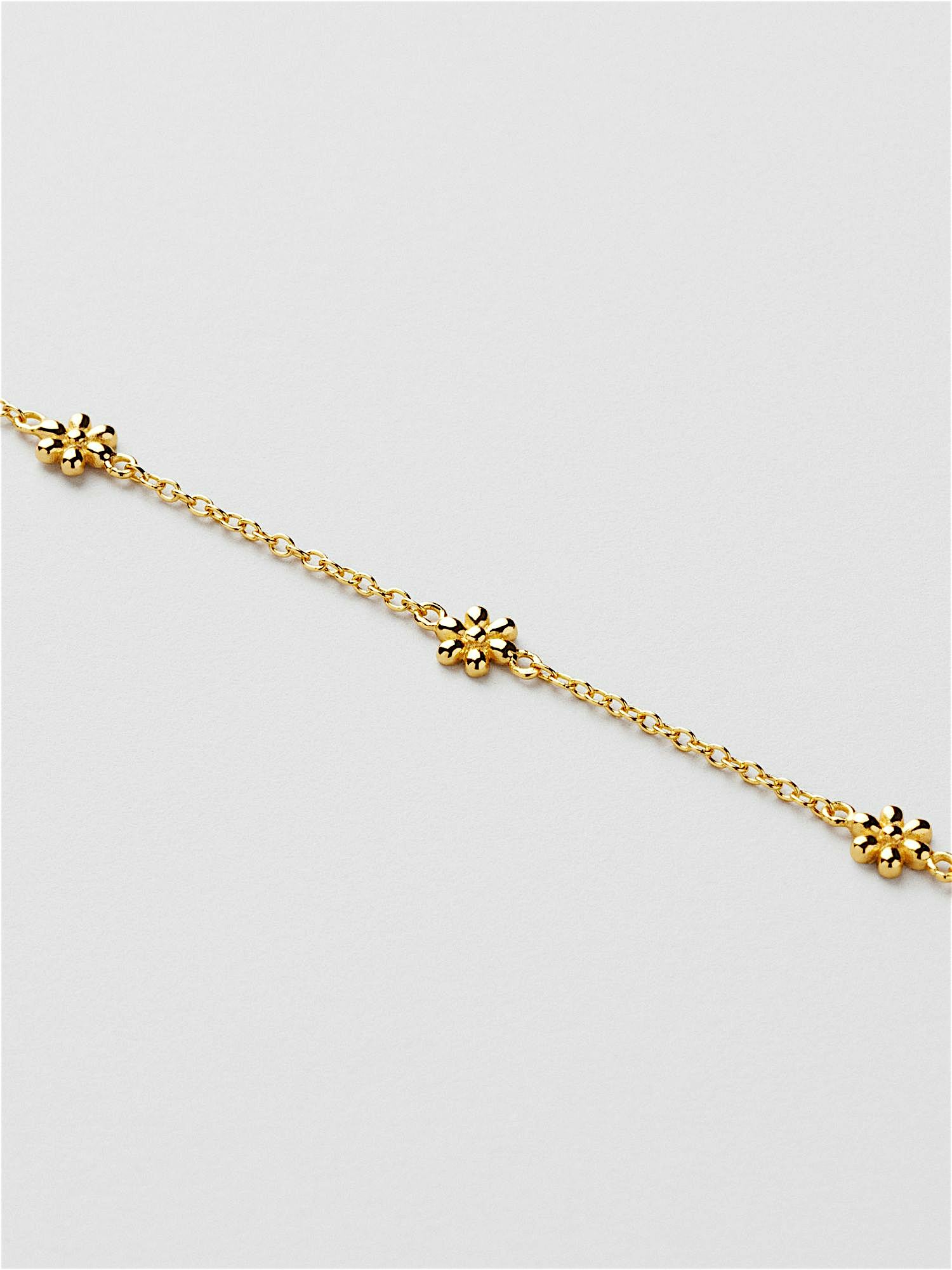 Bracelet with small daisy flowers in genuine 925 sterling silver. The gold bracelet is plated with genuine 18K gold and has a core of genuine 925 sterling silver. This product is made from 100% recycled silver.