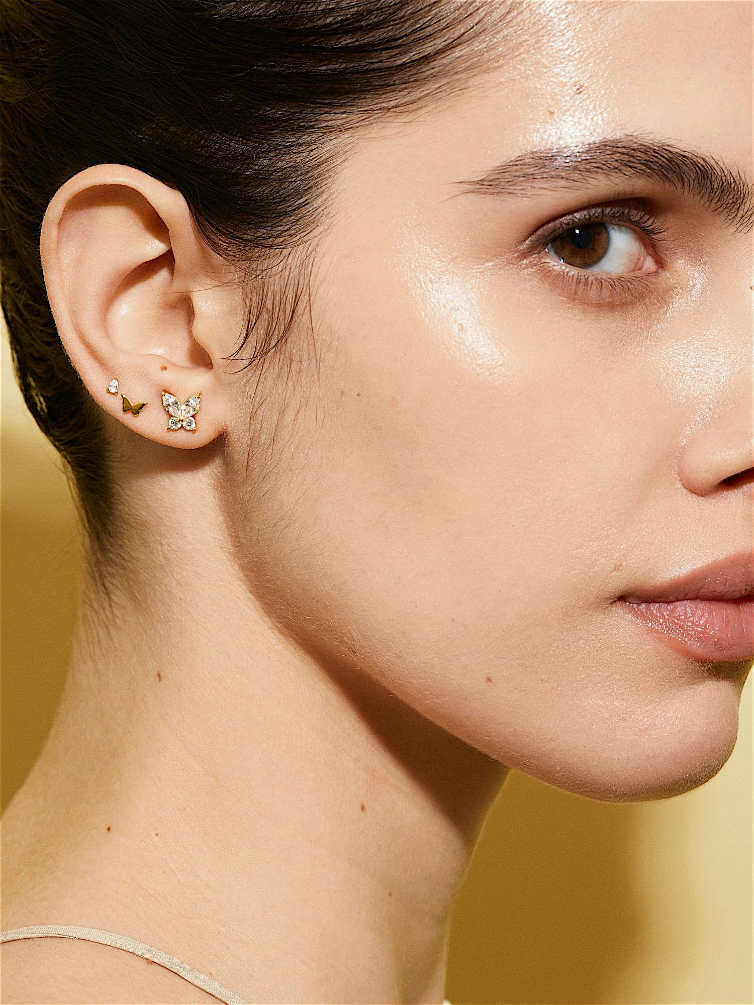 Piercing in genuine 925 sterling silver with a drop shaped clear Cubic Zirconia stone. The gold jewellery is plated with genuine 18K gold and has a core of genuine 925 sterling silver. This product is made from 100% recycled silver. The bar is made of genuine 925 sterling silver. Insert the back part of the piercing through the ear from behind and screw it on with the front part of the piercing.