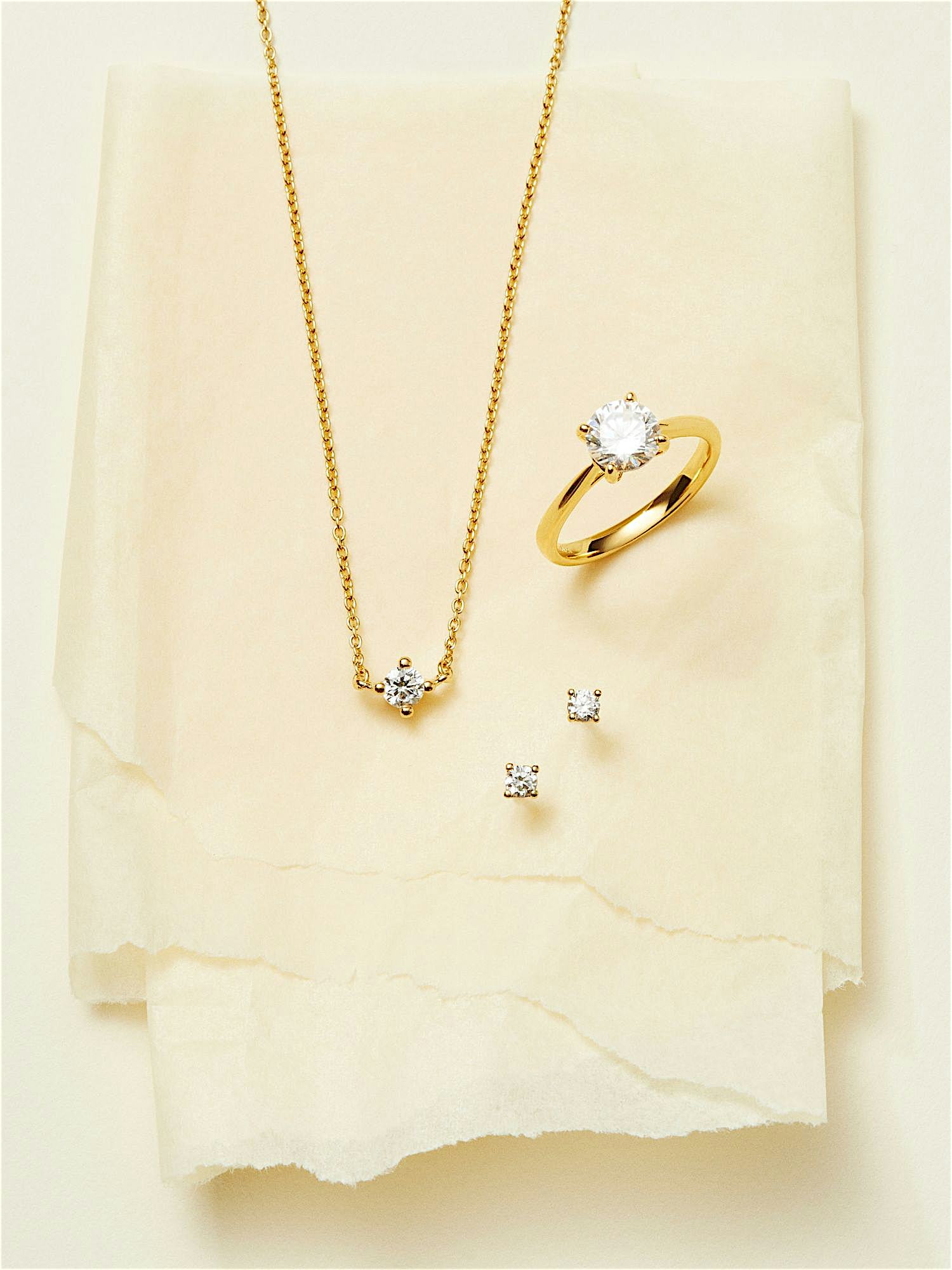 Solitaire ring in genuine 925 sterling silver, adorned with a clear Cubic Zirconia stone. The gold ring is plated with genuine 18K gold and has a core of genuine 925 sterling silver. This product is made from 100% recycled silver.