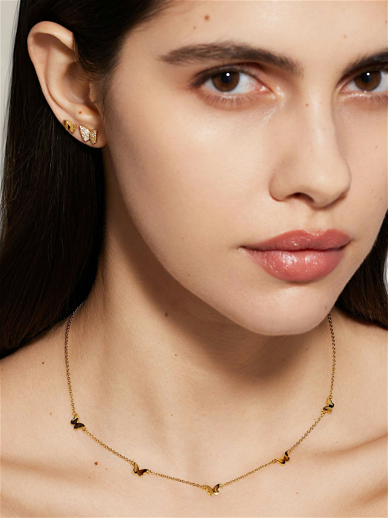 Necklace with butterflies in genuine 925 sterling silver. The gold necklace is plated with genuine 18K gold and has a core of genuine 925 sterling silver. This product is made from 100% recycled silver.