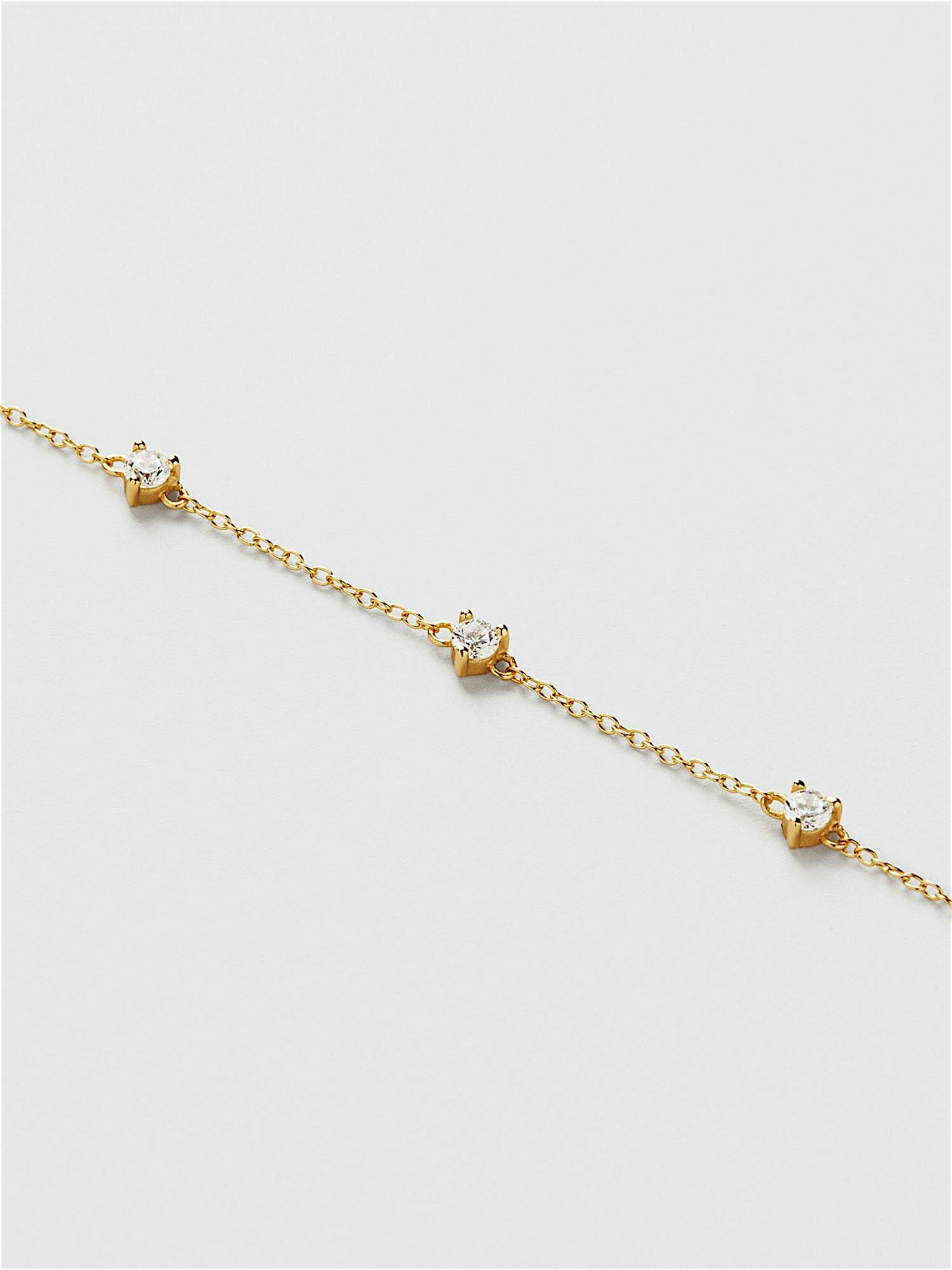 Bracelet in genuine 925 sterling silver, decorated with five clear Cubic Zirconia stones. The gold bracelet is plated with genuine 18K gold and has a core of genuine 925 sterling silver. This product is made from 100% recycled silver.