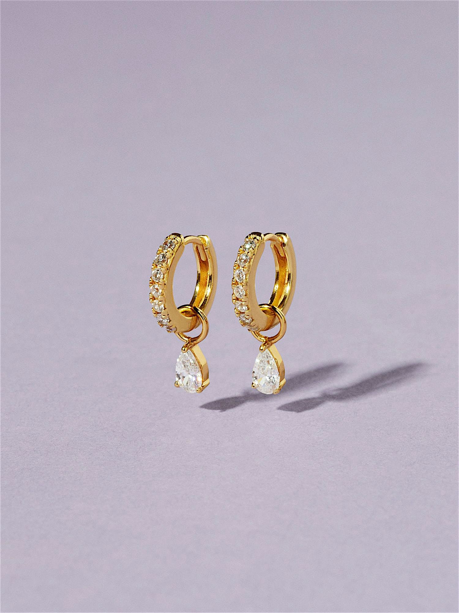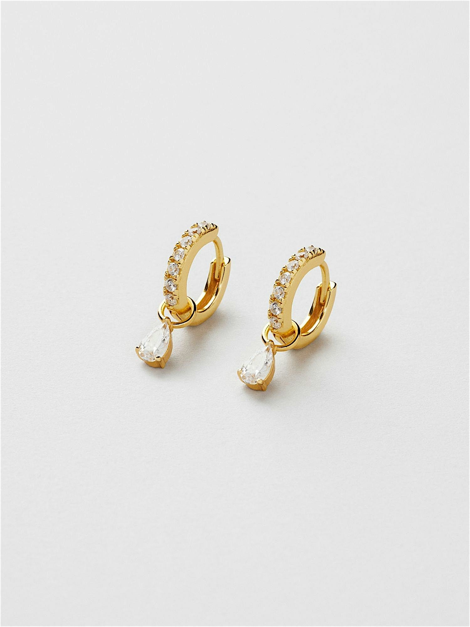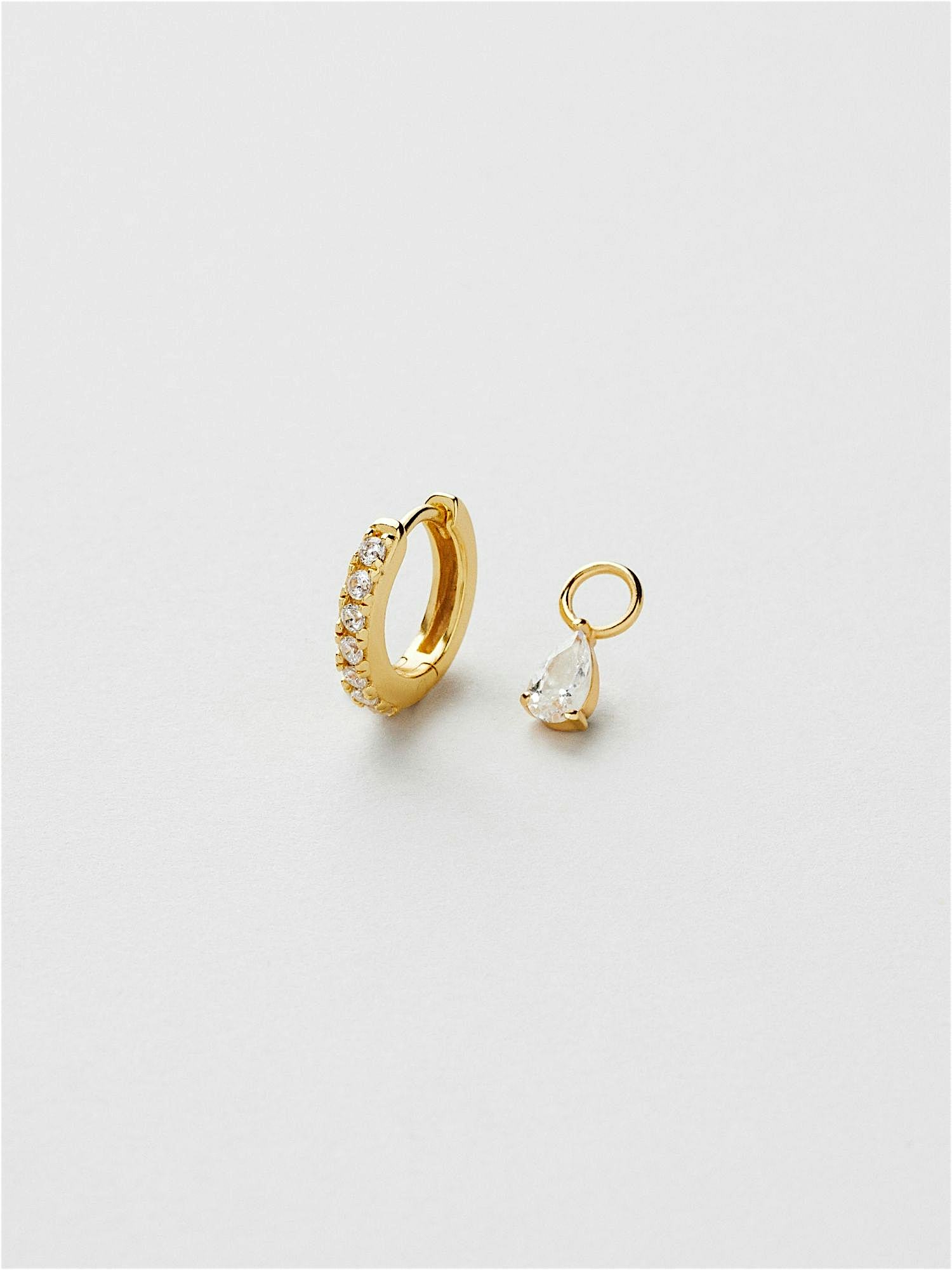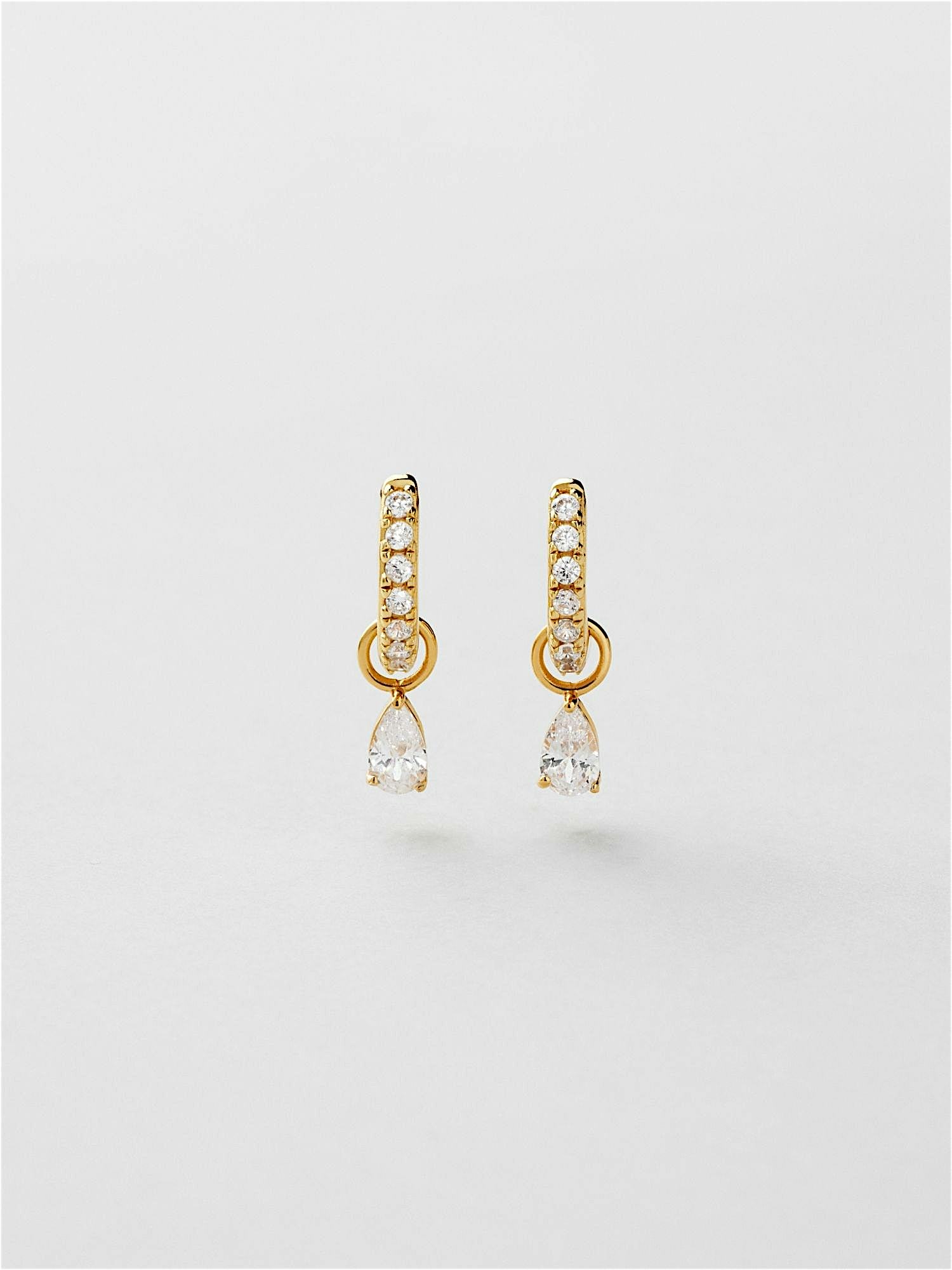Hoops in genuine 925 sterling silver, decorated with clear Cubic Zirconia stones. The gold earrings are plated with genuine 18K gold and have a core of genuine 925 sterling silver. This product is made of 100% recycled silver.