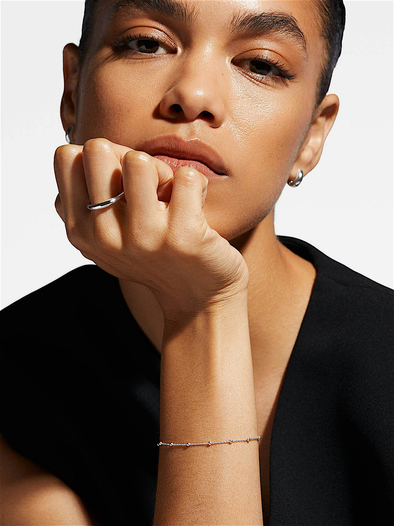 Chain bracelet with small beads in genuine 925 sterling silver. The gold bracelet is plated with genuine 18K gold and has a core of genuine 925 sterling silver. This product is made from 100% recycled silver.