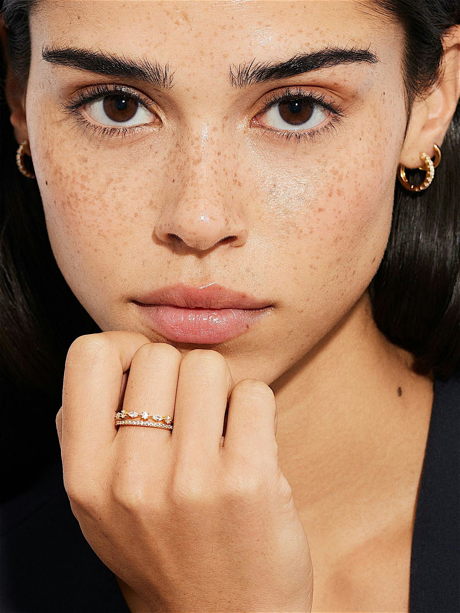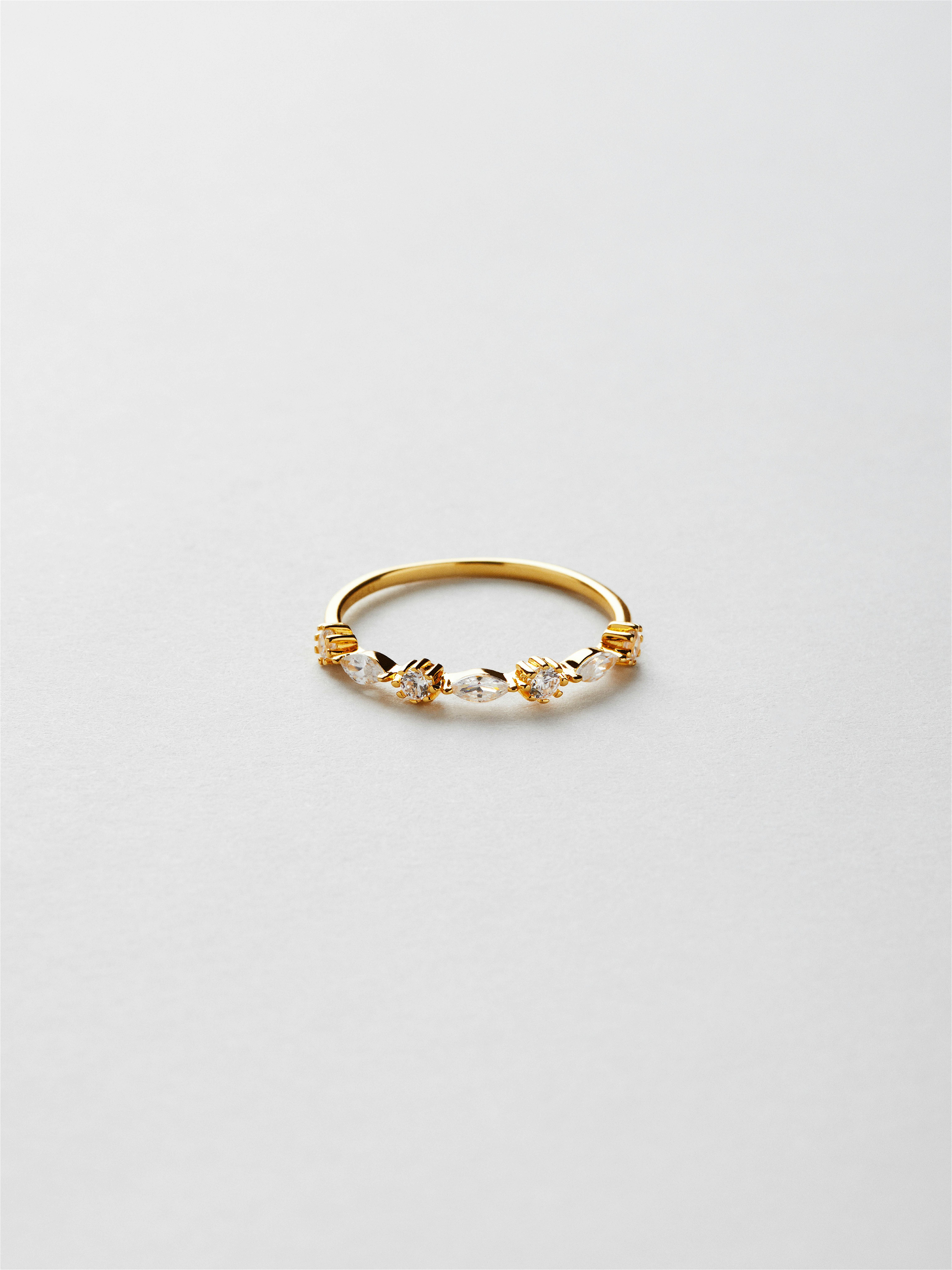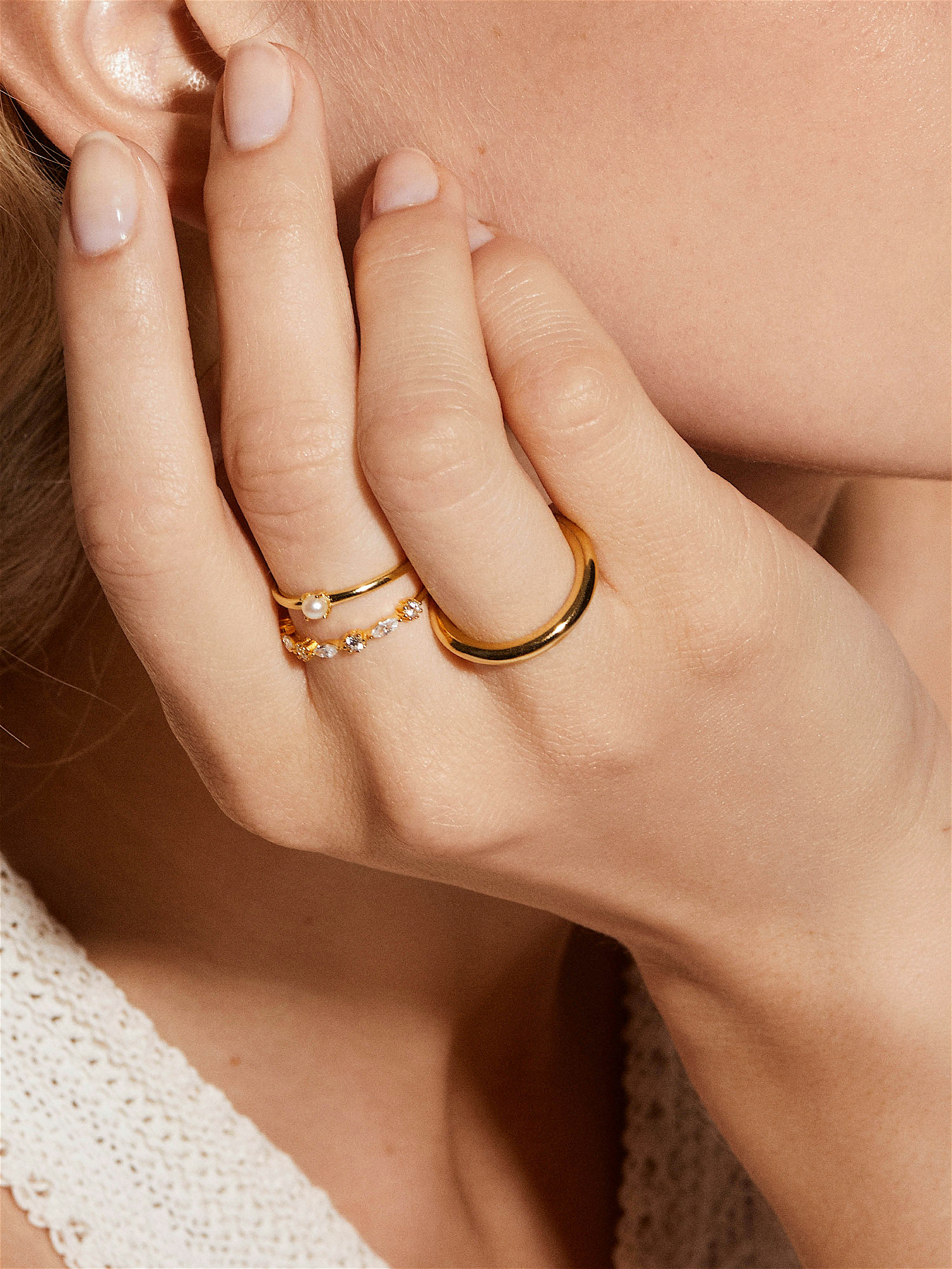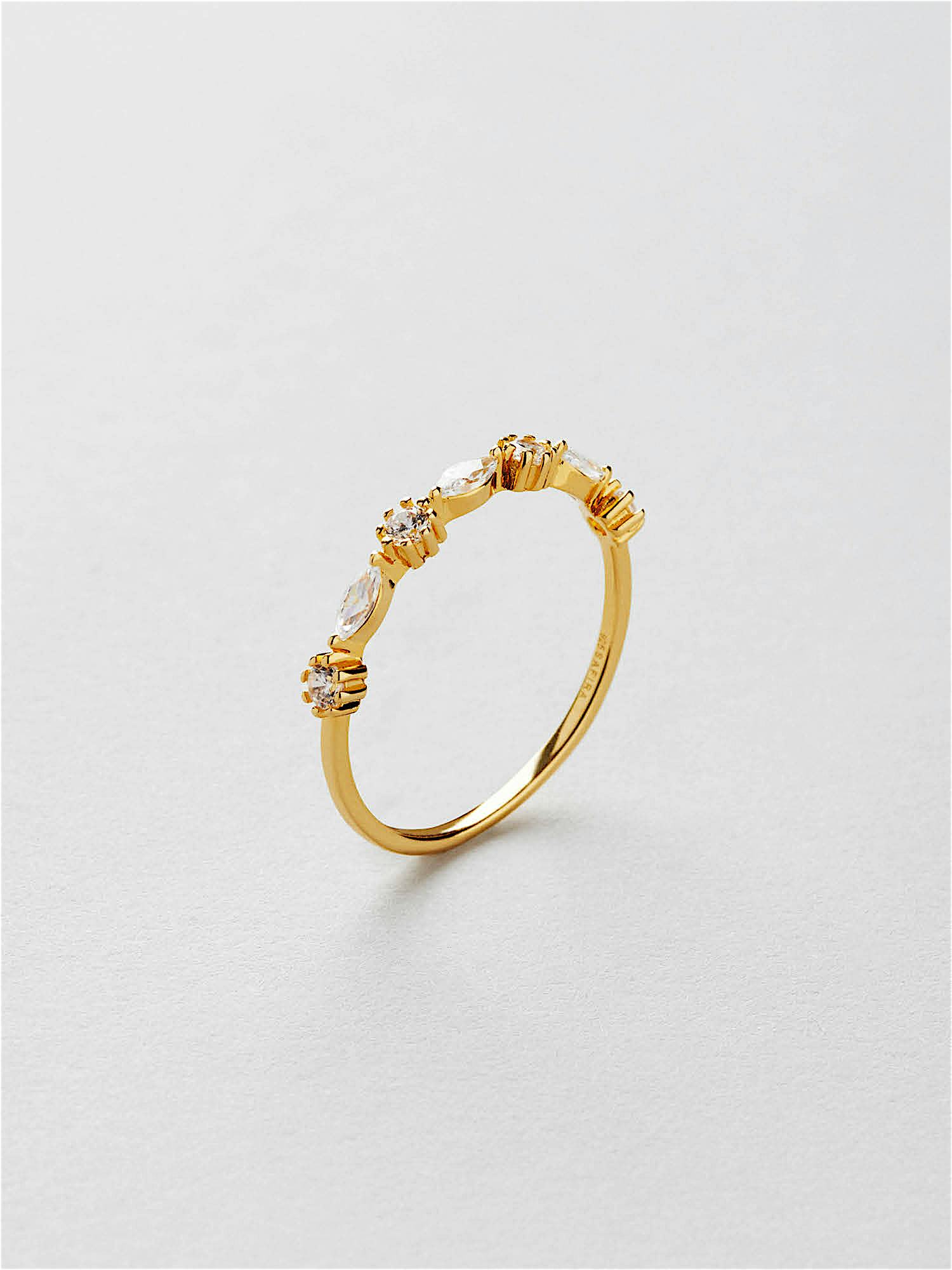 Ring in genuine 925 sterling silver adorned with clear cubic zirconia stones. The gold jewellery is plated with genuine 18K gold and has a core of genuine 925 sterling silver. This product is made of 100% recycled silver.