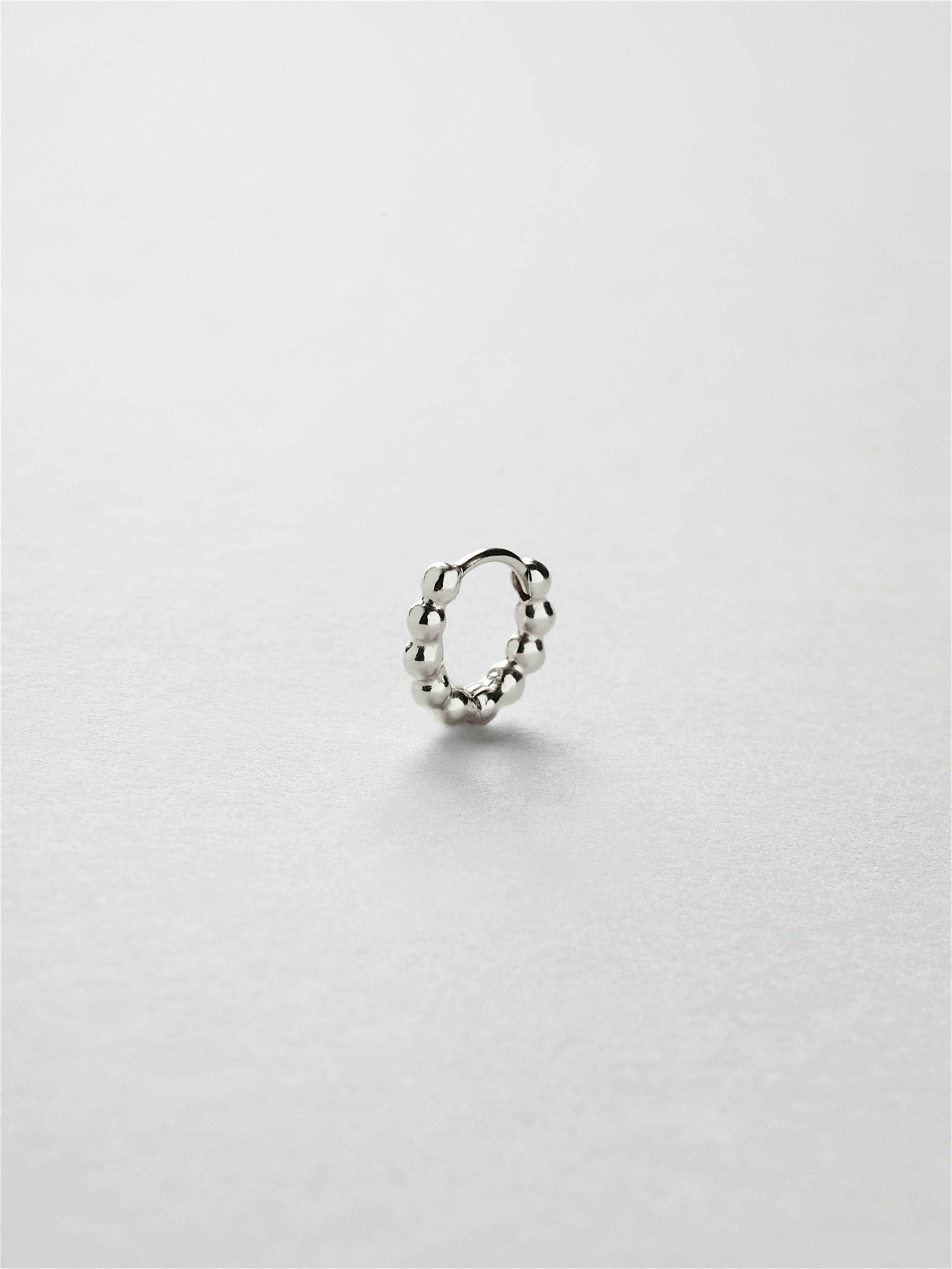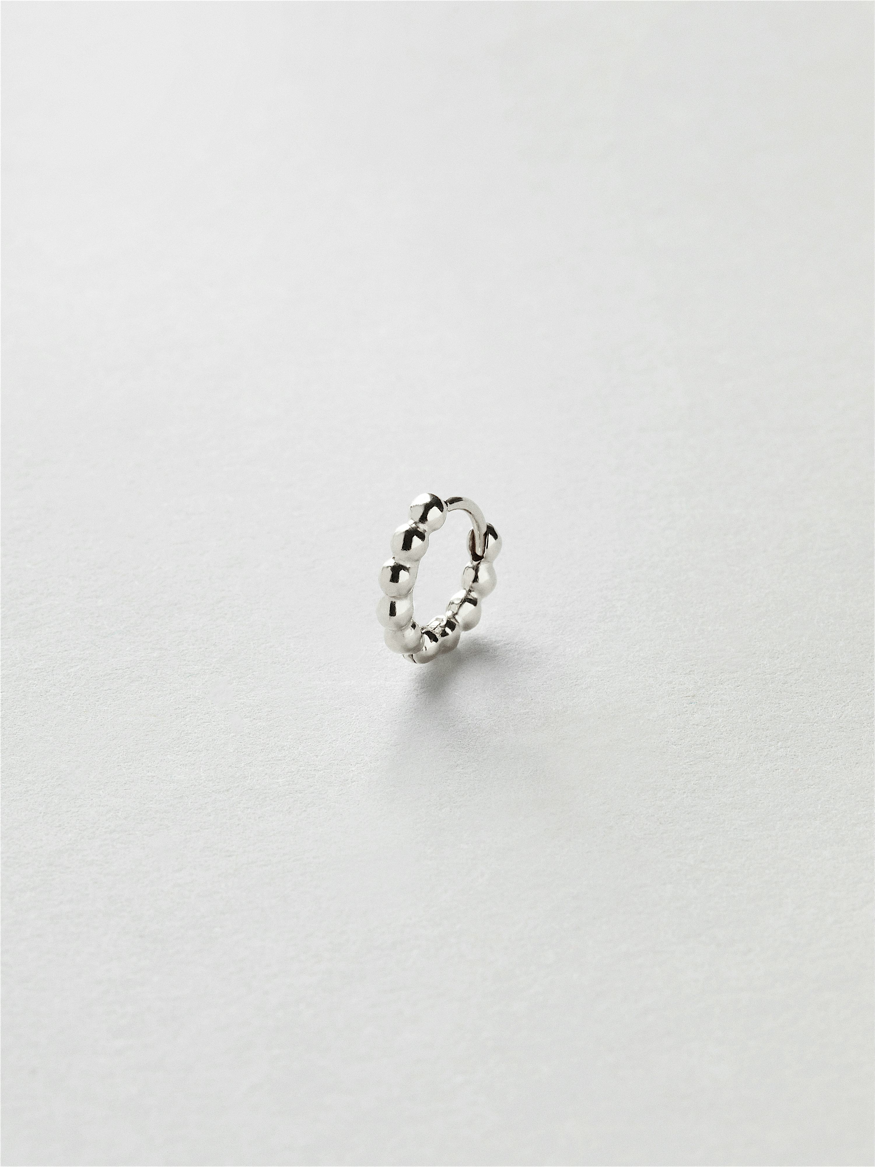 Huggie hoop with beads in genuine 925 sterling silver. The gold piercing is gilded with genuine 24K gold and has a core of genuine 925 sterling silver. This product is made from 100% recycled silver. Sold individually.