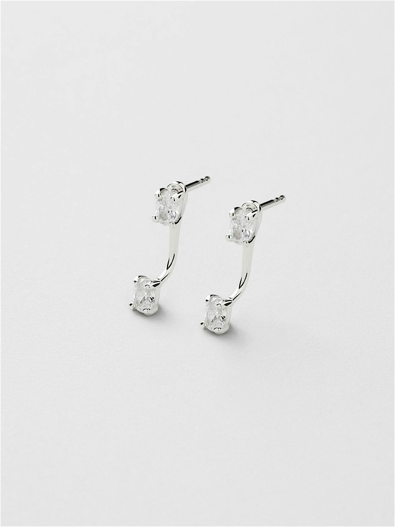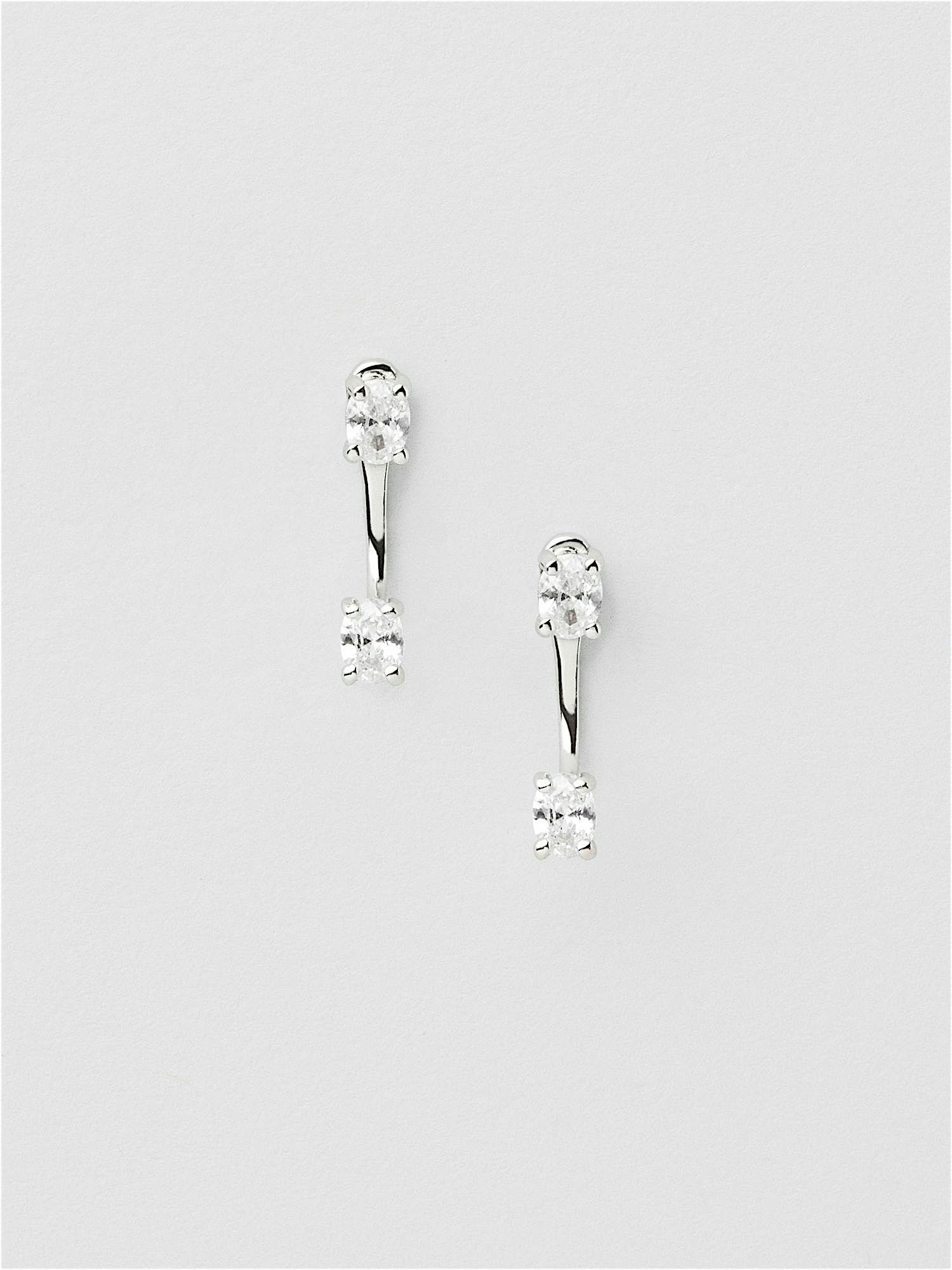 Jacket studs in genuine 925 sterling silver with clear oval Cubic Zirconia stones. The gold earrings are plated with genuine 18K gold and have a core of genuine 925 sterling silver. This product is made of 100% recycled silver.