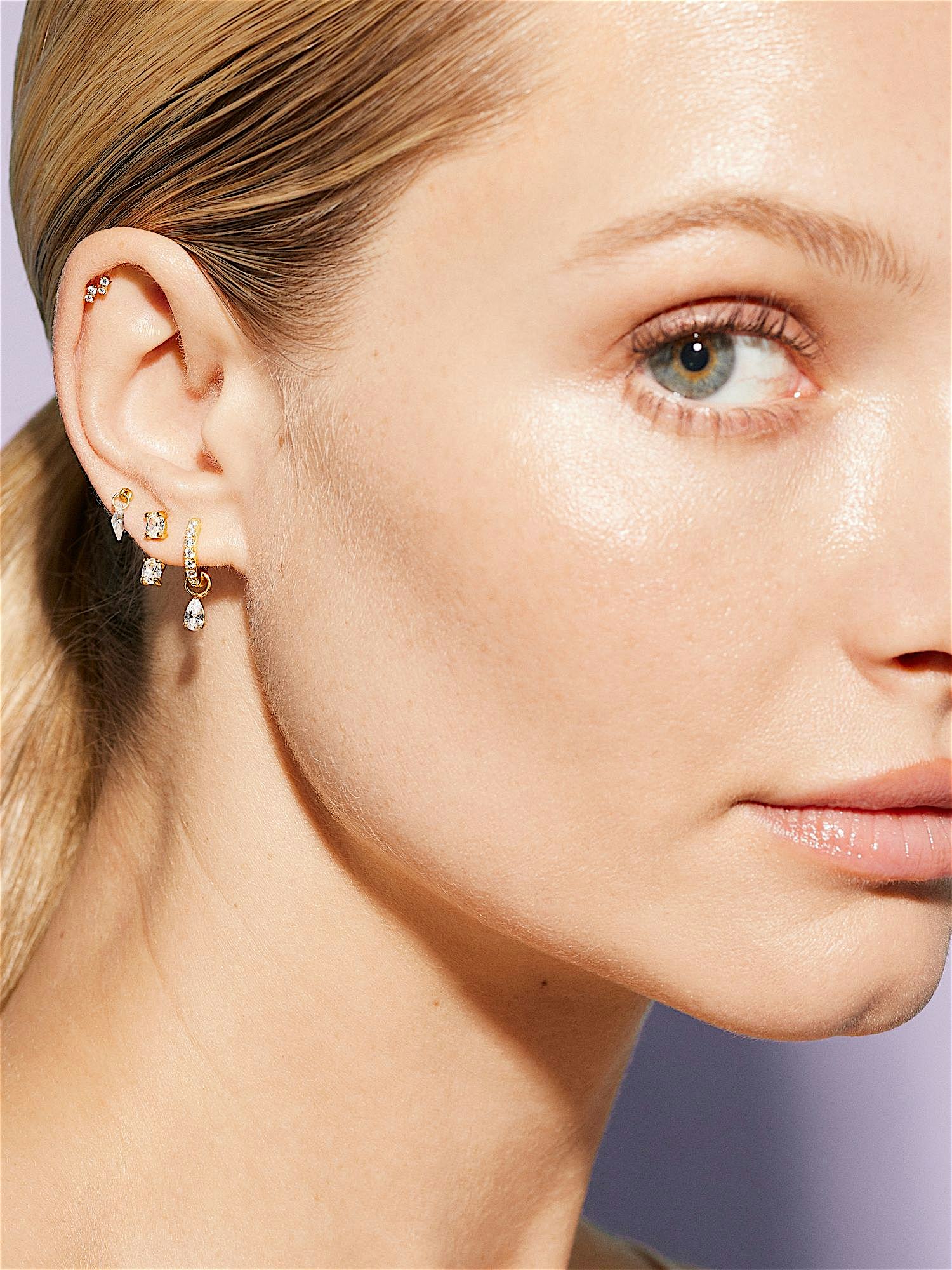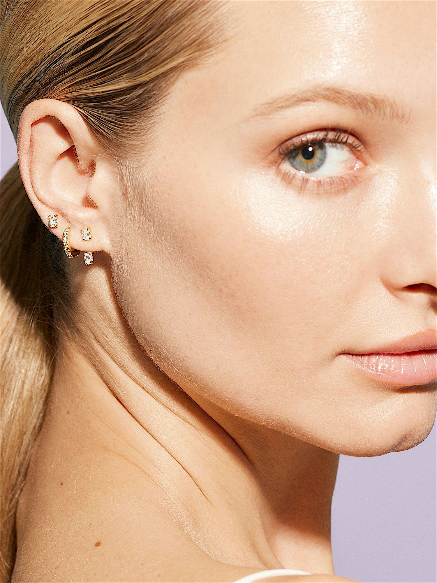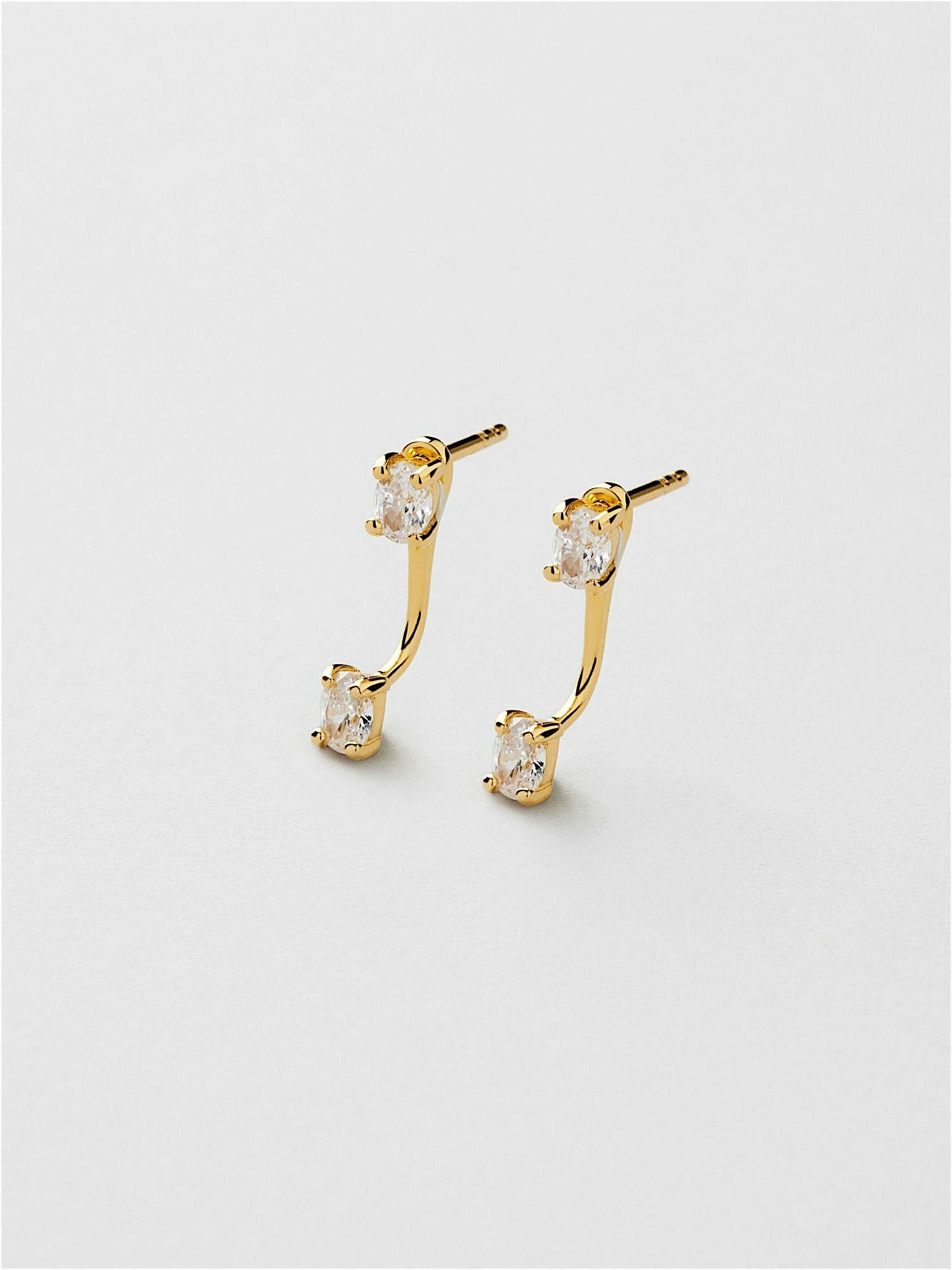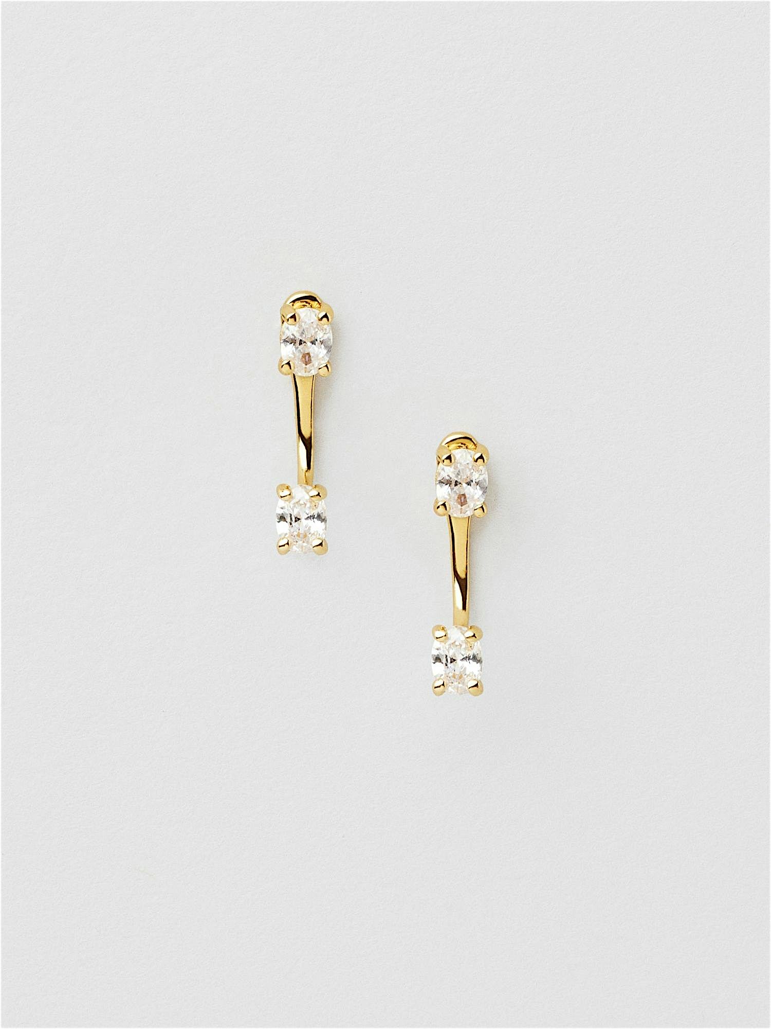 Jacket studs in genuine 925 sterling silver with clear oval Cubic Zirconia stones. The gold earrings are plated with genuine 18K gold and have a core of genuine 925 sterling silver. This product is made of 100% recycled silver.
