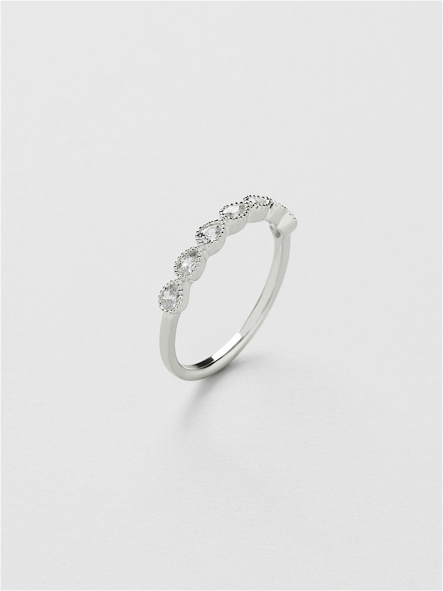 Ring in genuine 925 sterling silver decorated with clear drop shaped Cubic Zirconia stones. The gold ring is gilded with genuine 24K gold and has a core of genuine 925 sterling silver. This product is made from 100% recycled silver.