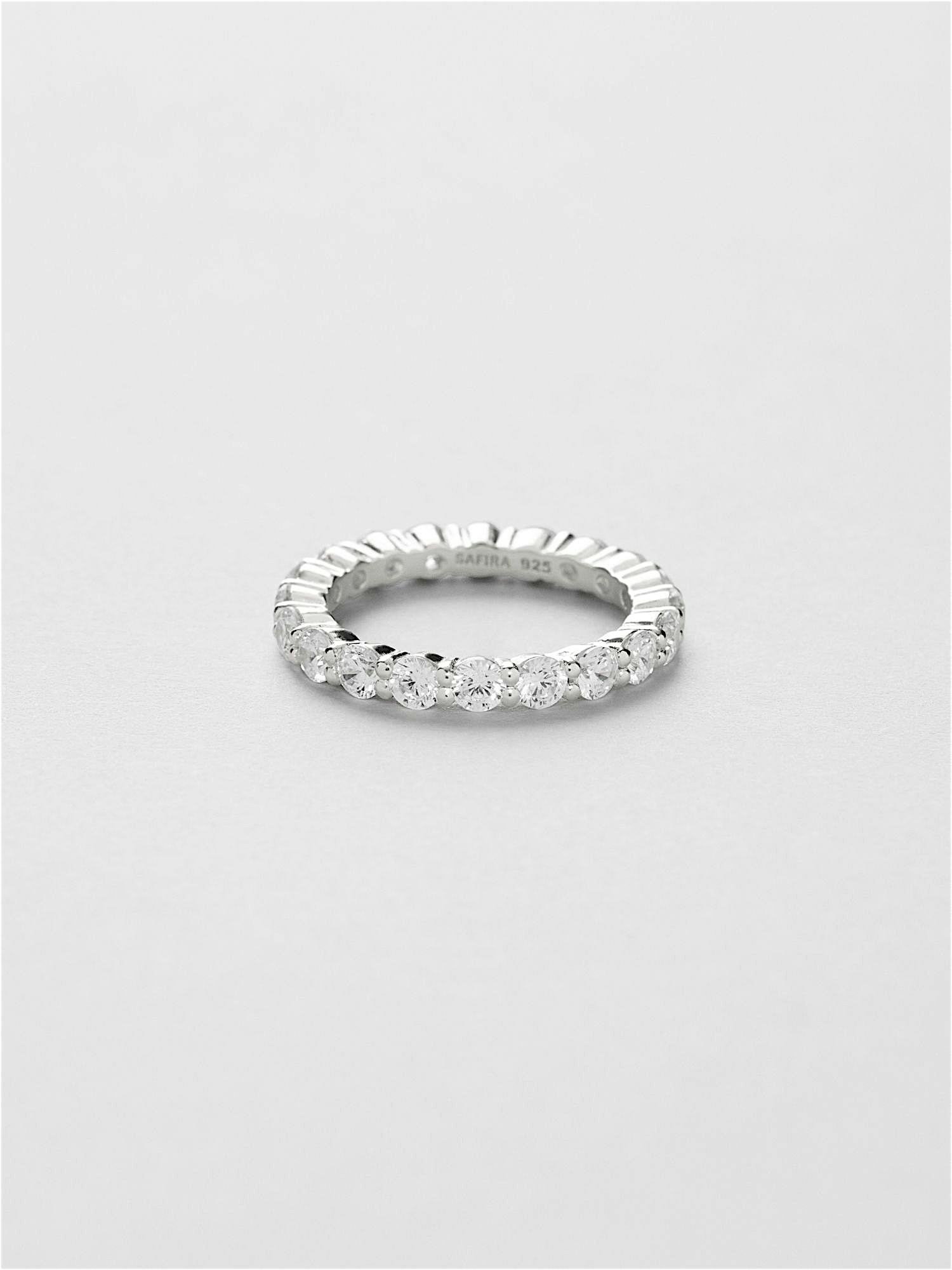 Ring in genuine 925 sterling silver adorned with clear Cubic Zirconia stones. The gold ring is plated with genuine 24K gold and has a core of genuine 925 sterling silver. This product is made from 100% recycled silver. Available in small sizes that fit the pinky finger.