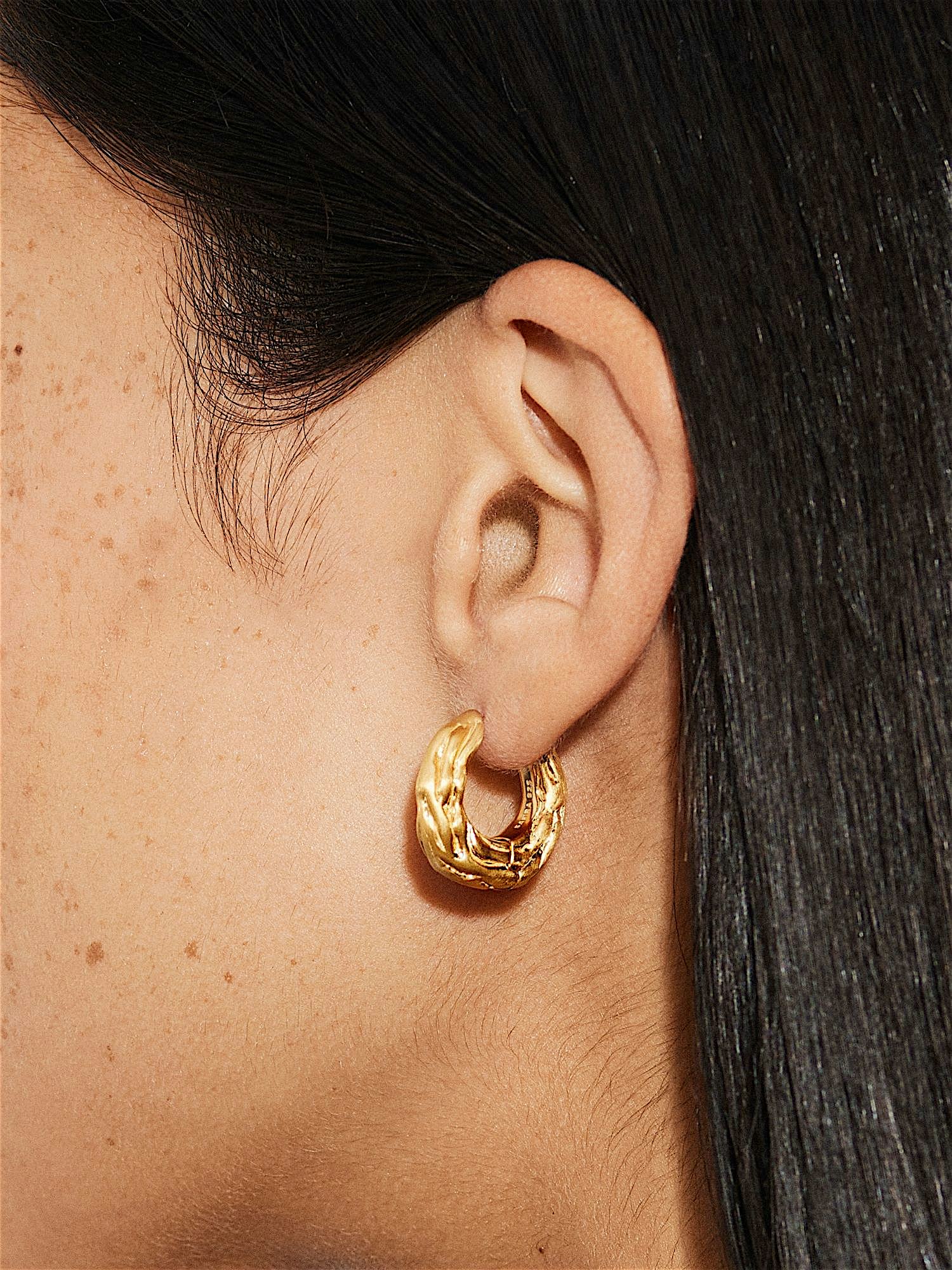 Textured hoops in genuine 925 sterling silver. The gold earrings are plated with genuine 24K gold and have a core of genuine 925 sterling silver. This product is made from 100% recycled silver.