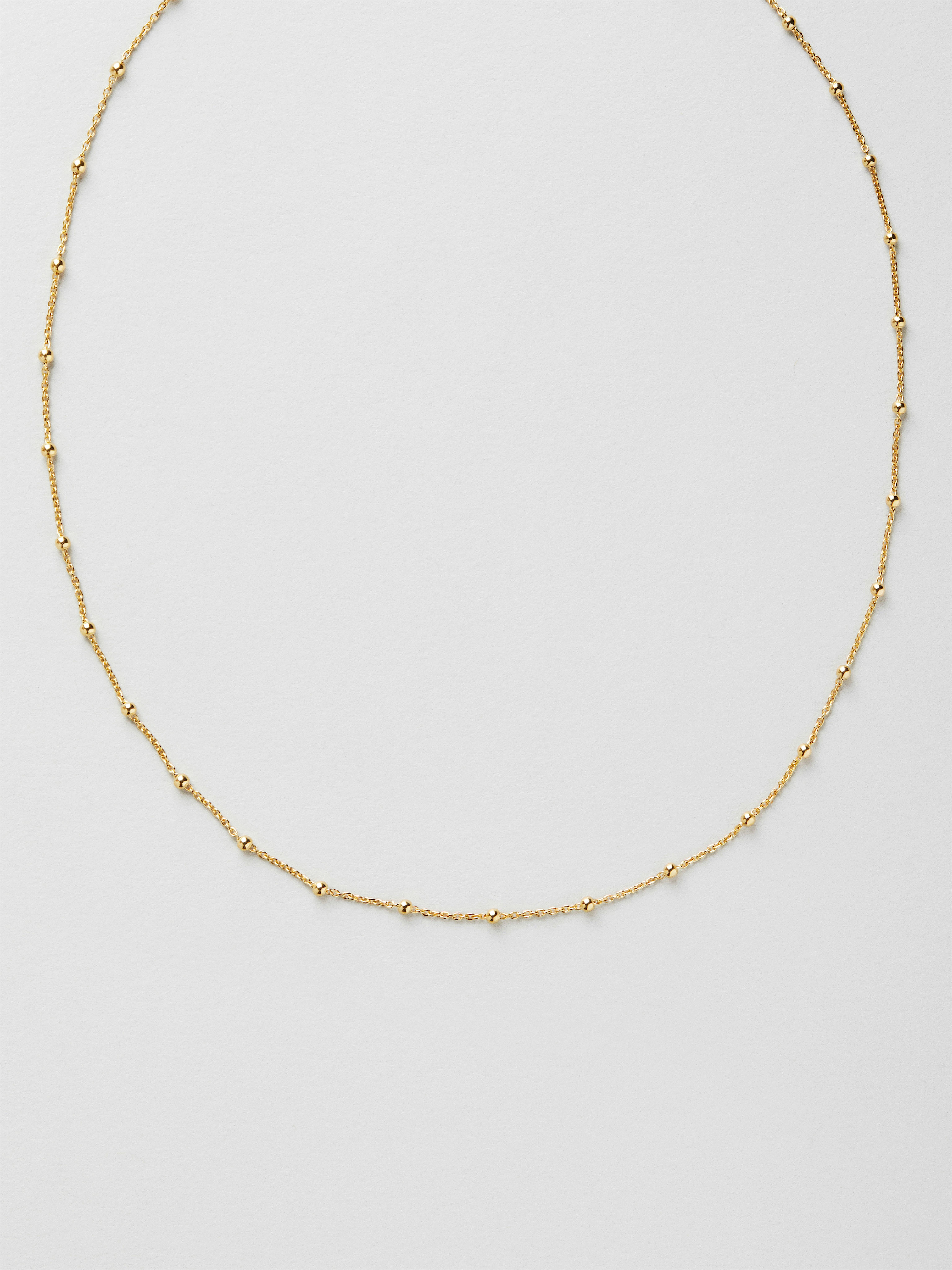 Chokerkjede med små perler i ekte 925 sterling sølv. Gullhalskjedet er forgylt med ekte 18K gull og har en kjerne av ekte 925 sterling sølv. Dette produktet er laget av 100 % resirkulert sølv.