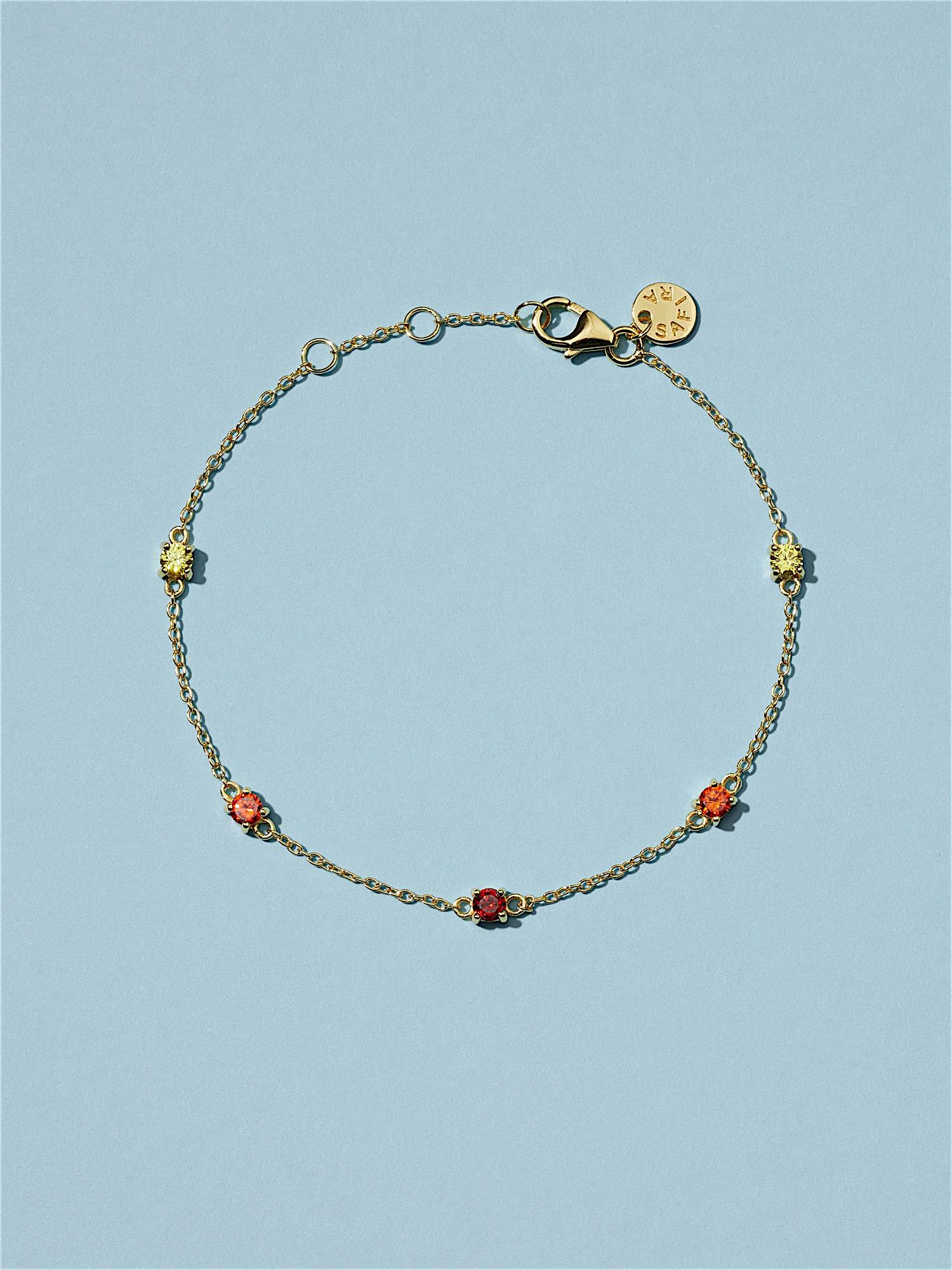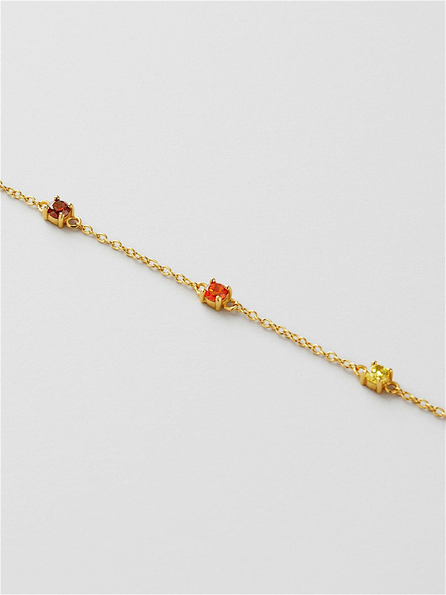 Armbånd i ekte 925 sterling sølv, dekorert med fargede Cubic Zirconia-stener. Gullarmbåndet er belagt med ekte 18K gull og har en kjerne av ekte 925 sterling sølv. Dette produktet er laget av 100 % resirkulert sølv.