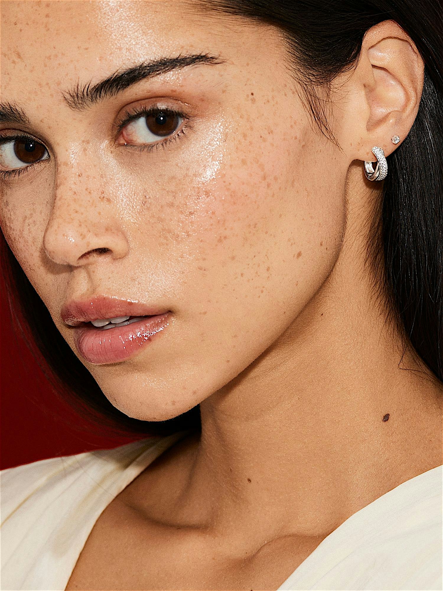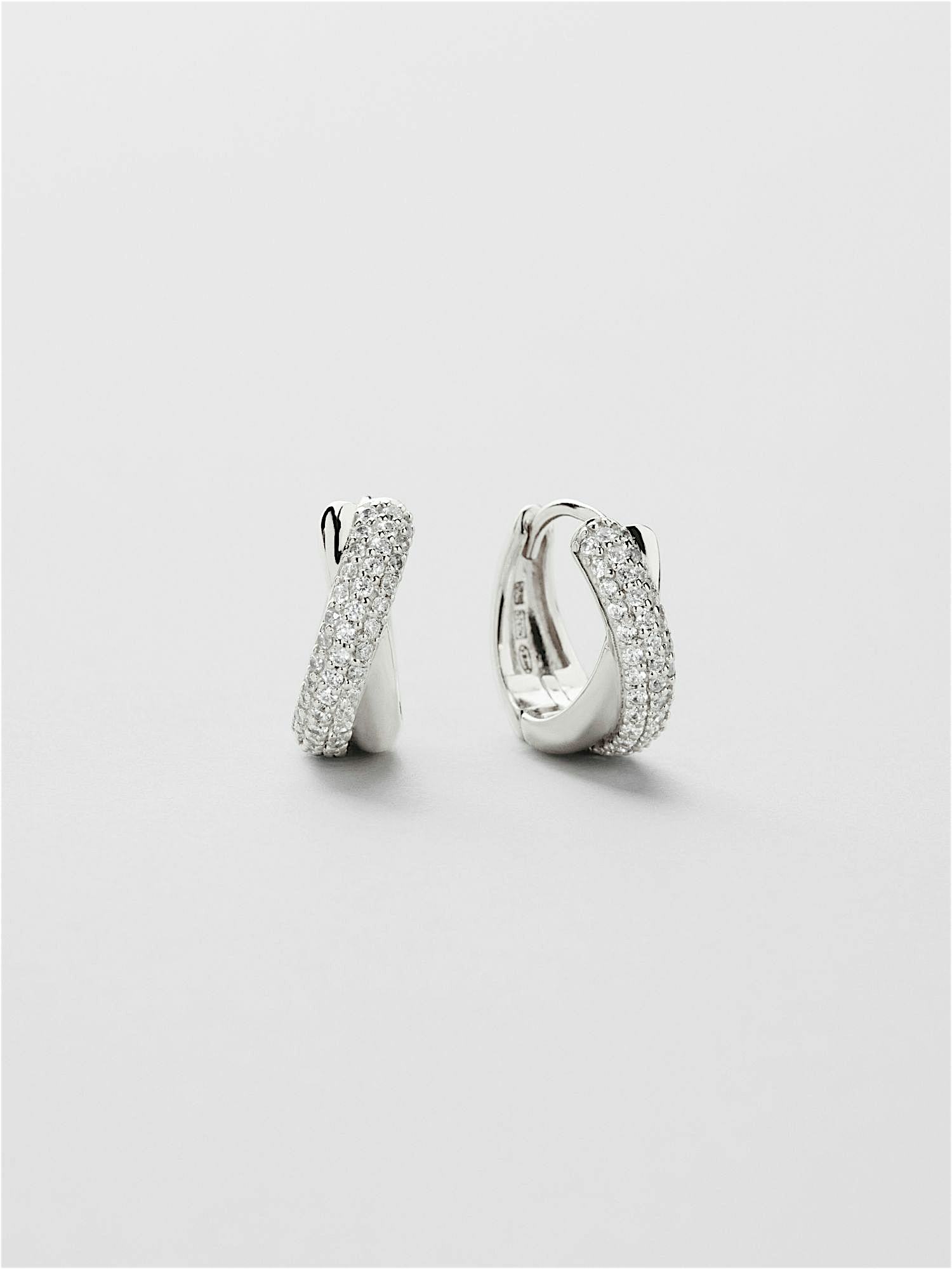 Hoops i ekte 925 sterlingsølv, dekorert med klare Cubic Zirconia-steiner. Gulløredobbene er forgylt med ekte 24K gull og har en kjerne av ekte 925 sterlingsølv. Dette produktet er laget av 100 % resirkulert sølv.