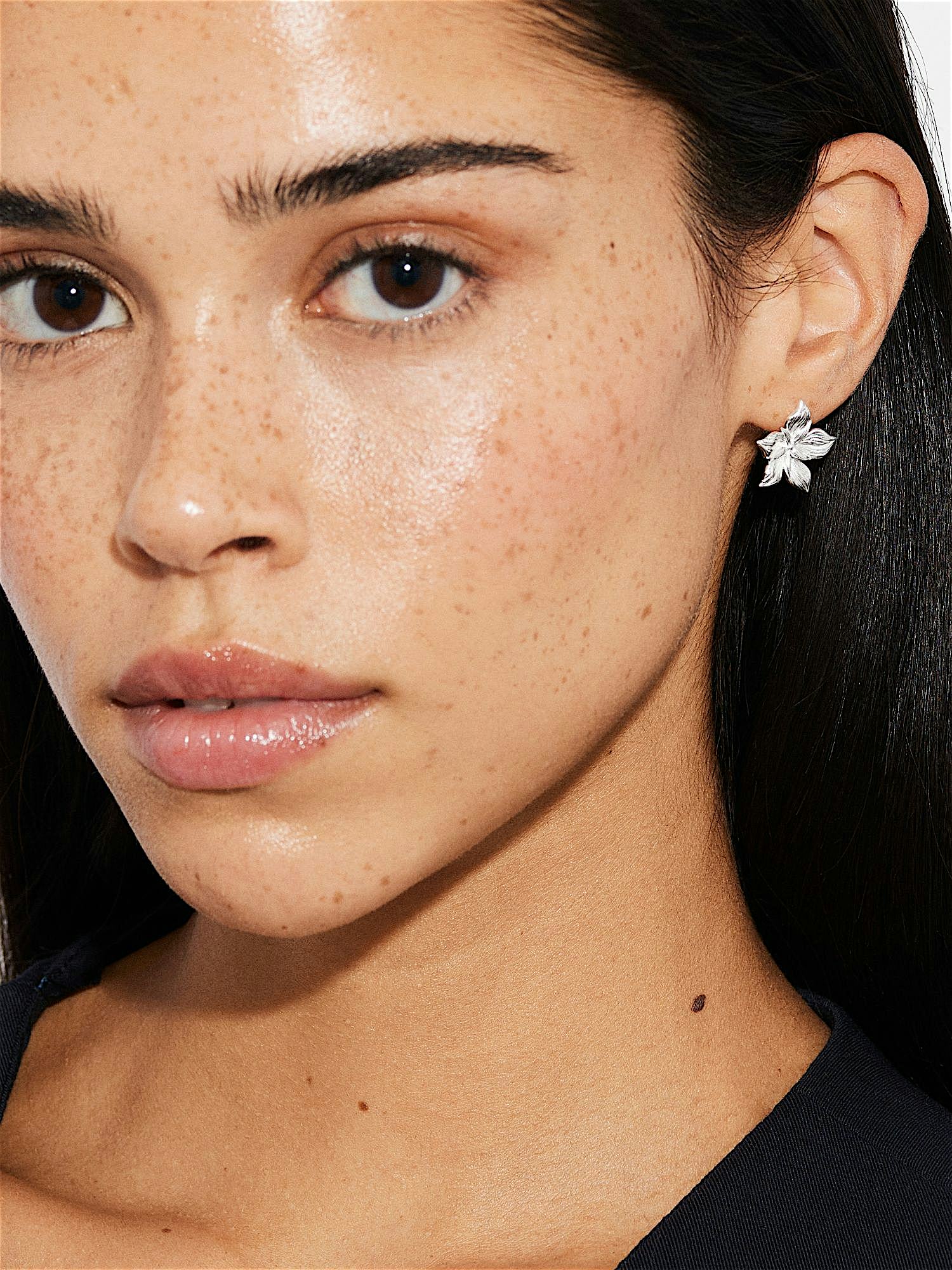 Blomsterøreringer i ekte 925 sterling sølv. Gulløreringene er forgyllt med ekte 18K gull og har en kjerne av 925 sterling sølv. Dette produktet er laget av 98 % resirkulert sølv.