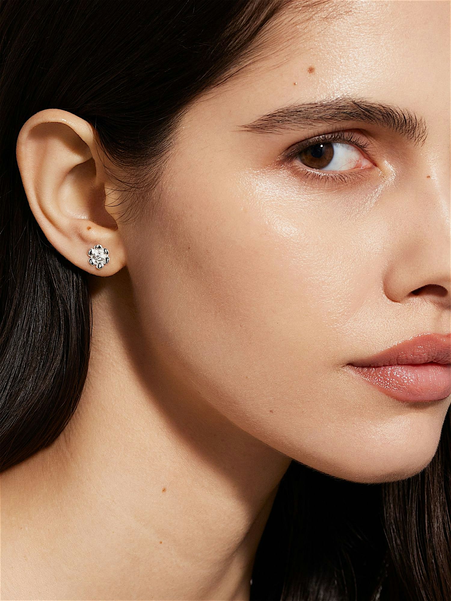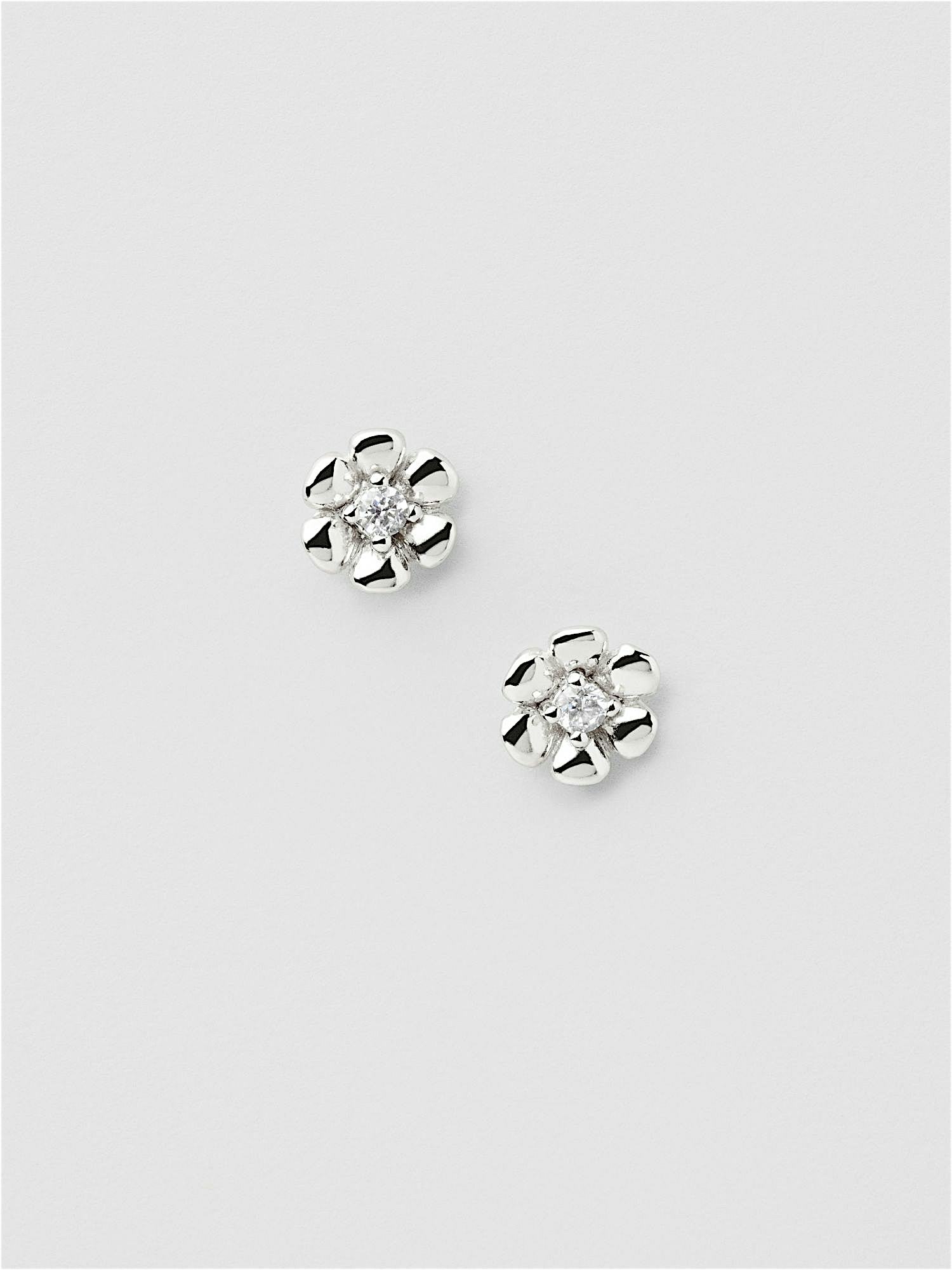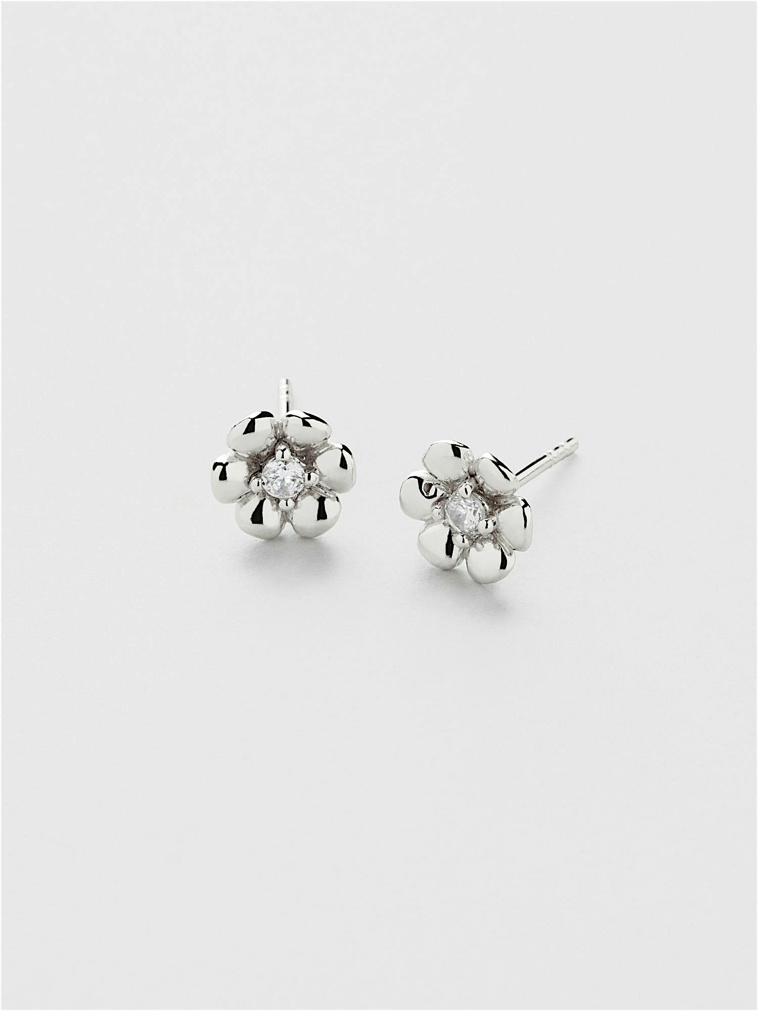 Studs örhängen i form av en daisy blomma i äkta 925 sterling silver, prydda med klara Cubic Zirconia stenar. Guldörhängena är förgyllda med äkta 24K guld och har en kärna av äkta 925 sterling silver. Denna produkt är tillverkad av 100% återvunnet silver.