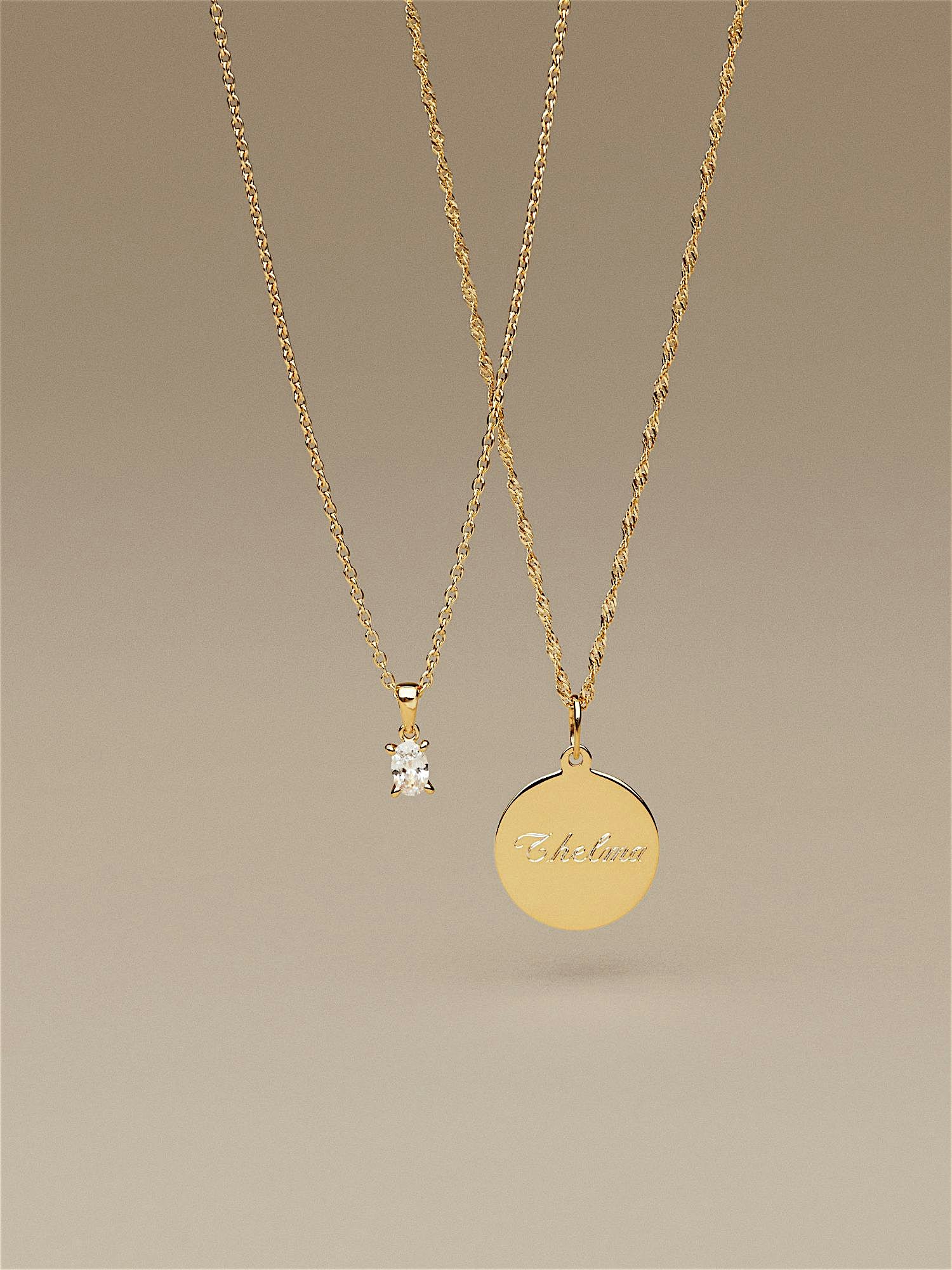 Halsband i äkta 925 sterling silver, dekorerad med en klar oval Cubic Zirconia sten. Guldhalsbandet är pläterat med äkta 24K guld och har en kärna av äkta 925 sterling silver. Denna produkten är tillverkad av 100% återvunnet silver.