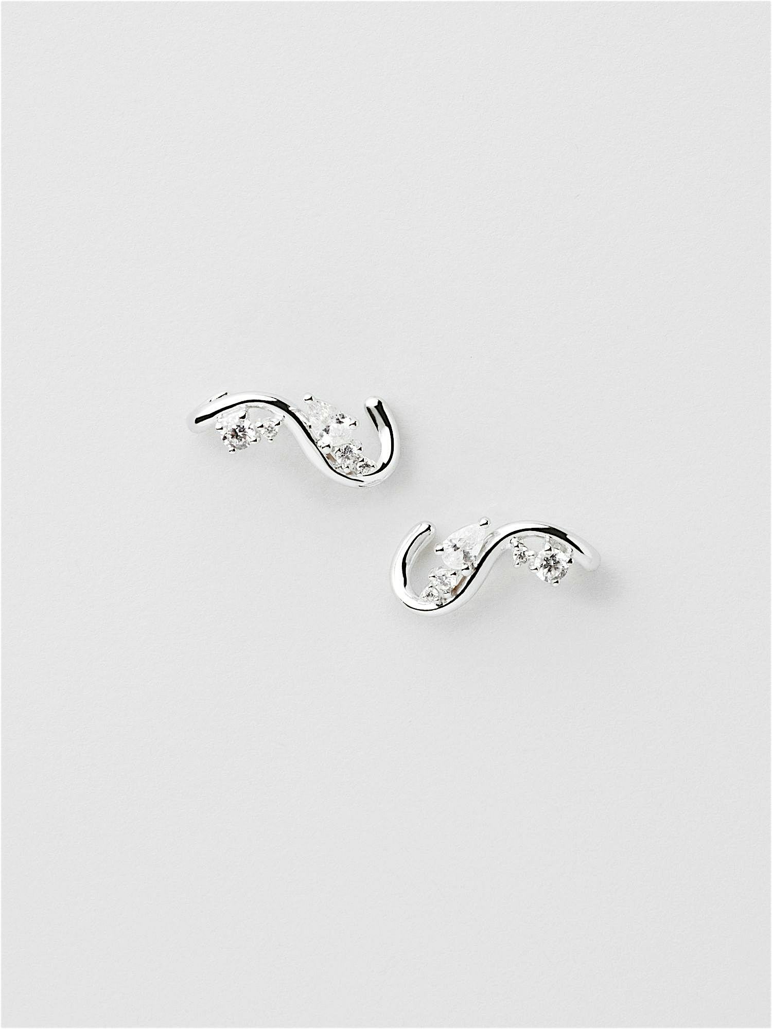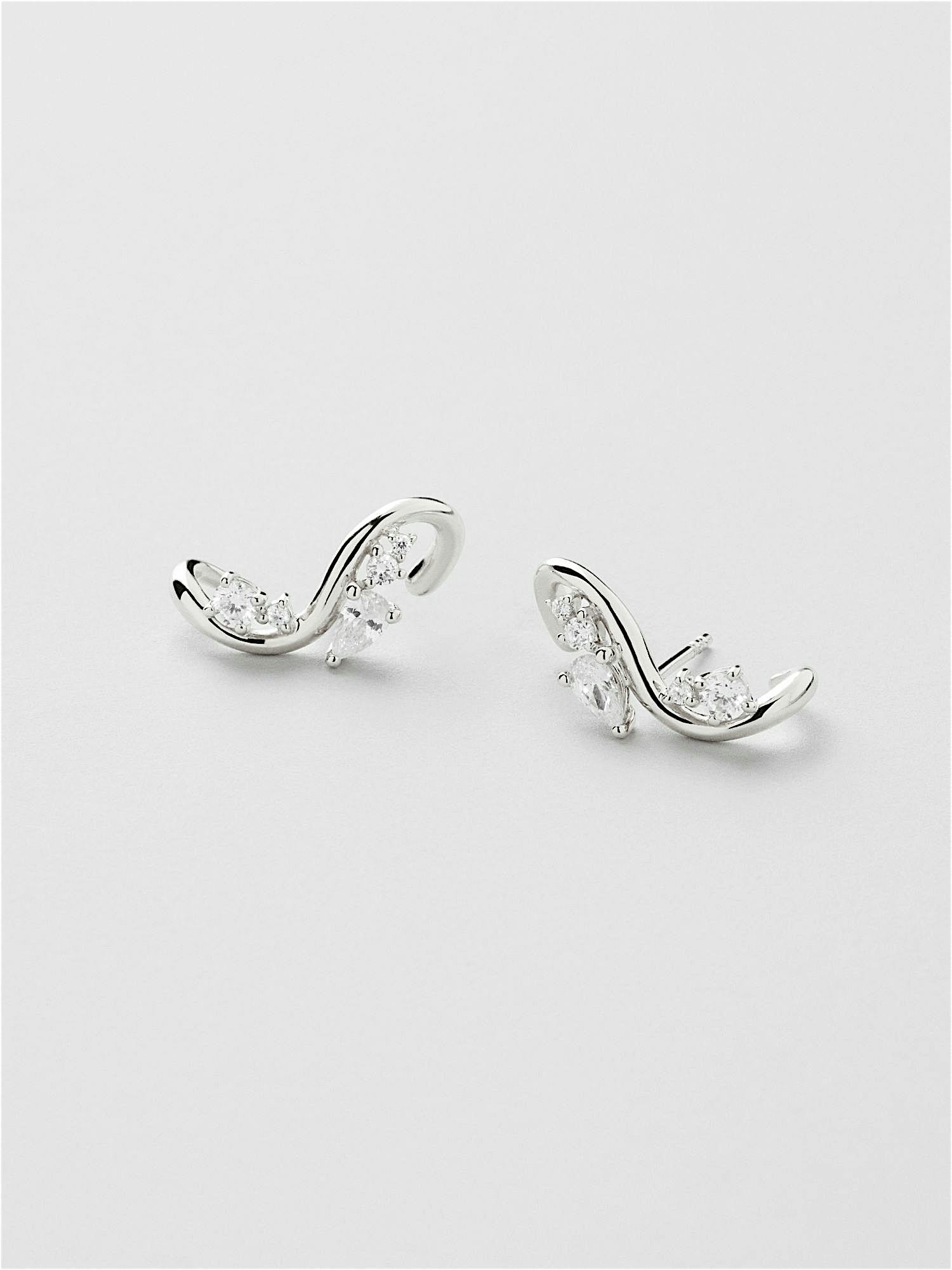 Studs örhängen i äkta 925 sterling silver, dekorerade med klara Cubic Zirconia stenar. Guldörhängena är förgyllt med äkta 24K guld och har en kärna av äkta 925 sterling silver. Denna produkt är tillverkad av 100% återvunnet silver.