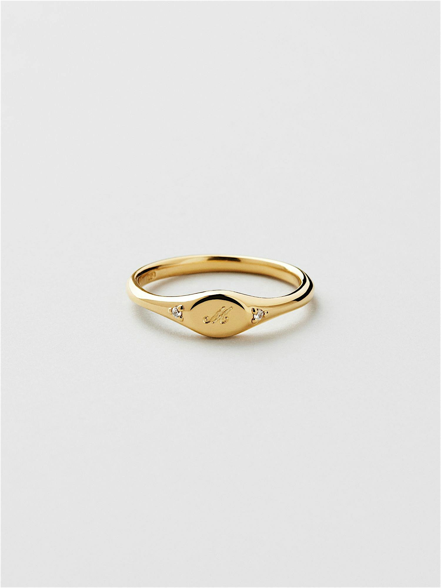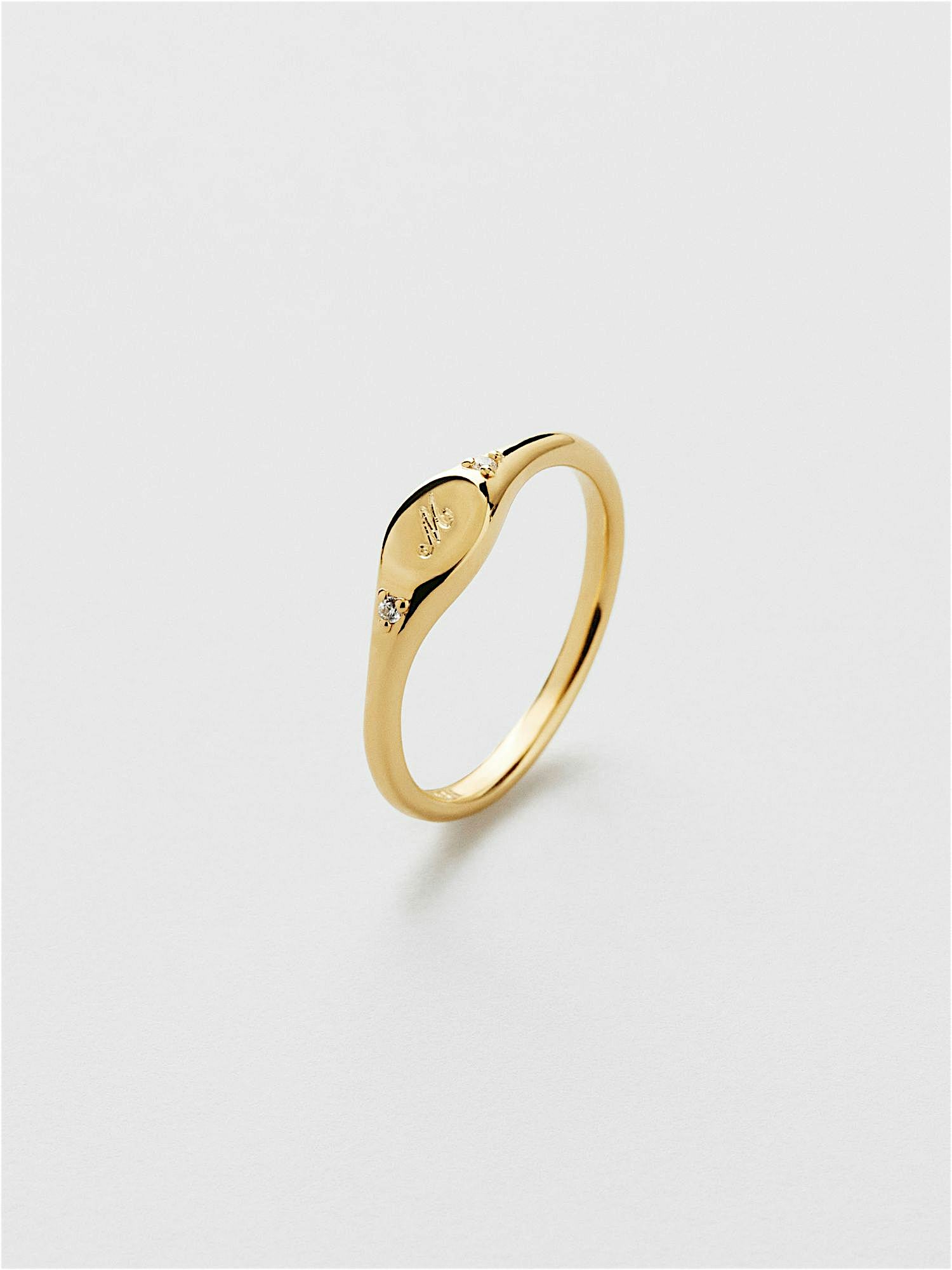 Graverbar ring i äkta 925 sterling silver, dekorerad med klara Cubic Zirconia stenar. Guldringen är förgylld med äkta 24K guld och har en kärna av äkta 925 sterling silver. Denna produkt är tillverkad av 100% återvunnet silver.