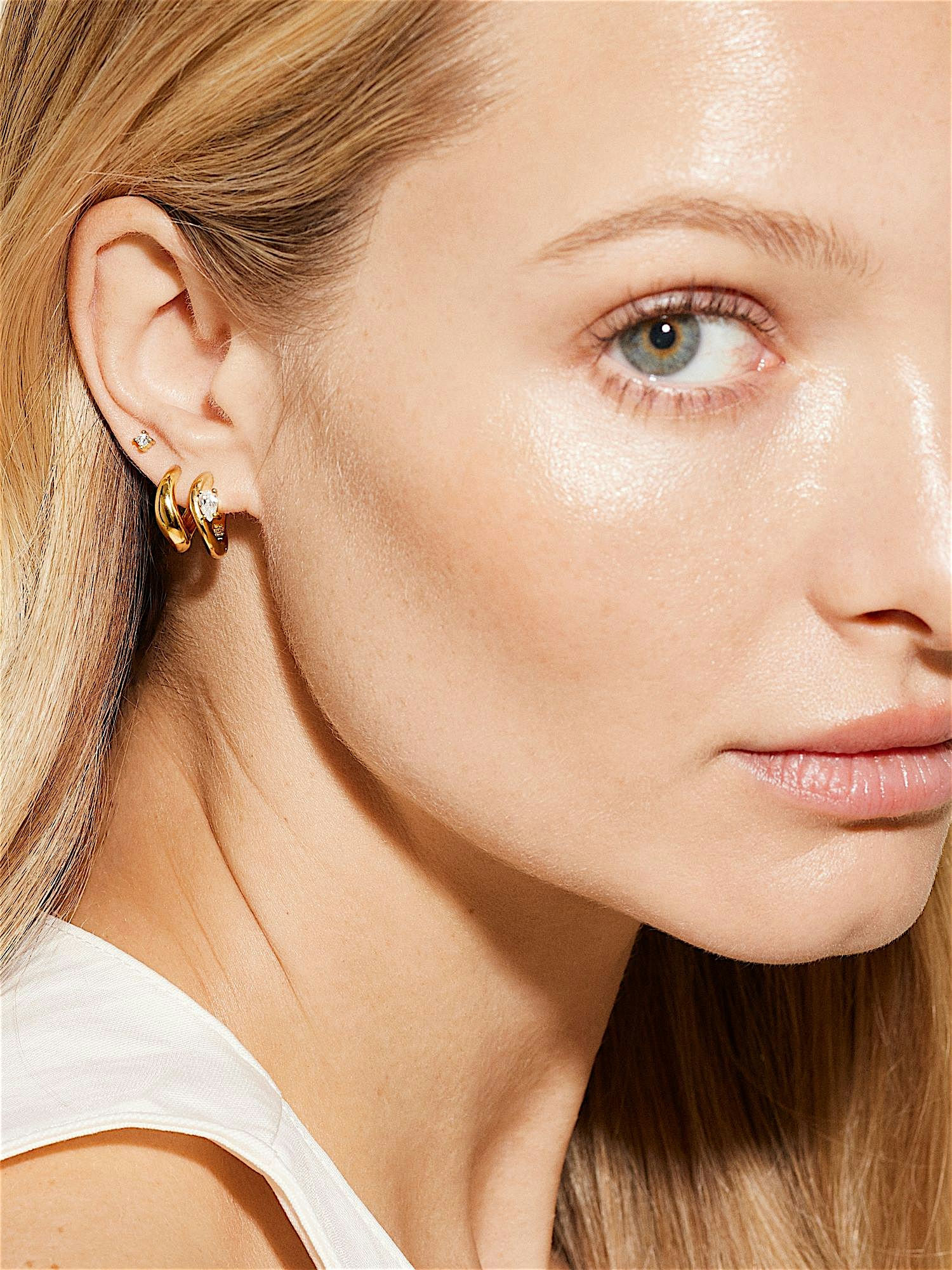 Wavy hoops örhängen i äkta 925 sterling silver. Guldörhängena är förgyllda med äkta 24K guld och har en kärna av äkta 925 sterling silver. Denna produkt är tillverkad av 100% återvunnet silver.