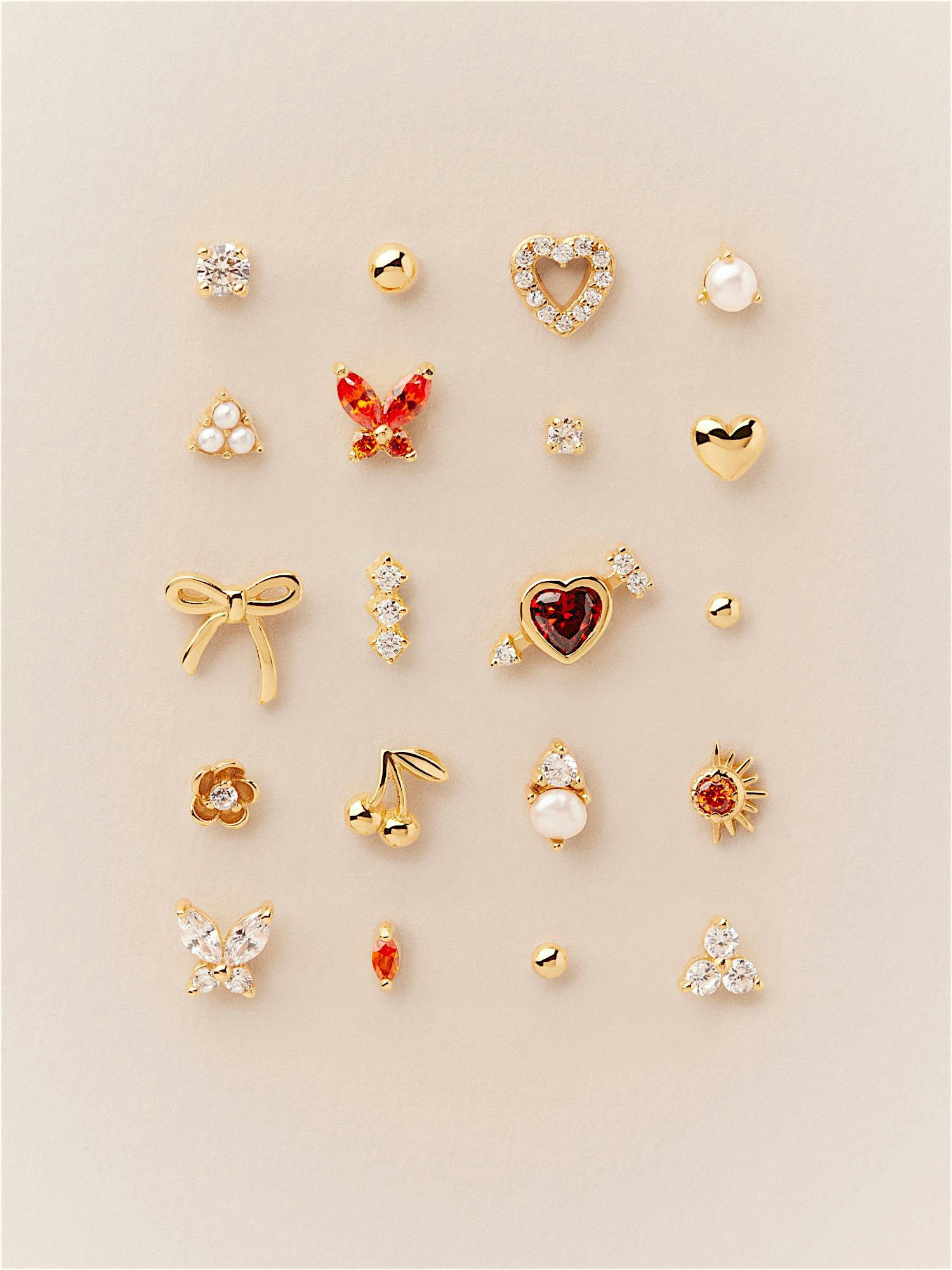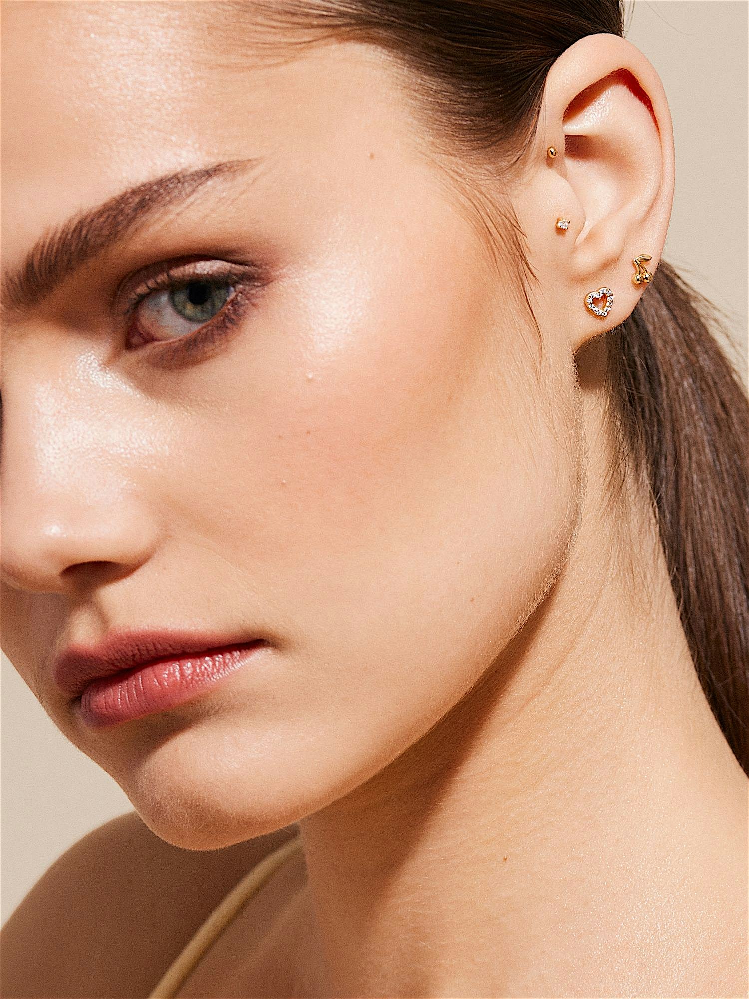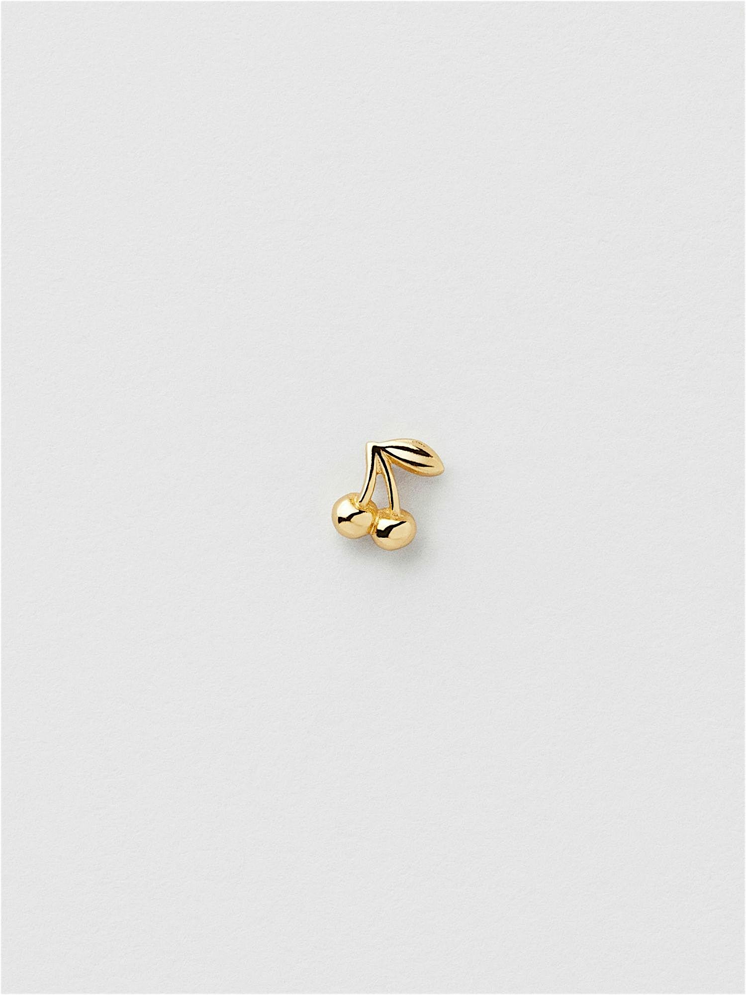 Piercing in the shape of a cherry made of genuine 925 sterling silver. The gold jewellery is plated with genuine 18K gold and has a core of genuine 925 sterling silver. The bar is made of genuine 925 sterling silver. This product is made of 100% recycled silver. Place the back part of the piercing through the ear from behind and screw it together with the front part of the piercing.