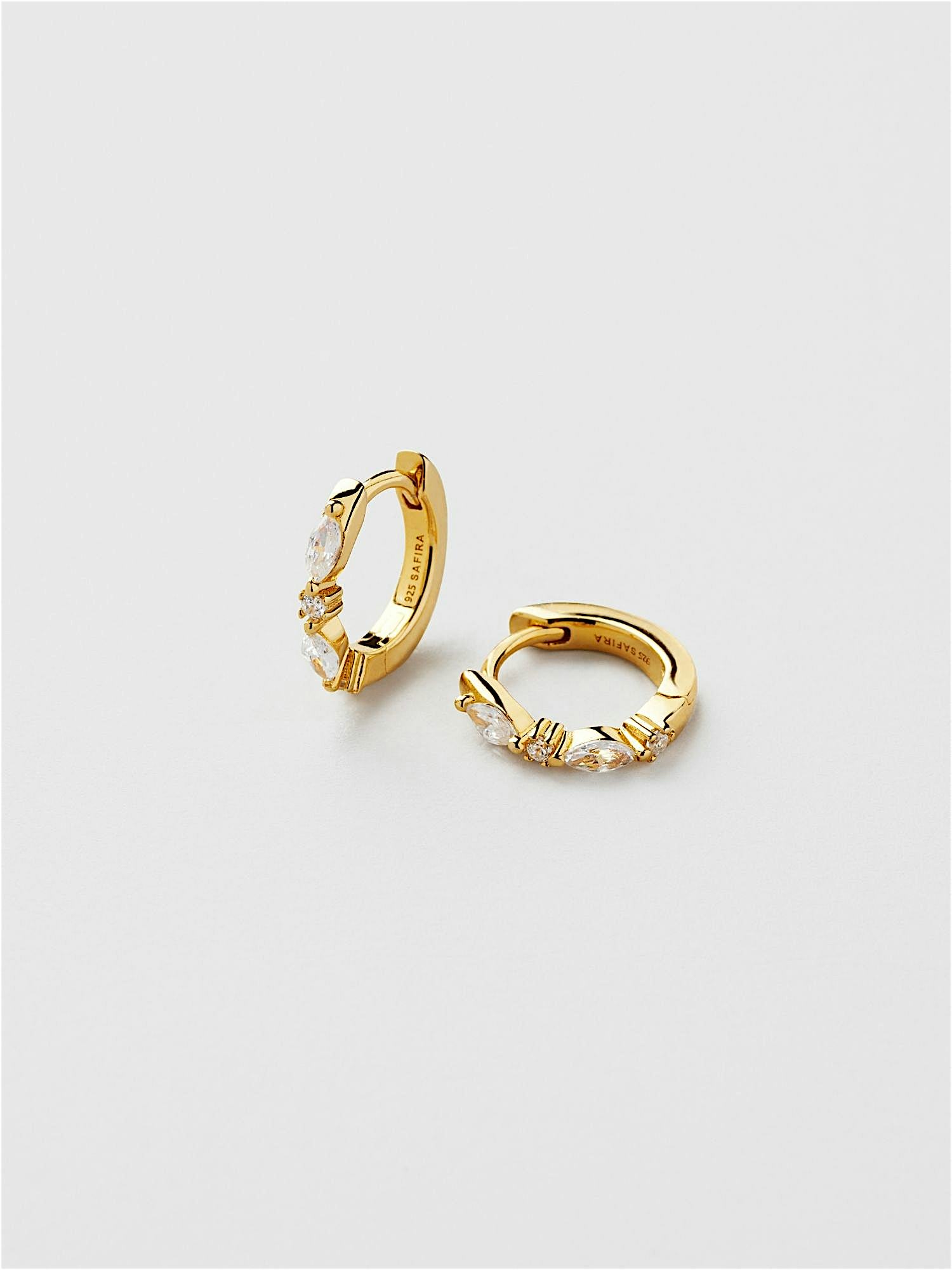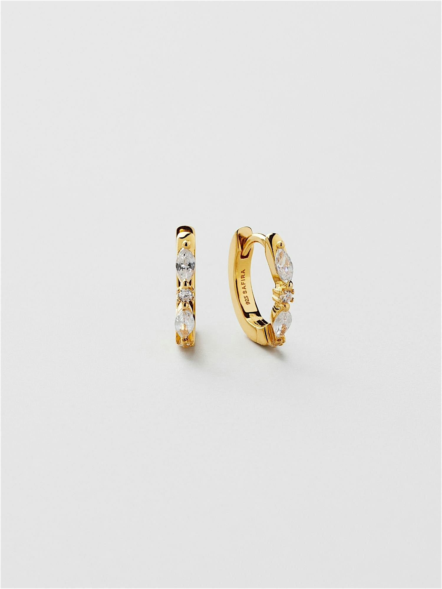 Hoops in genuine 925 sterling silver, adorned with clear Cubic Zirconia stones. The gold earrings are plated with genuine 18K gold and has a core of genuine 925 sterling silver. This product is made from 100% recycled silver.