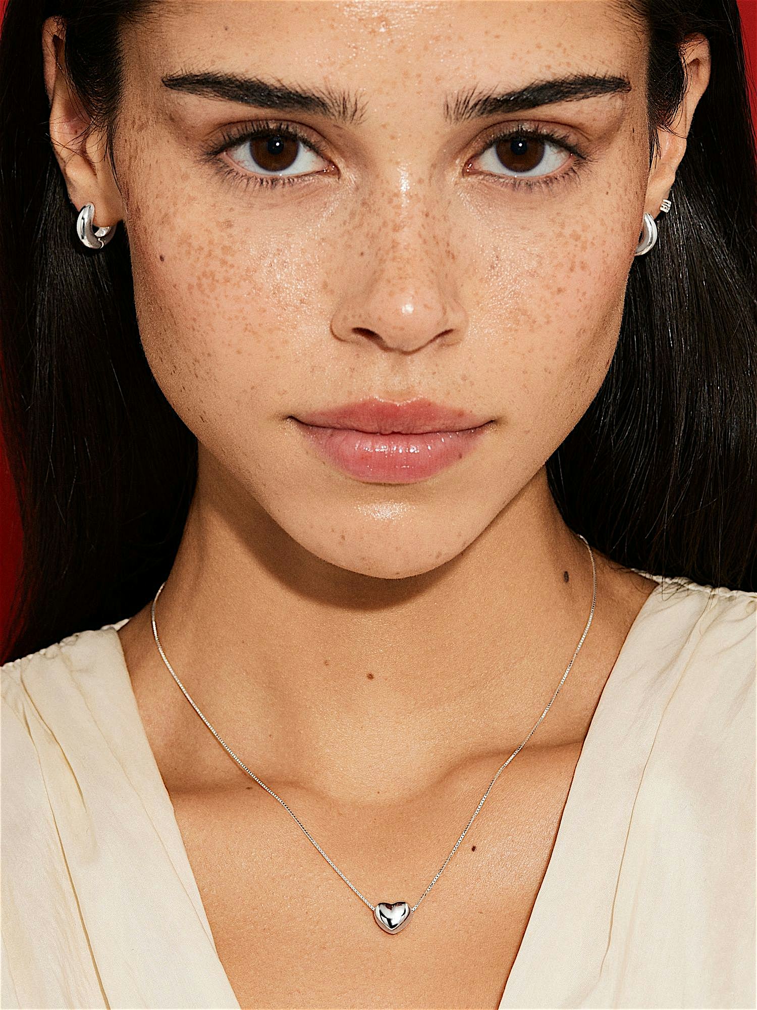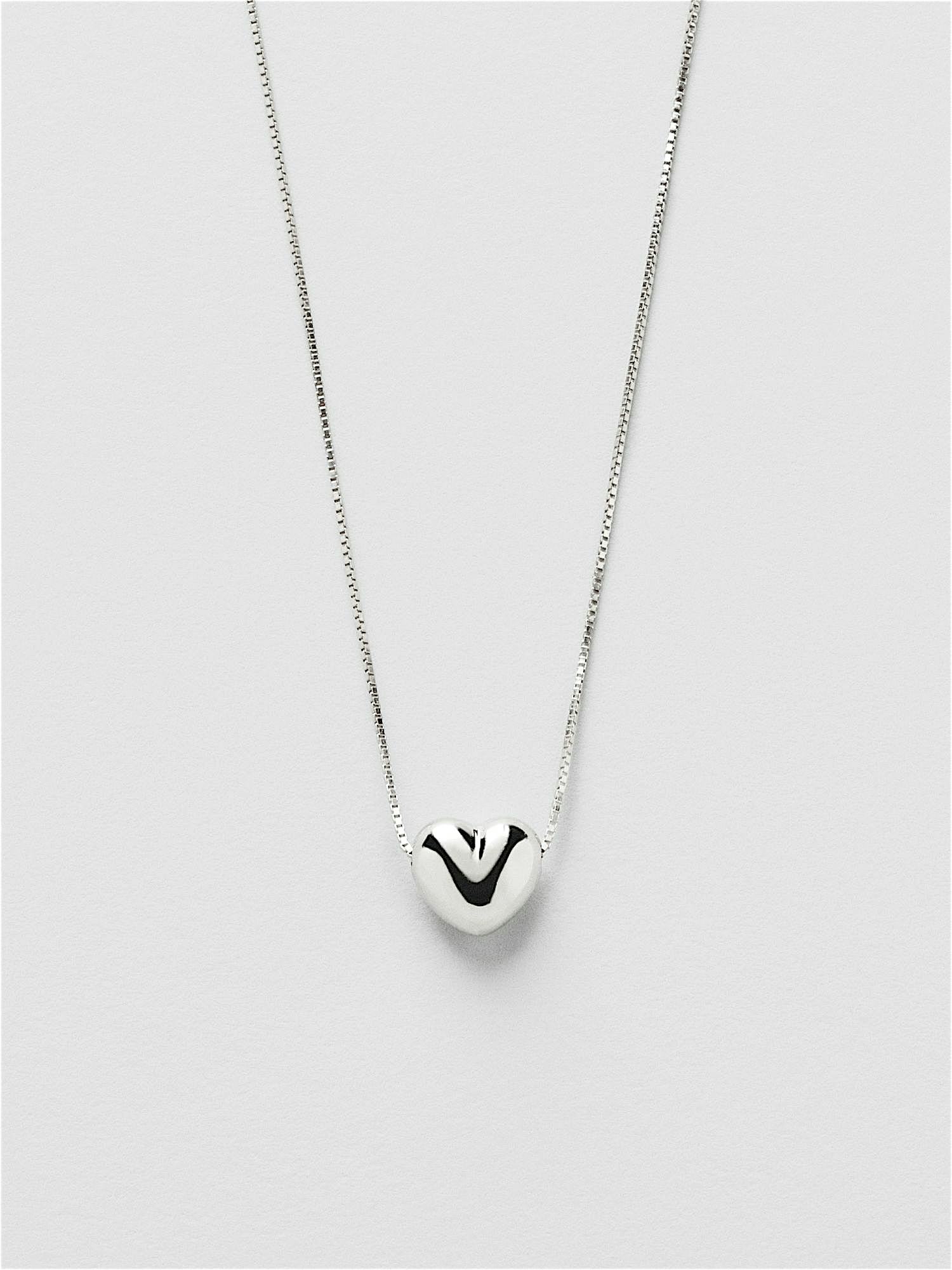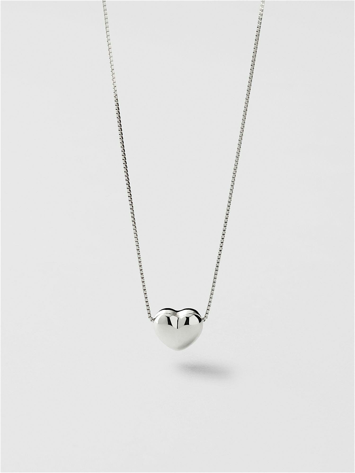 Necklace with a box chain and a heart in genuine 925 sterling silver. The gold necklace is plated with genuine 18K gold and has a core of genuine 925 sterling silver. This product is made from 100% recycled silver.