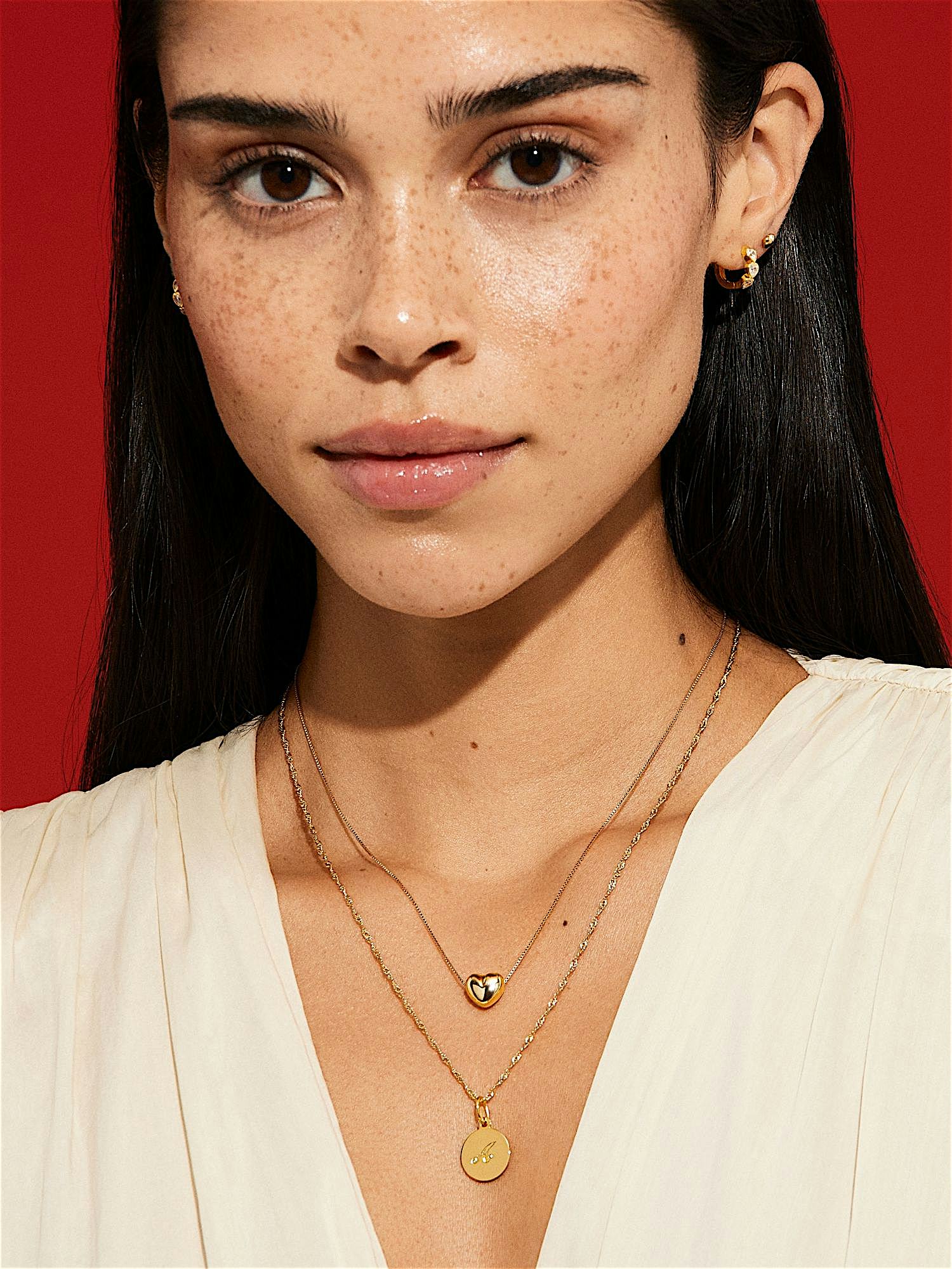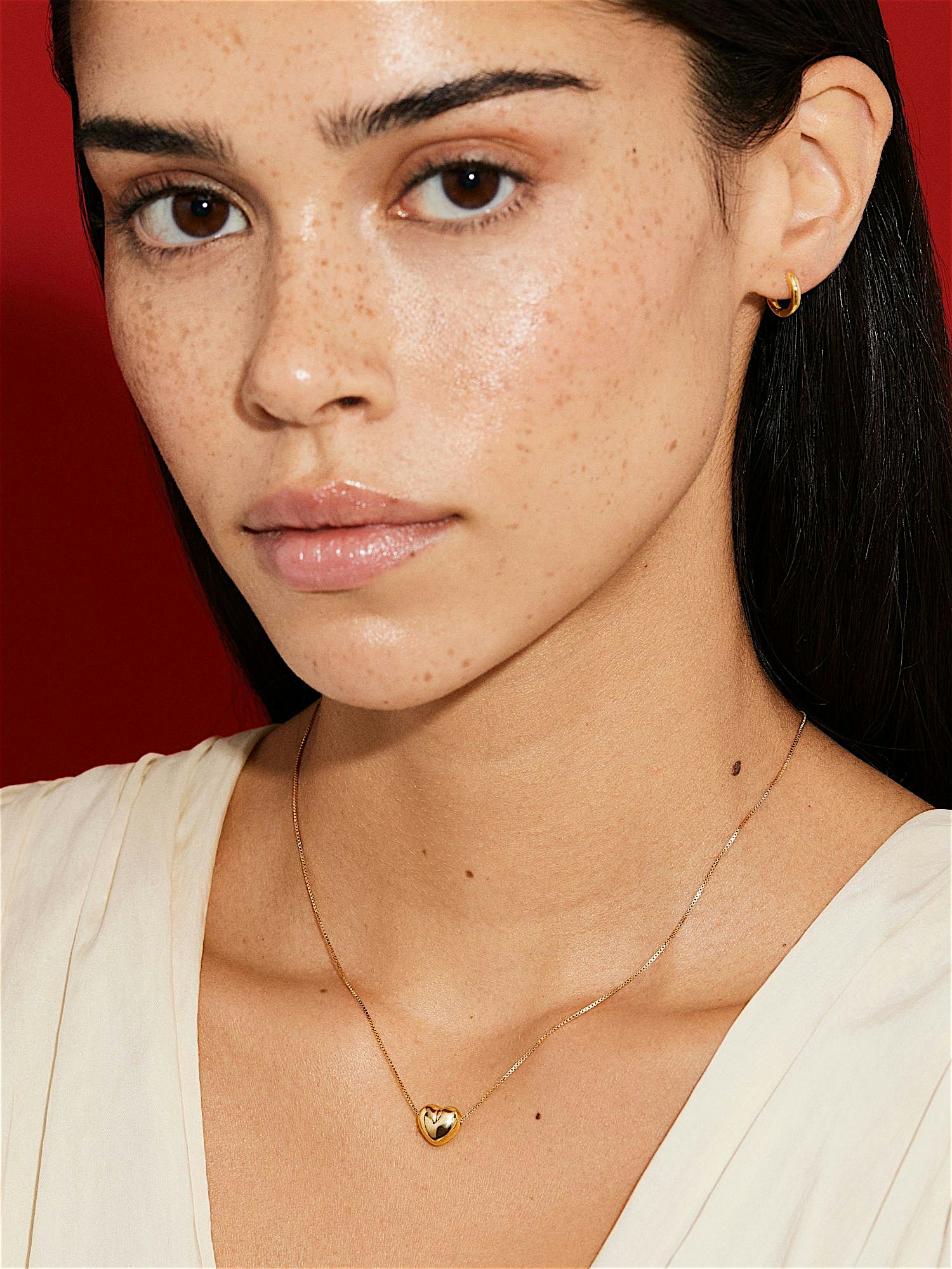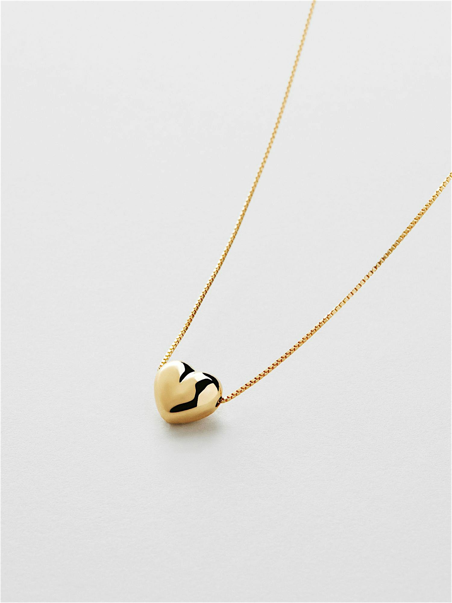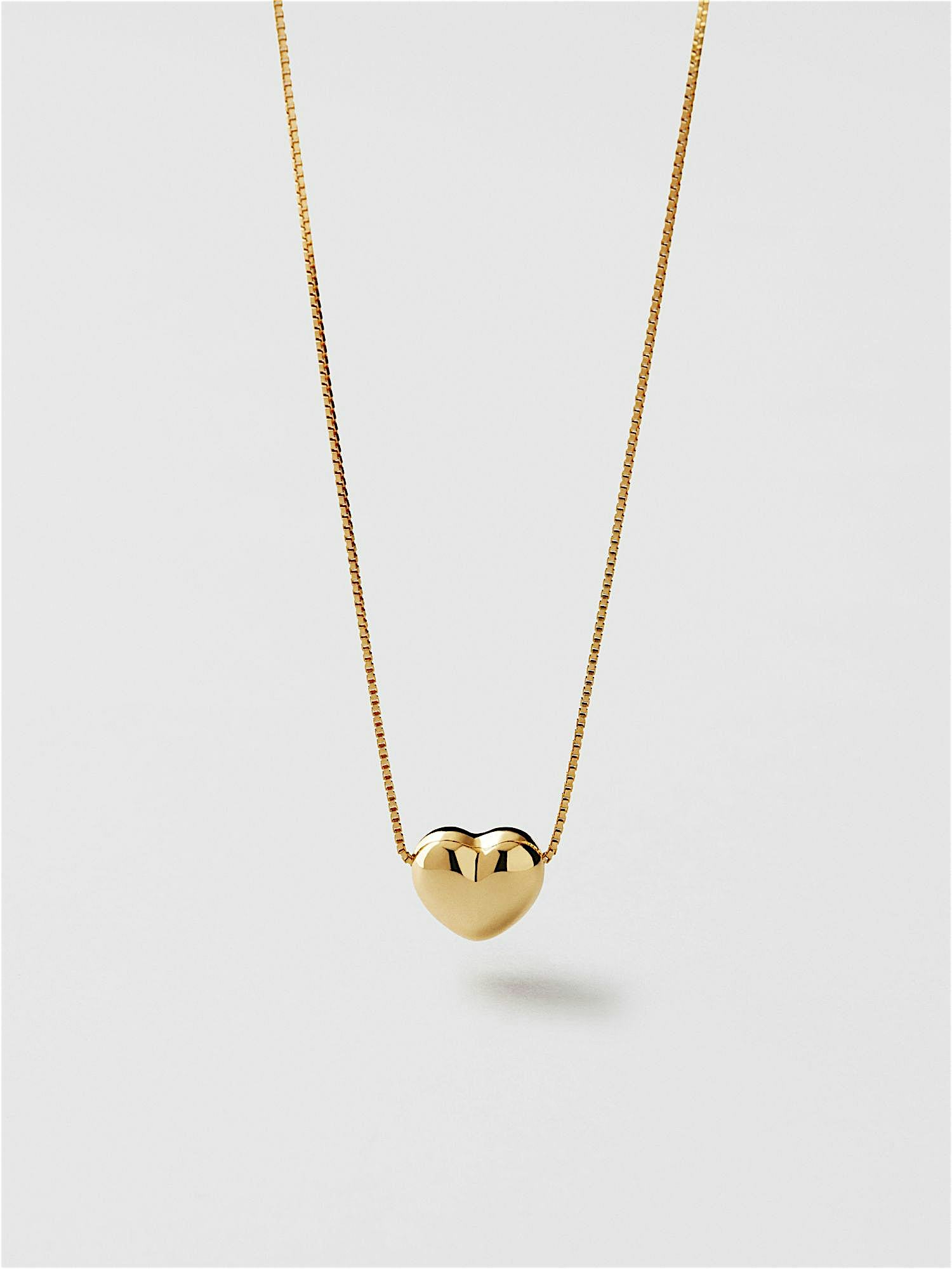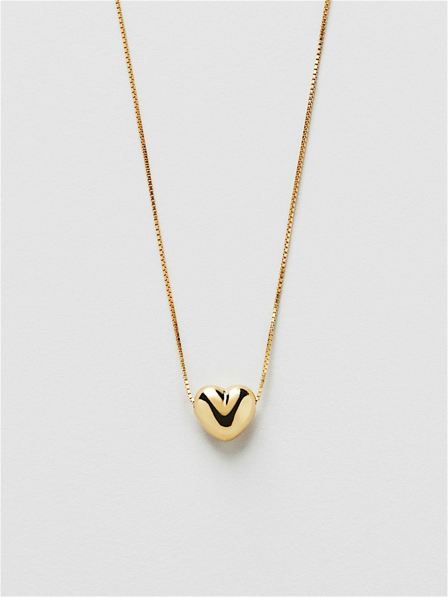 Necklace with a box chain and a heart in genuine 925 sterling silver. The gold necklace is plated with genuine 18K gold and has a core of genuine 925 sterling silver. This product is made from 100% recycled silver.
